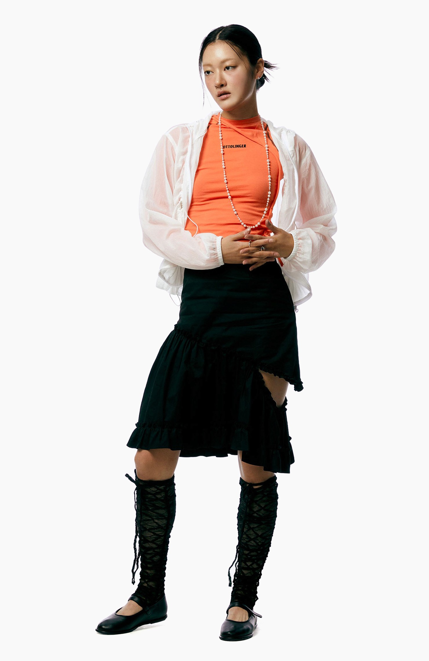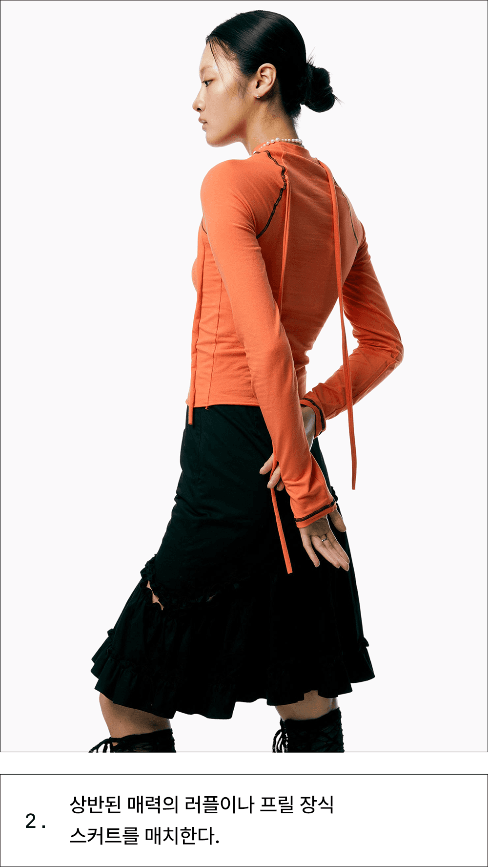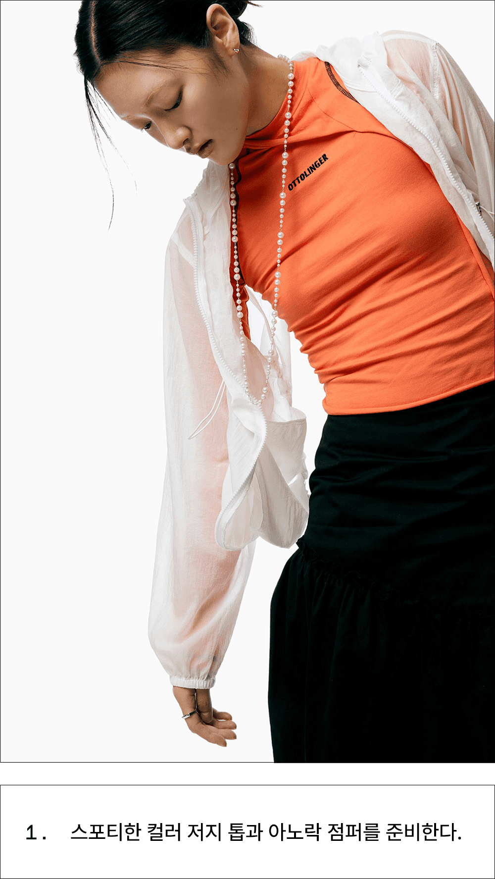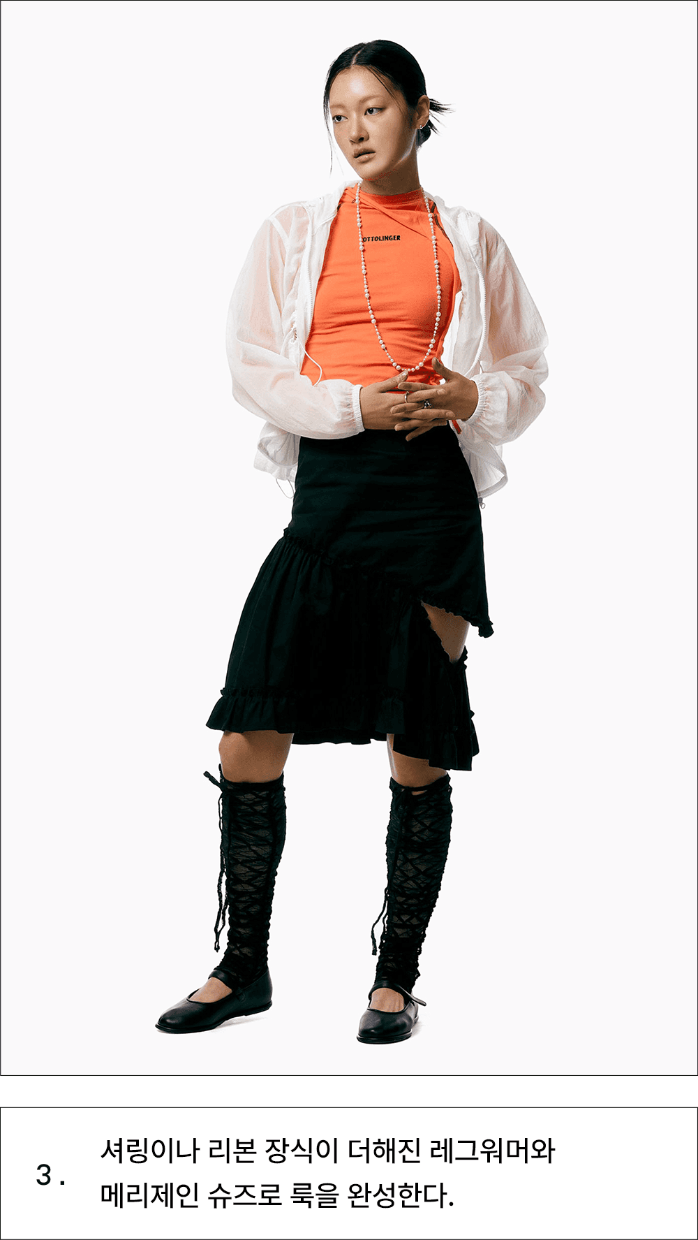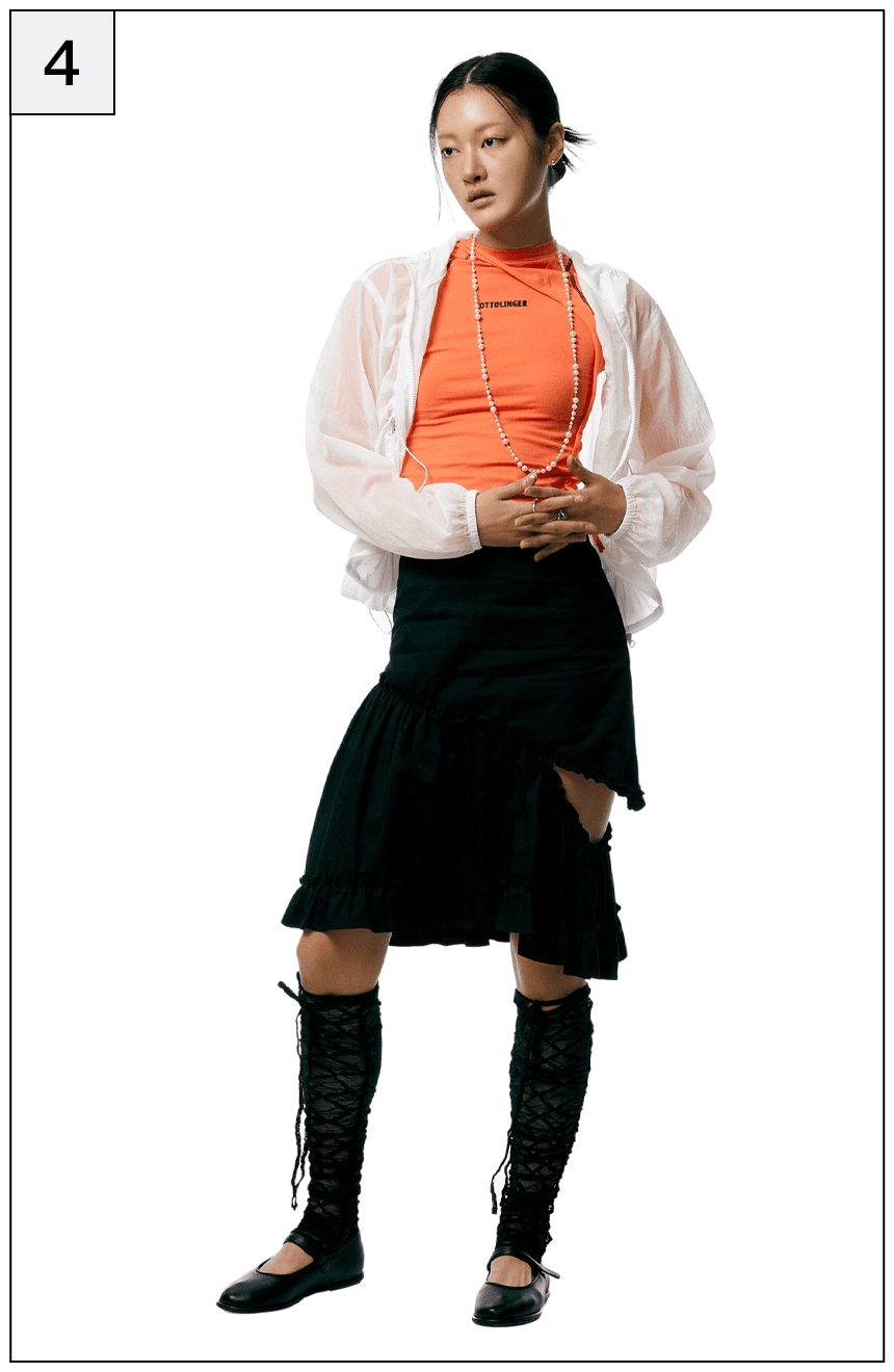 올해 거리에서 가장 많이 목격된 블록코어룩. 발렌시아가, 마틴로즈, 웨일스보너에서 시작해 축구 유니폼을 일상복과 결합해 입는 방식이 트렌드로 부상했죠. 최근에는 진짜 축구 유니폼을 탈피해 자신만의 개성을 더한 뉴 블록코어가 떠올랐어요. 스포티한 감각의 저지 톱에 전혀 어울리지 않을 것 같은 사랑스러운 러플, 프릴 스커트를 새롭게 매치해보세요.