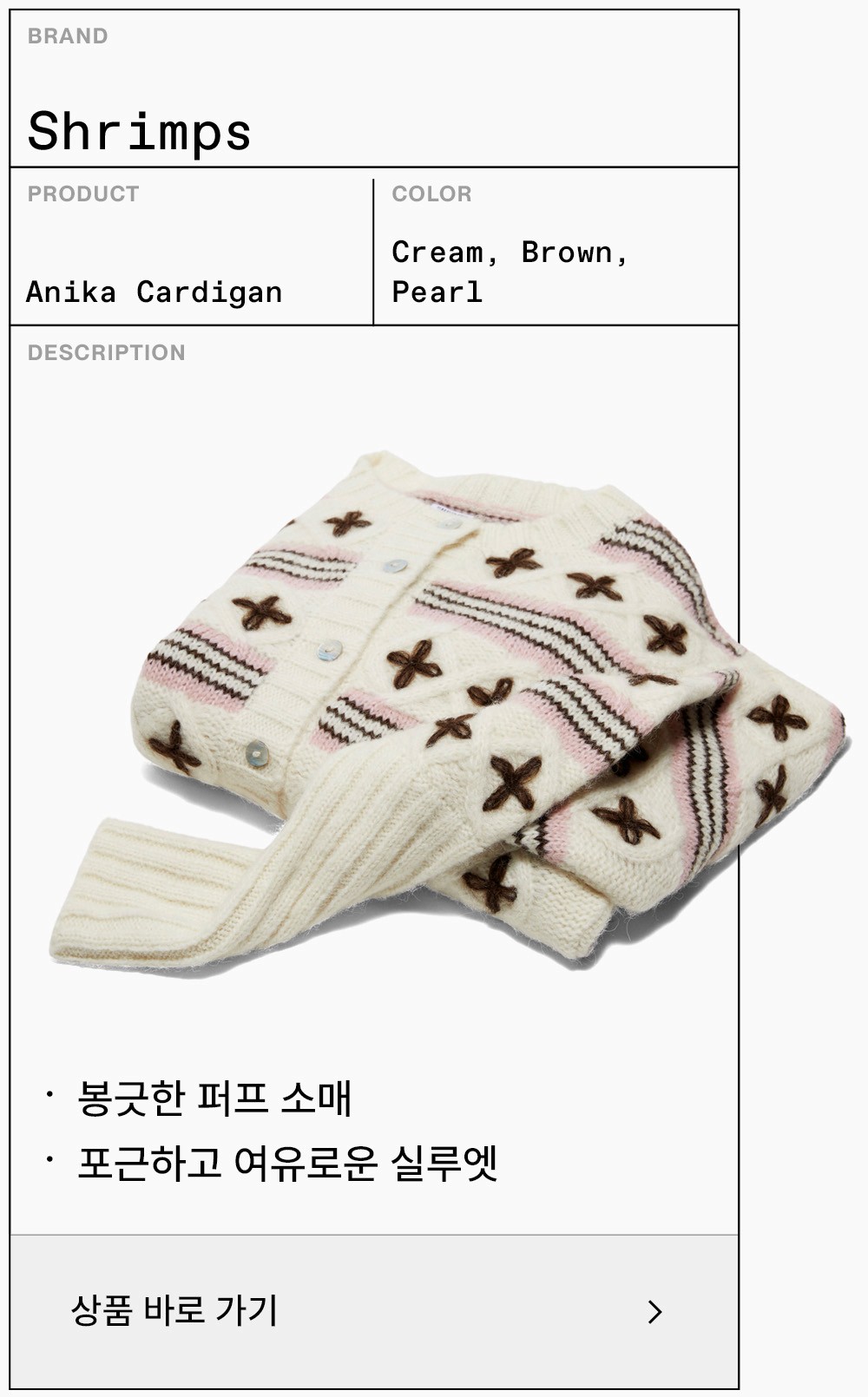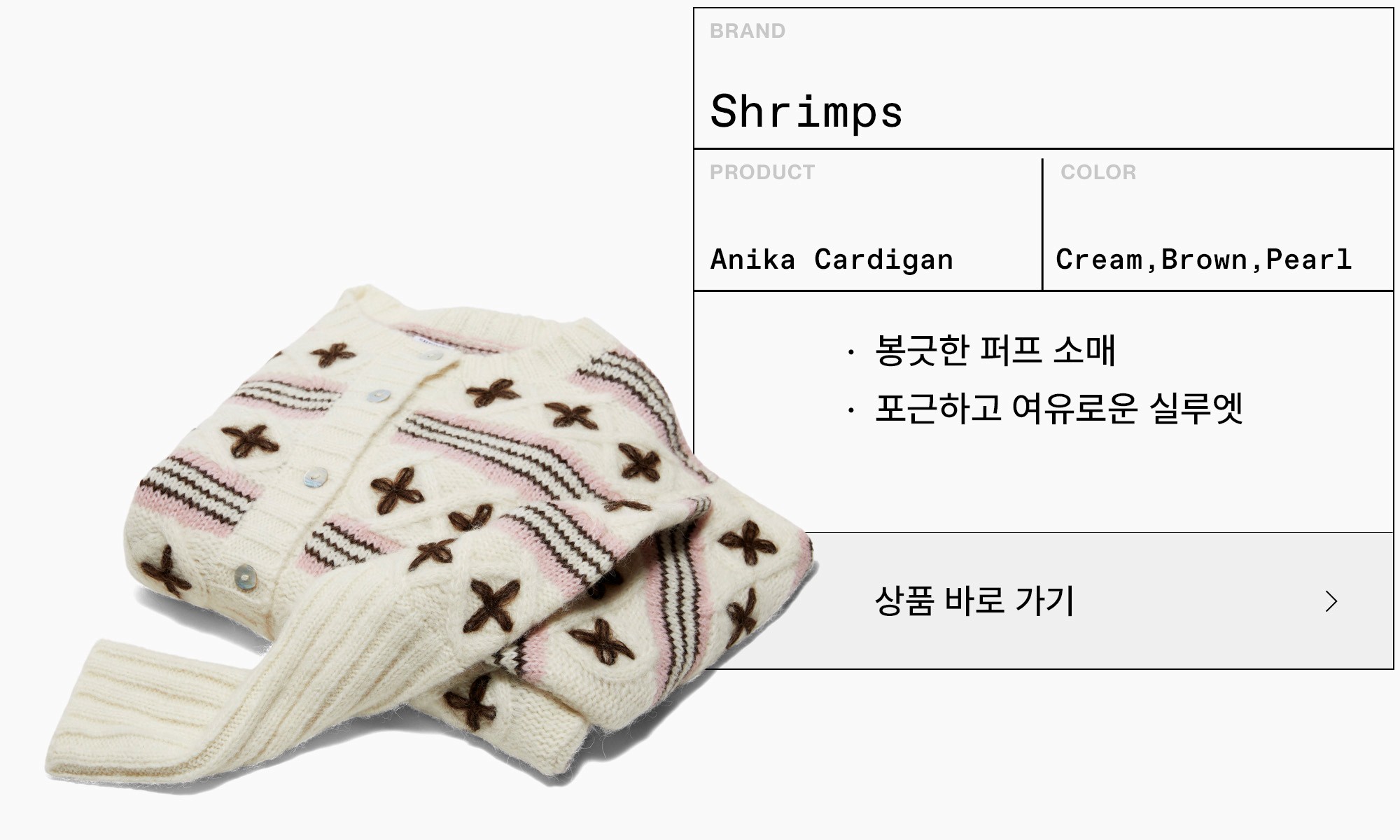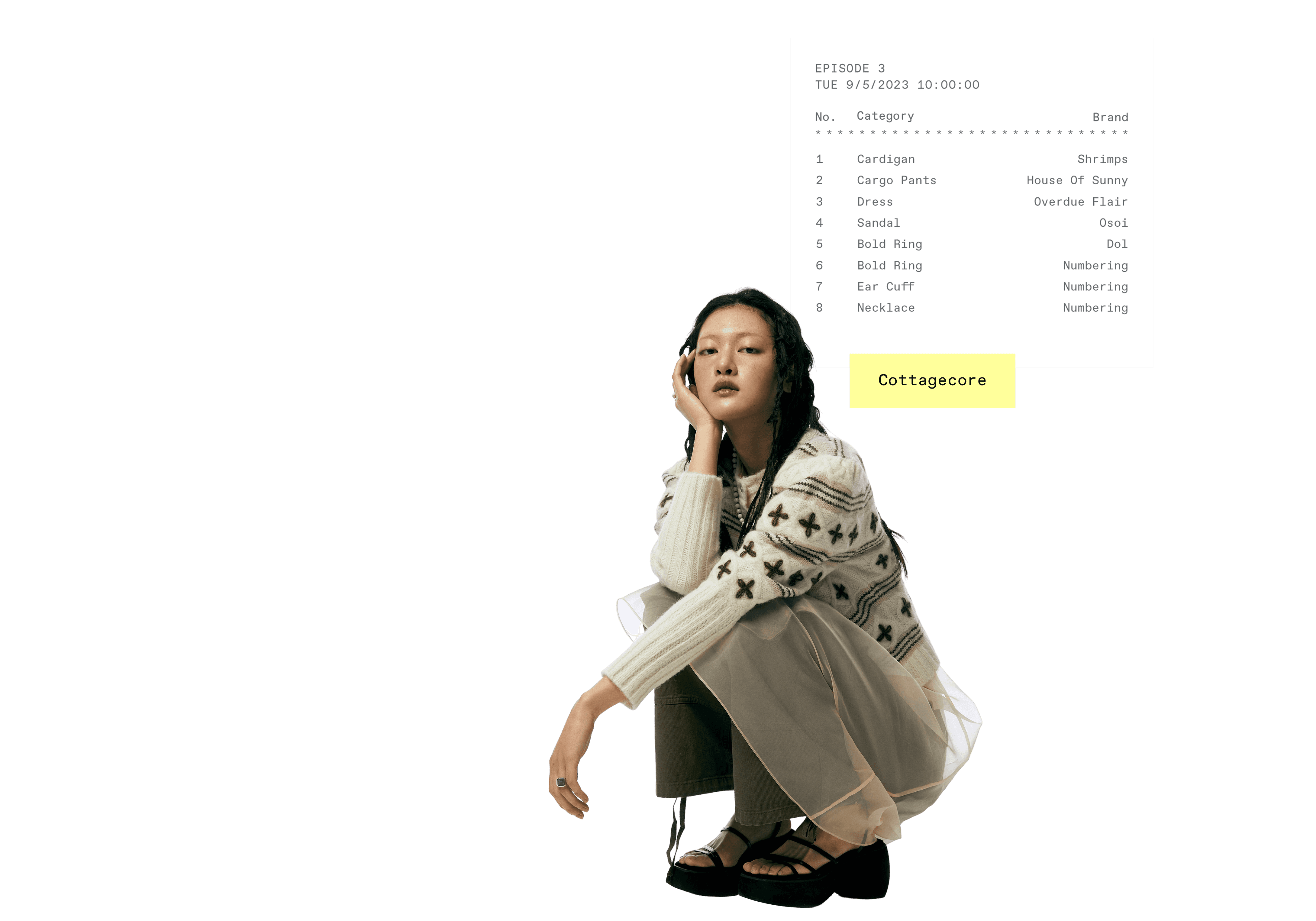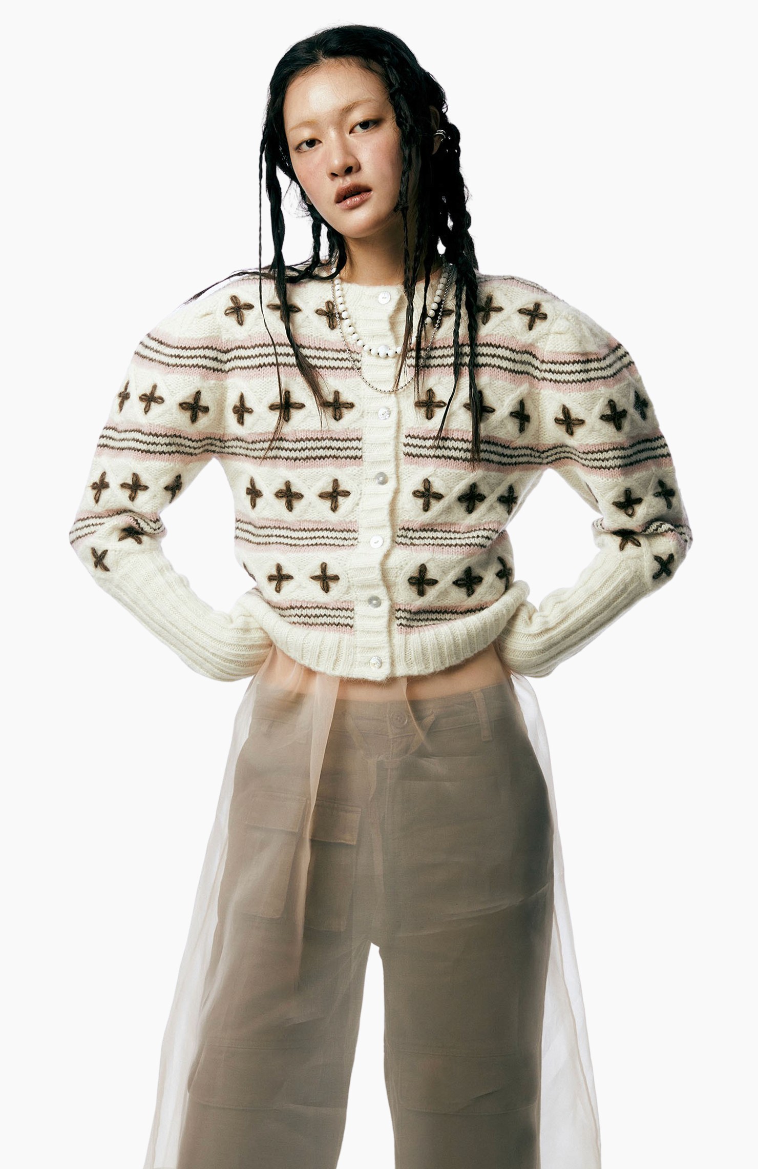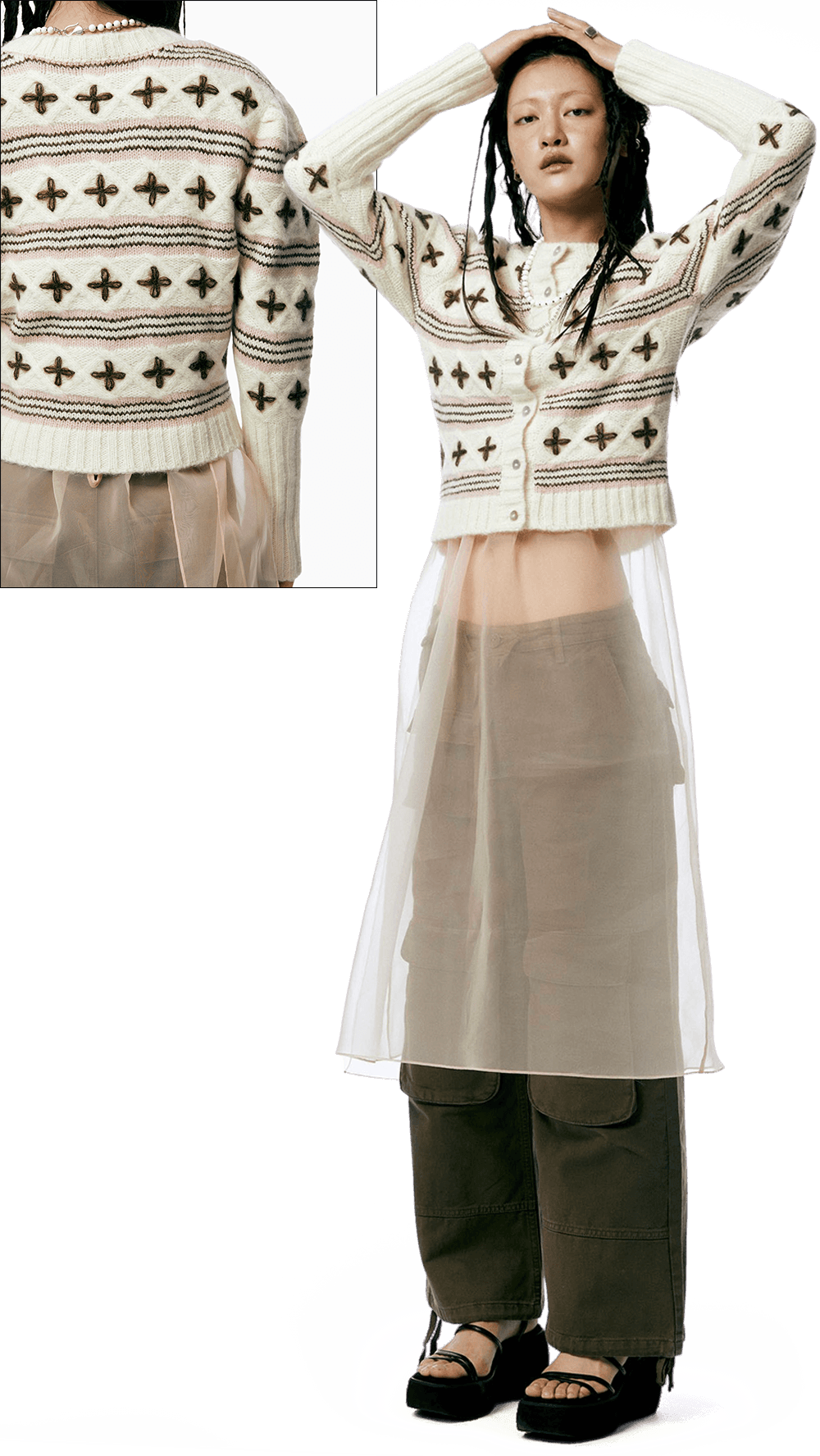 할머니 옷장에서 막 꺼내 입은 듯한 빈티지한 매력의 카디건 하나면 지금부터 찬바람이 부는 한겨울까지 포근한 데일리 아이템이 되어줄 거예요. 아름다운 전원이 떠오르는 코티지코어의 인기는 올해까지 유효하다는 사실. 다만 이전과는 달리 상반된 매력의 유틸리티 카고팬츠 혹은 트랙팬츠를 새롭게 더해주세요. 마냥 귀여운 시골 소녀 느낌이 아닌 중화된 매력의 스타일리시한 코티지룩이 완성됩니다.