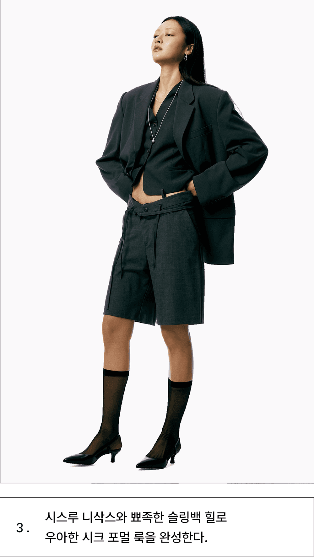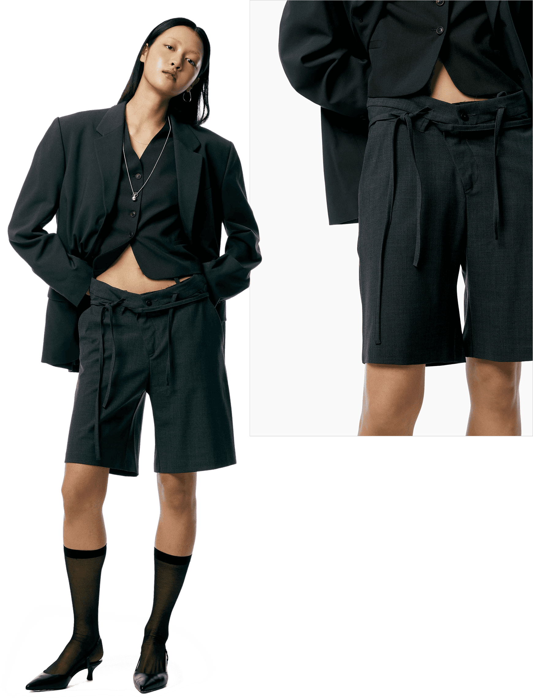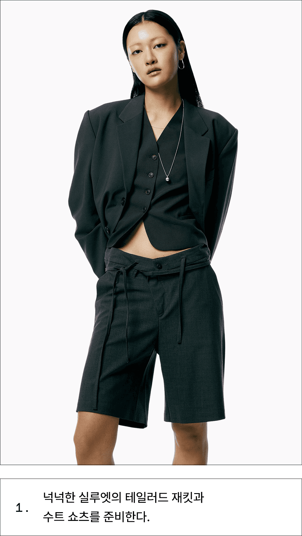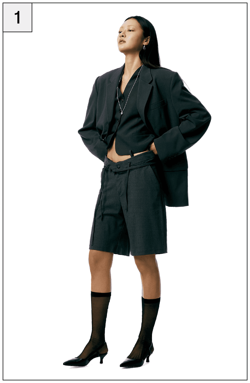 미니멀하고 정교한 90년대 테일러드 스타일이 돌아왔어요. 90년대 미니멀리즘을 표방하는 더 로우의 시그니처 아이템인 매니시한 테일러드 베스트와 부드러운 촉감의 수트 쇼츠 하나면 초가을 만능템이 되어줄 거예요. 탄탄한 소재의 테일러드룩과는 반대로 우아한 시스루 아이템들을 연출하는 것이 바로 포인트!