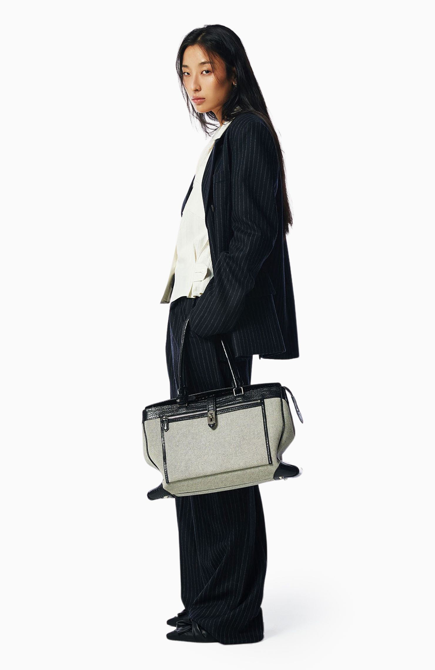 80년대 파워숄더를 연상케하는 각진 실루엣의 간결한 테일러링이 떠올랐죠. 클래식한 슈트 셋업이 가을 필수 아이템으로 부각되면서 자연스레 묵직하고 시크한 블랙 컬러의 활용도가 높아졌어요. 미니멀한 올 블랙 룩에 오프 화이트 계열을 더해 시크하게 마무리!