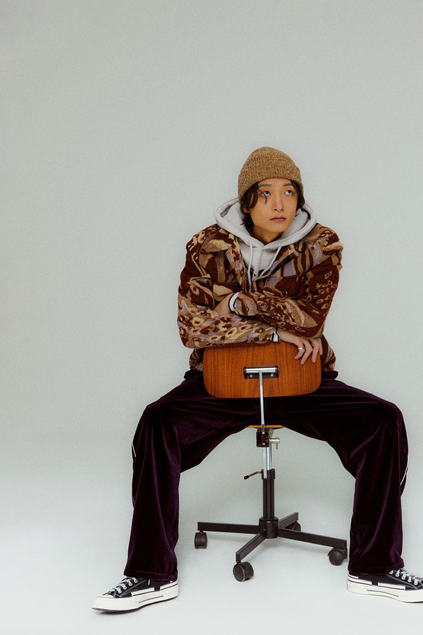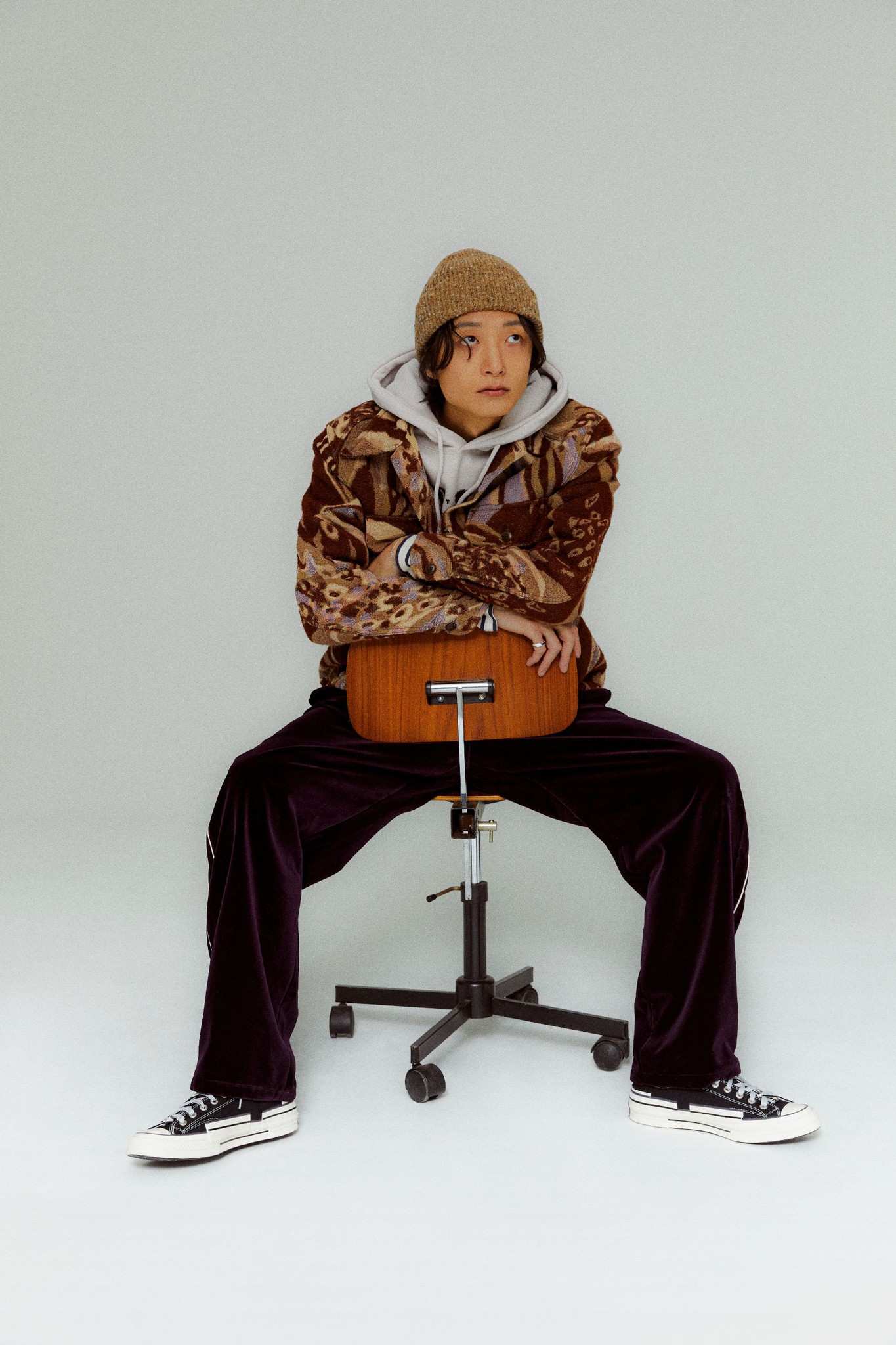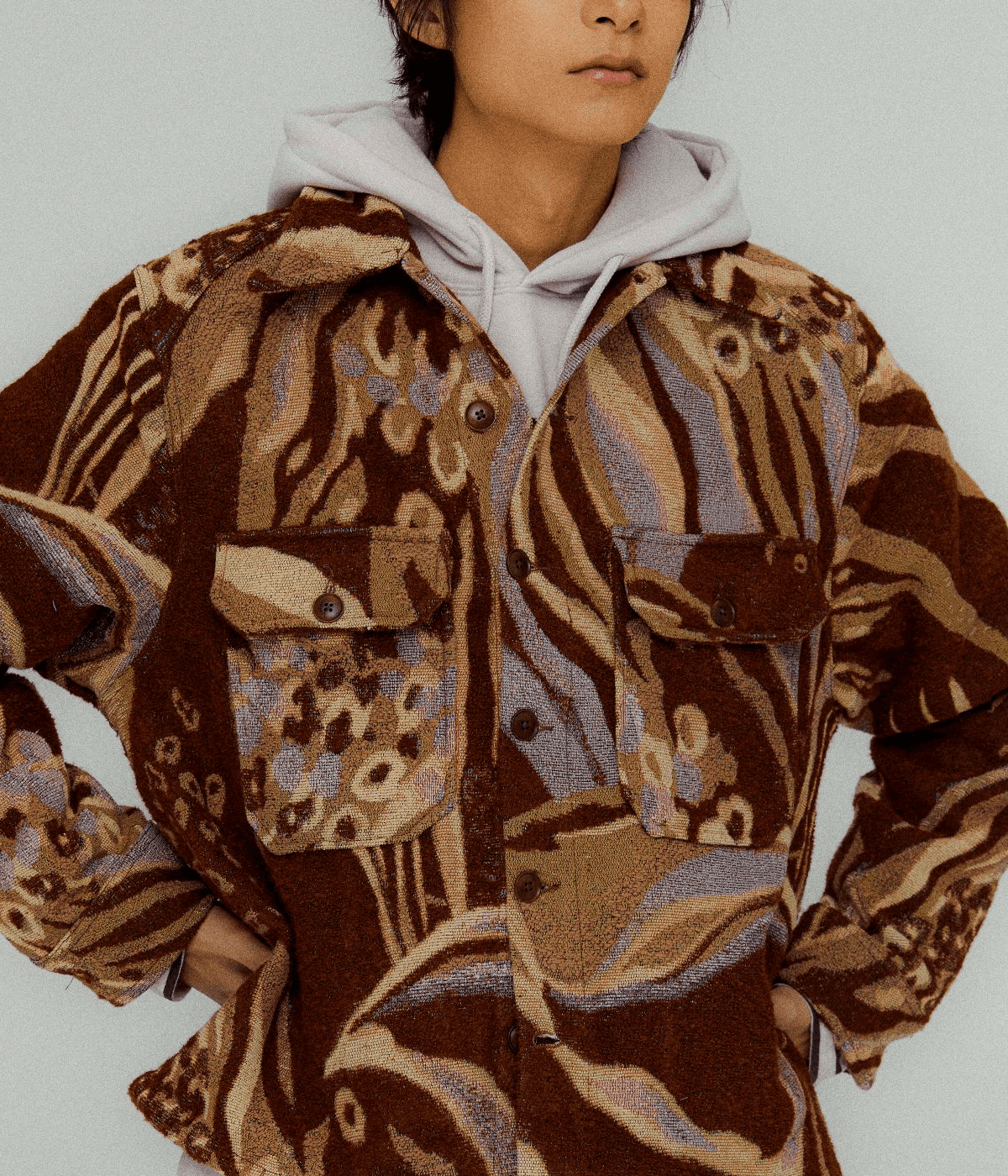 커트 코베인이 애정 하는 또 다른 아이템에는 패턴과 컨버스 스니커즈가 있습니다. 패턴 아이템은 그런지 특유의 거친 미학을 뚜렷이 보여주죠. 다양한 애니멀 패턴이 믹스된 선플라워의 셔츠형 재킷은 자카드 소재로 대담한 스타일을 완성하기에 제격입니다. 여기에 벨벳 소재의 트랙 팬츠와 컨버스 스니커즈를 매치하고, 무심하면서도 쿨한 애티튜드를 더해보세요.