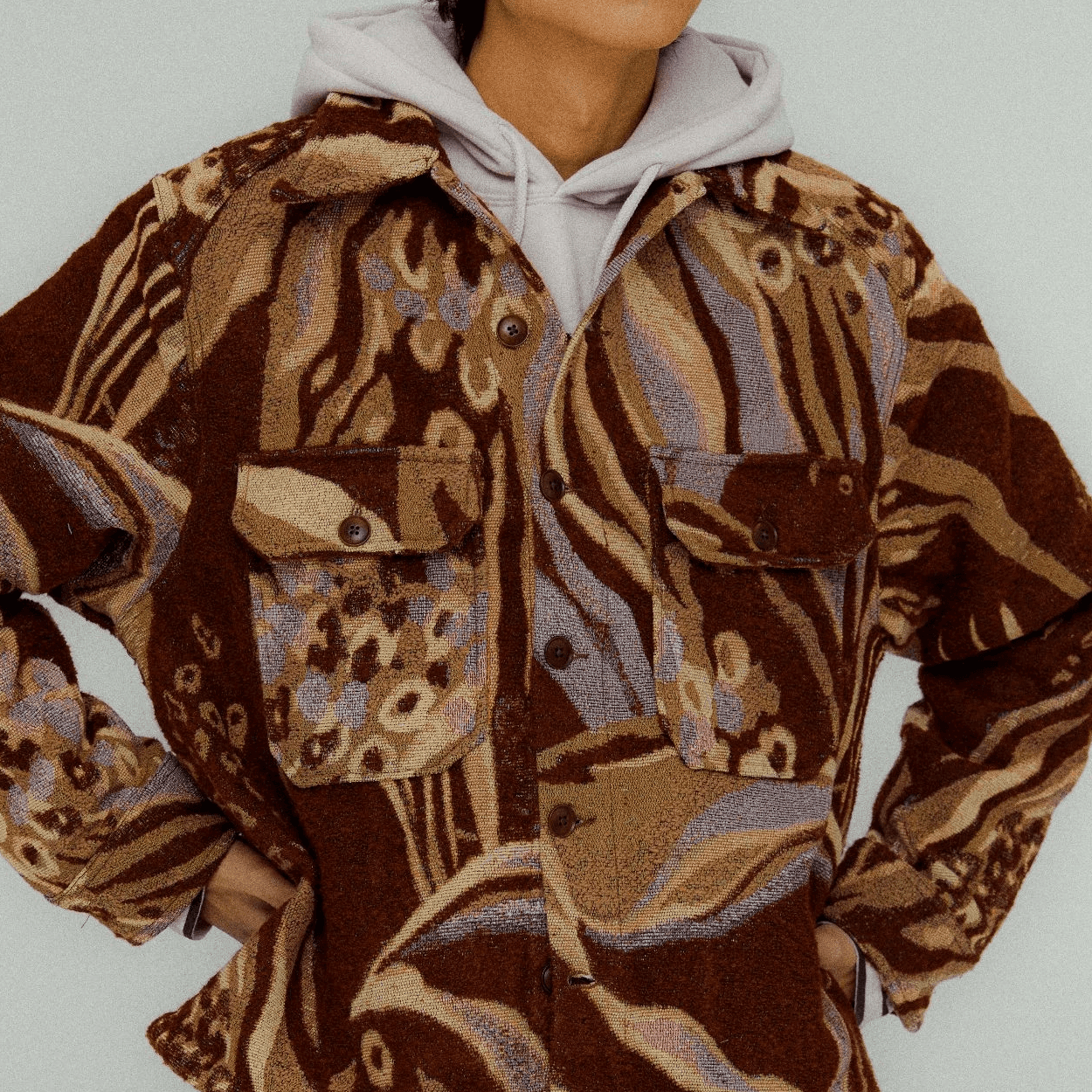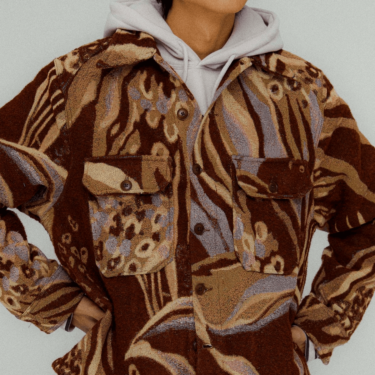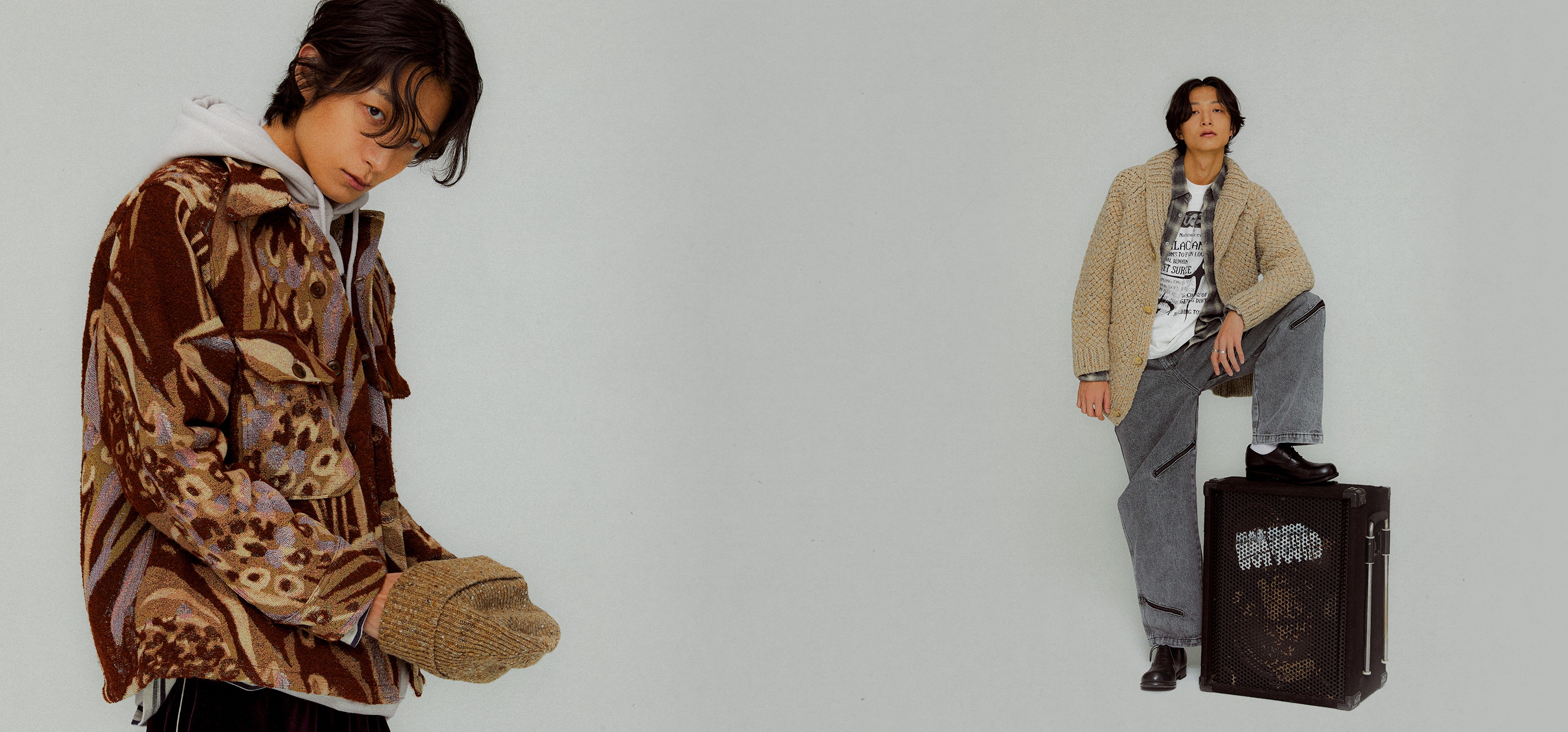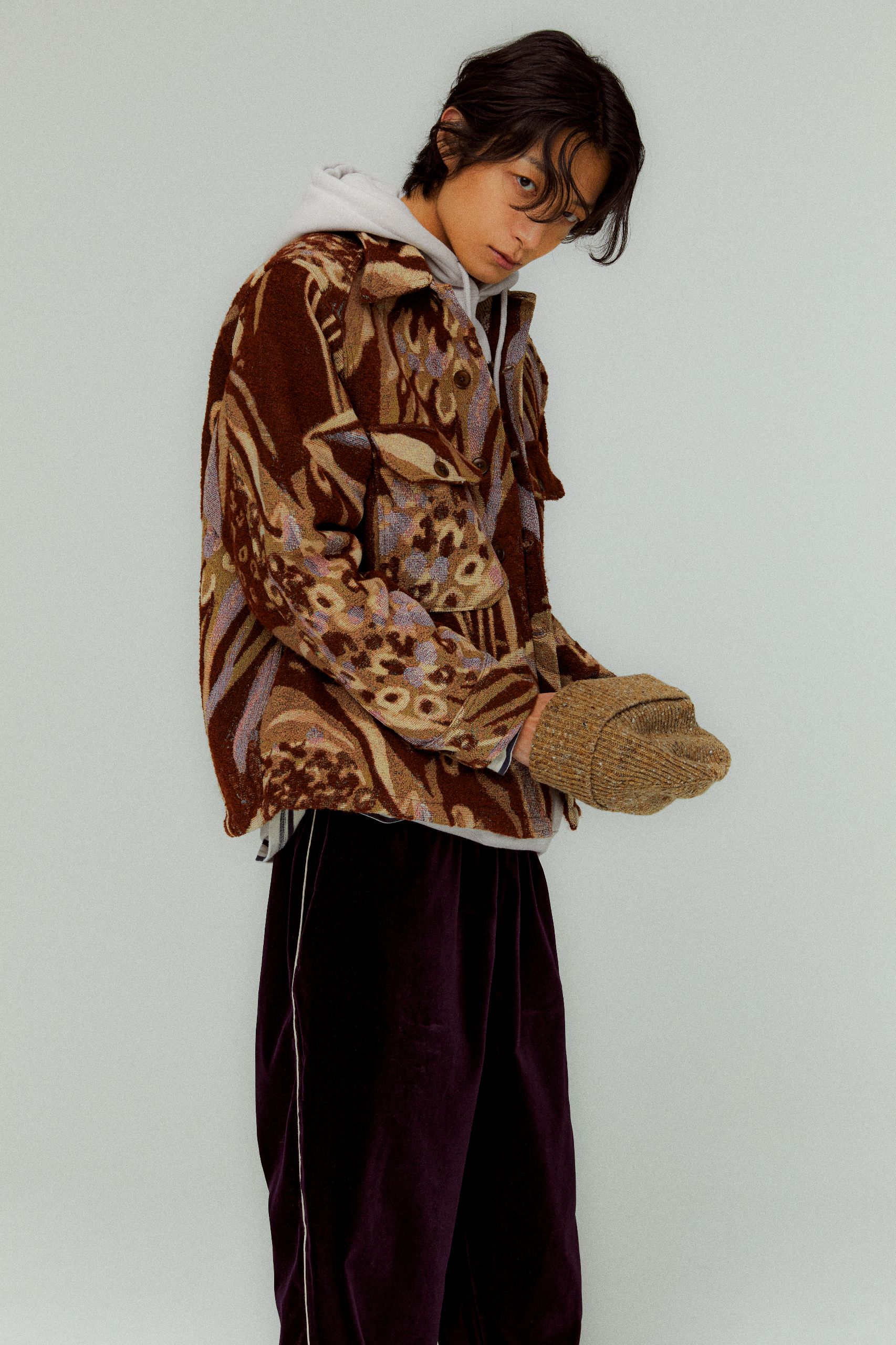 커트 코베인이 애정 하는 또 다른 아이템에는 패턴과 컨버스 스니커즈가 있습니다. 패턴 아이템은 그런지 특유의 거친 미학을 뚜렷이 보여주죠. 다양한 애니멀 패턴이 믹스된 선플라워의 셔츠형 재킷은 자카드 소재로 대담한 스타일을 완성하기에 제격입니다. 여기에 벨벳 소재의 트랙 팬츠와 컨버스 스니커즈를 매치하고, 무심하면서도 쿨한 애티튜드를 더해보세요.
