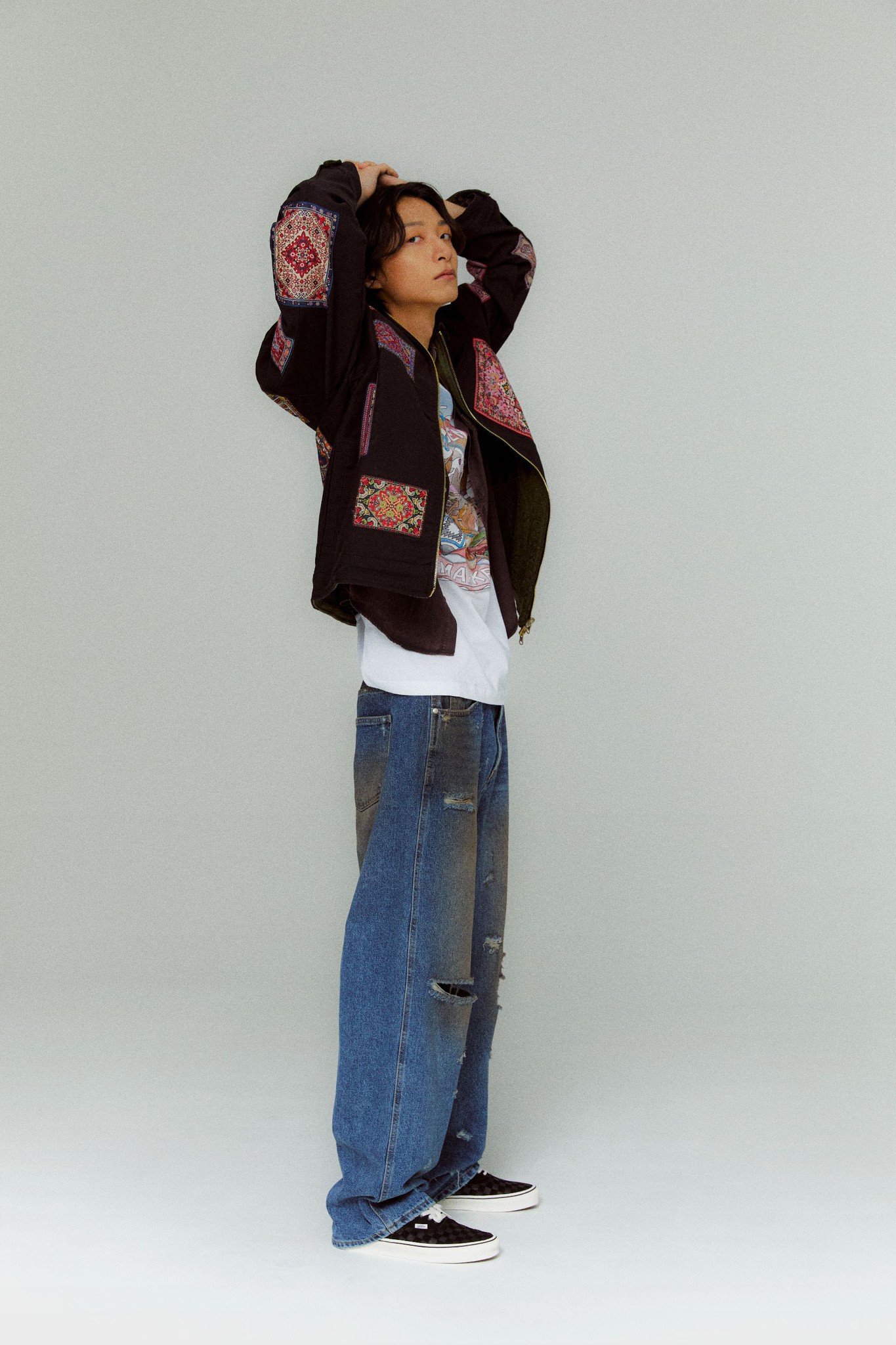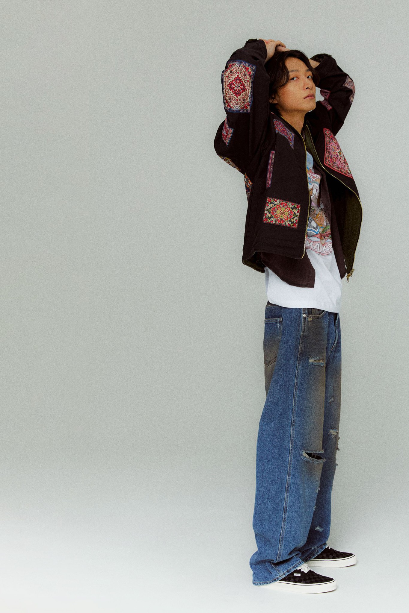 커트 코베인은 음악 외에 자신을 표현하는 수단으로 패션을 택했습니다. 그가 즐겼던 그런지룩의 대표 아이템 중 하나는 오래된 워싱 데님이죠. 찢어지고 빛바랜 듯한 데님 팬츠는 남루한 그런지룩을 보여주기에 제격입니다. 빈티지한 러그를 잘라 붙인듯한 패치워크 재킷과 키치한 프린트가 돋보이는 티셔츠를 함께 매치하면 대담하면서도 신선한 스타일을 완성할 수 있어요.