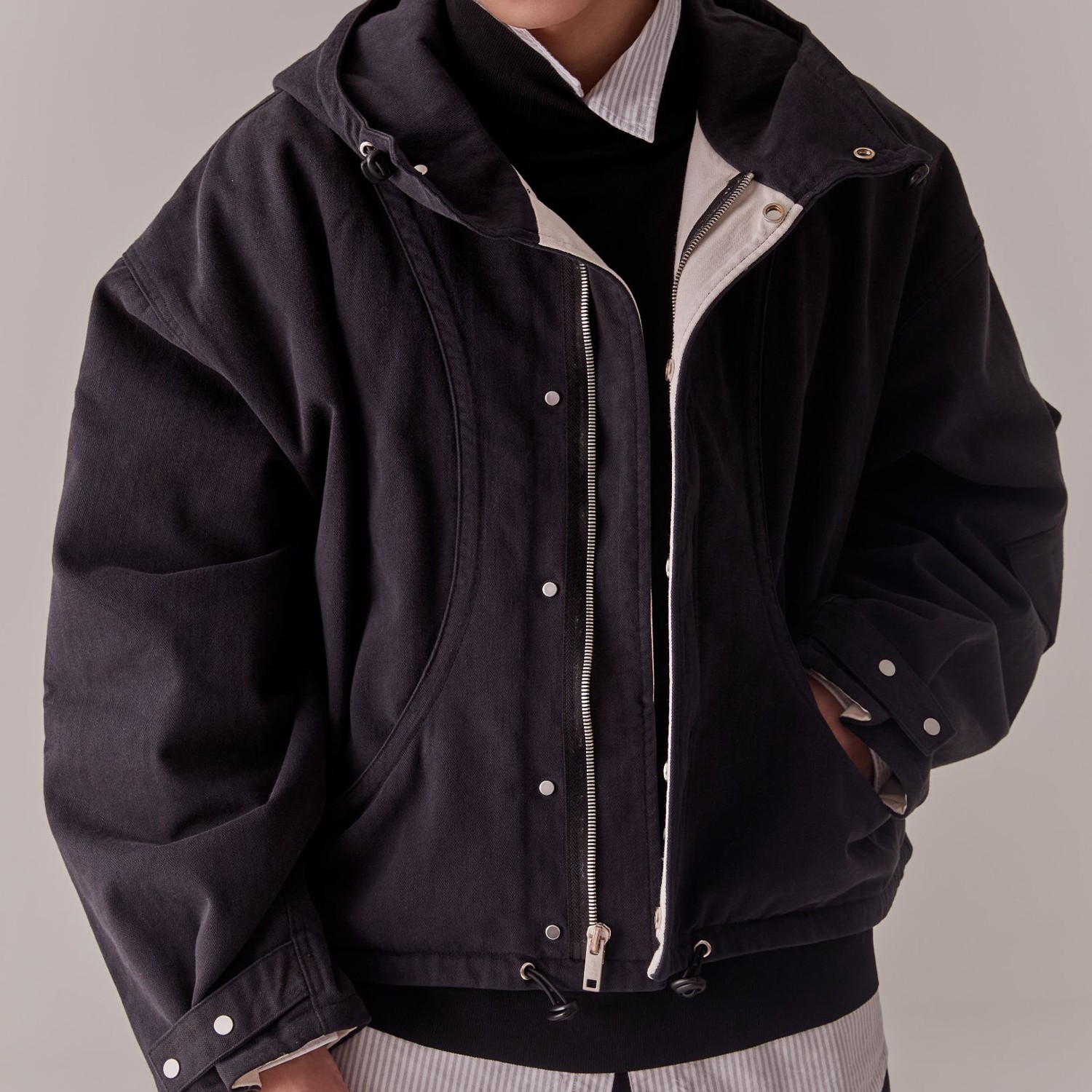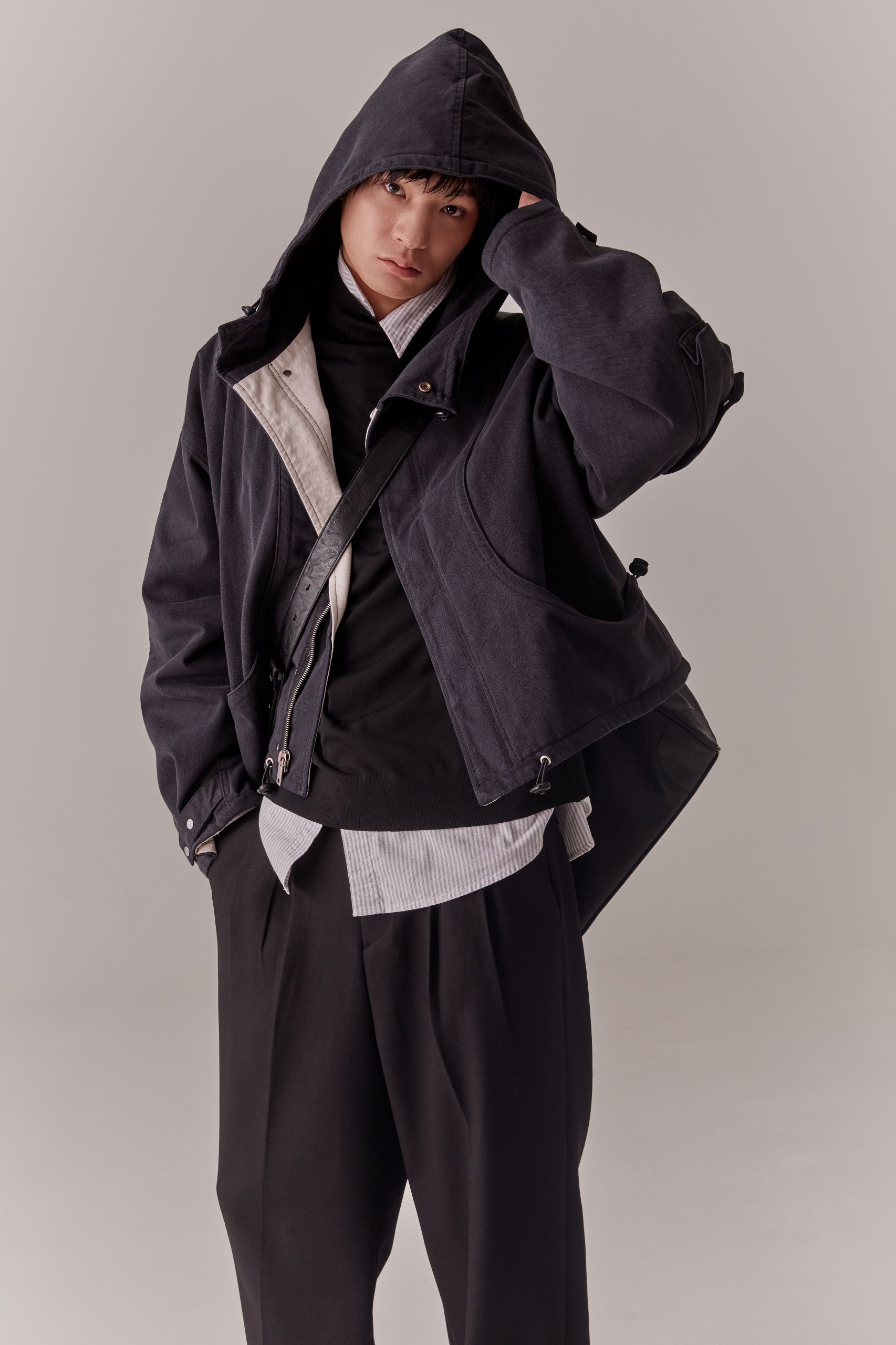 내추럴한 멋을 추구하는 남자가 근사하게 옷 입는 방법. 모던한 블랙과 화이트 컬러 스타일에 크롭 후드 재킷과 메신저 백을 활용해 포인트를 더해보세요. RRR123의 크롭 후드 재킷은 뒷면에 새겨진 숫자 레터링과 후드 장식으로 캐주얼한 분위기를 연출하기 좋아요. 여기에 메신저 백을 매치하면 좀 더 경쾌함을 가미할 수 있죠. 담담하게 그리고 세밀하게 스타일을 업그레이드해 보세요.