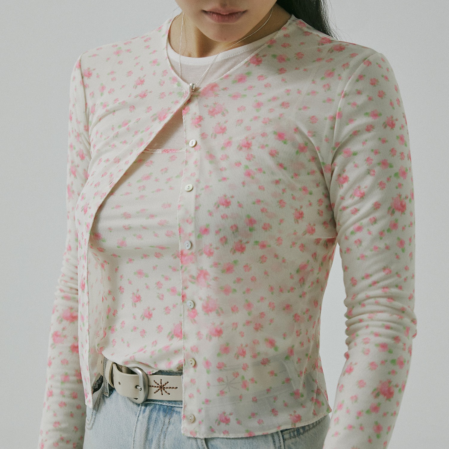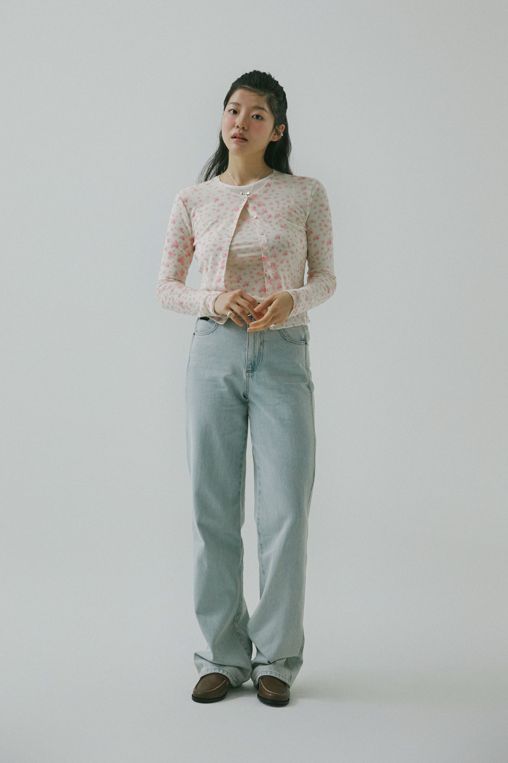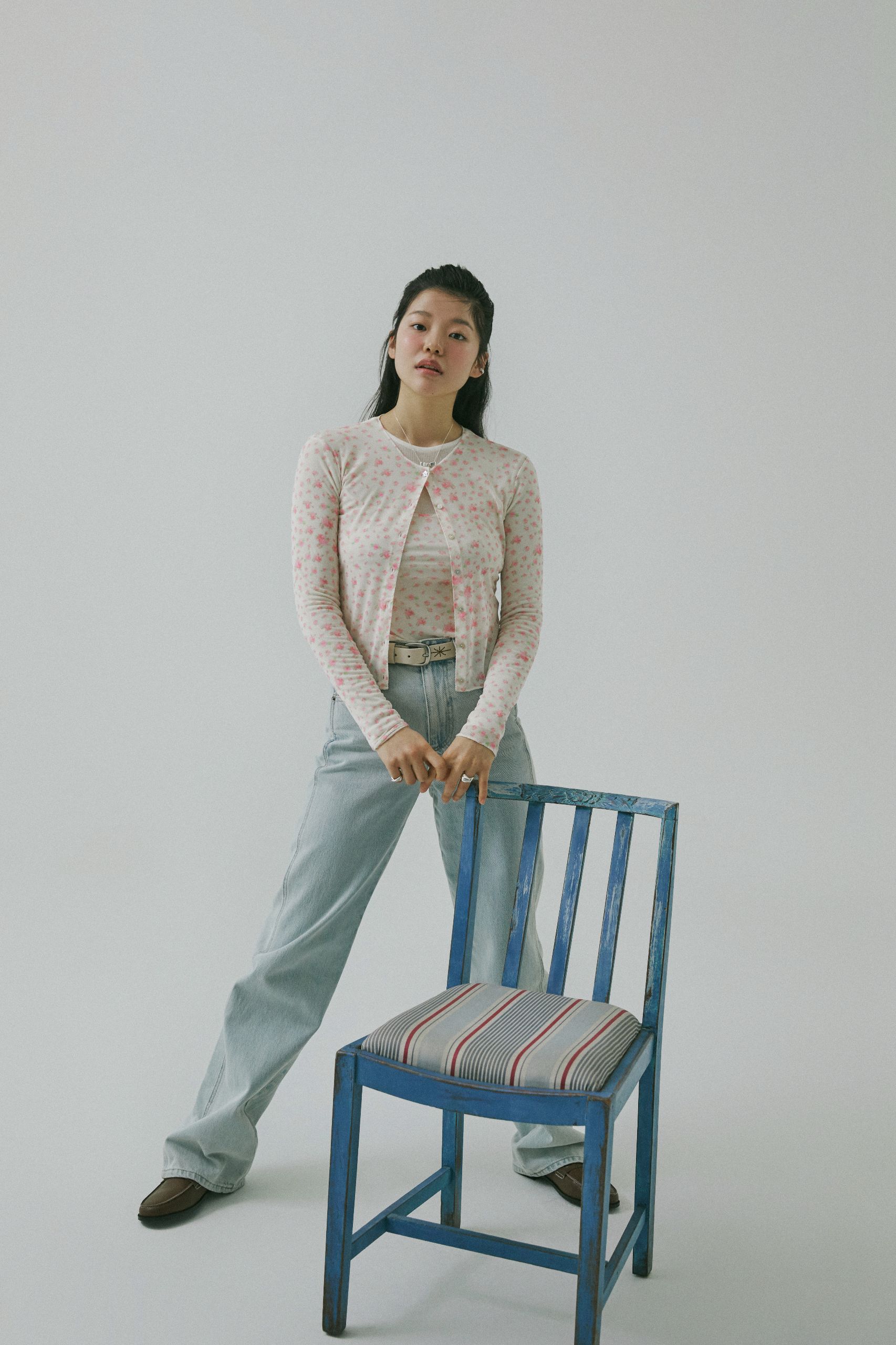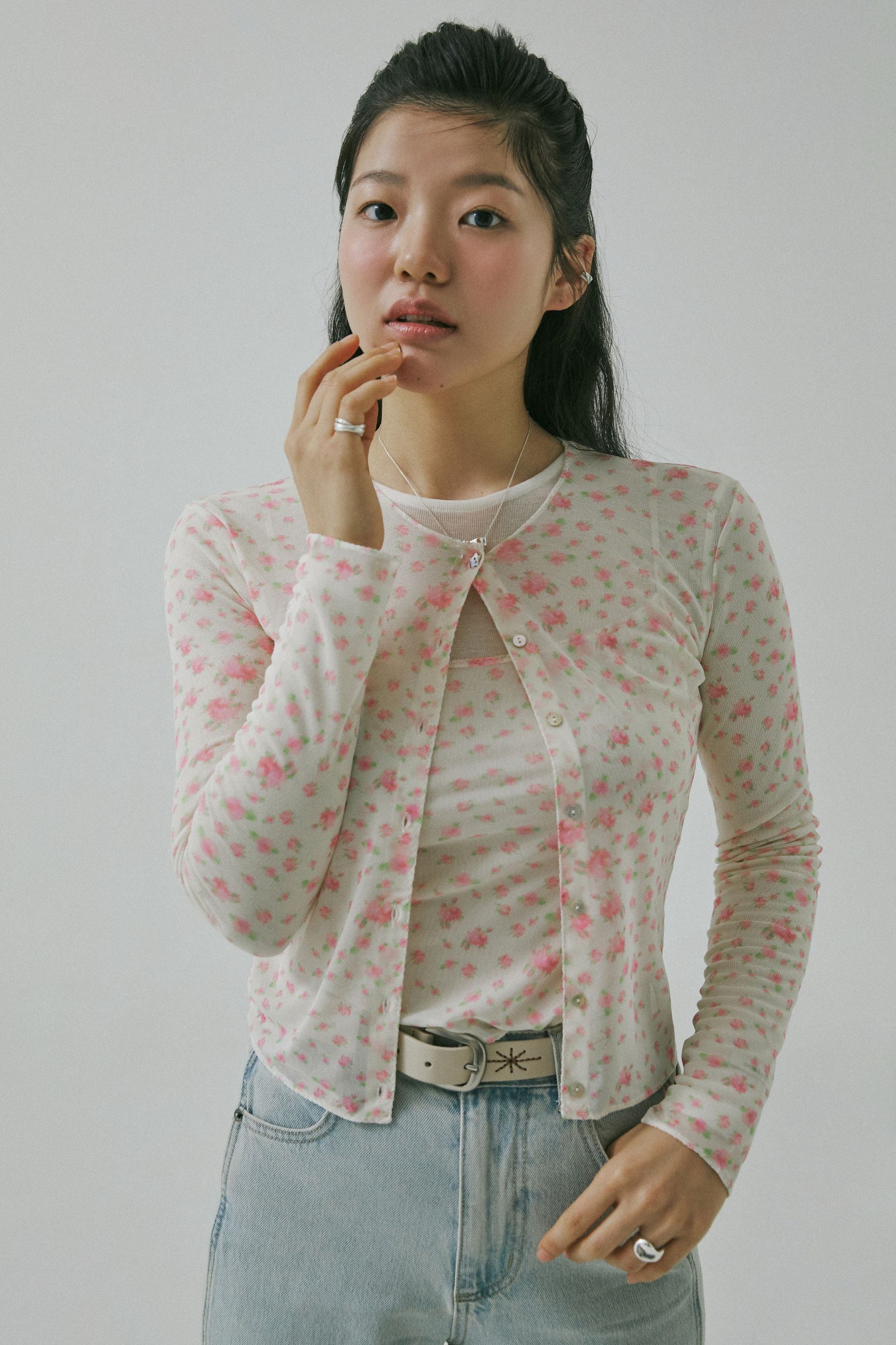 ‘빈티지’, ‘코티지 코어’하면 떠오르는 강렬한 러플, 레이스, 크로셰 보다 나만의 스타일로 심플하게 연출하고 싶다면, 큼직한 디테일은 덜어낸 기본 디자인의 카디건을 골라보세요. 같은 패턴의 이너와 연출한다면 금상첨화. 잔잔한 플로럴 패턴만으로도 충분히 봄 분위기를 연출할 수 있어요. 부드러운 연청에 빈티지함을 더해줄 웨스턴 벨트까지 함께라면 가볍고 쉽게 즐길 수 있는 컨트리 룩이 완성될 거예요.