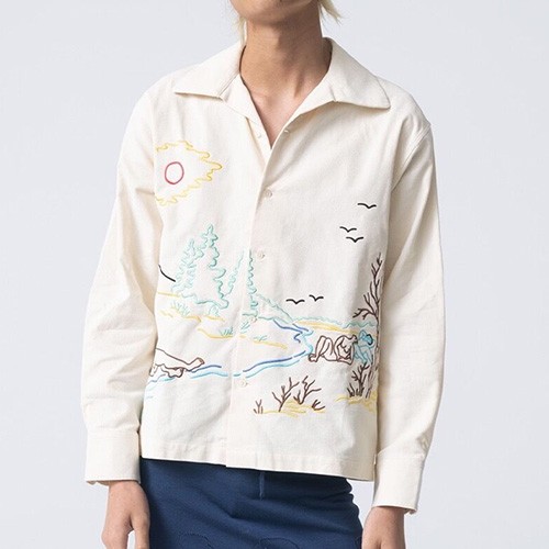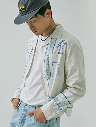 따스한 햇살 아래 해먹에 누워 모자로 얼굴을 가린 채 낮잠을 즐기는 시골 소년의 모습이 떠오르는 컨트리 스타일을 소개합니다. 이탈리아 남부 도시의 외벽에 새겨져 있을 것만 같은 나선형 패턴과 낭만적인 장미가 수놓인 셔츠는 빈티지한 매력을 더해주는 것은 물론 하늘하늘한 소재감과 실루엣이 편안함까지 선사합니다. 봄엔 롱 슬리브, 데님과 함께 매치했다면, 여름엔 슬리브리스나 스윔 팬츠 위에 툭 걸쳐 리조트 아이템으로도 활용해 보세요.