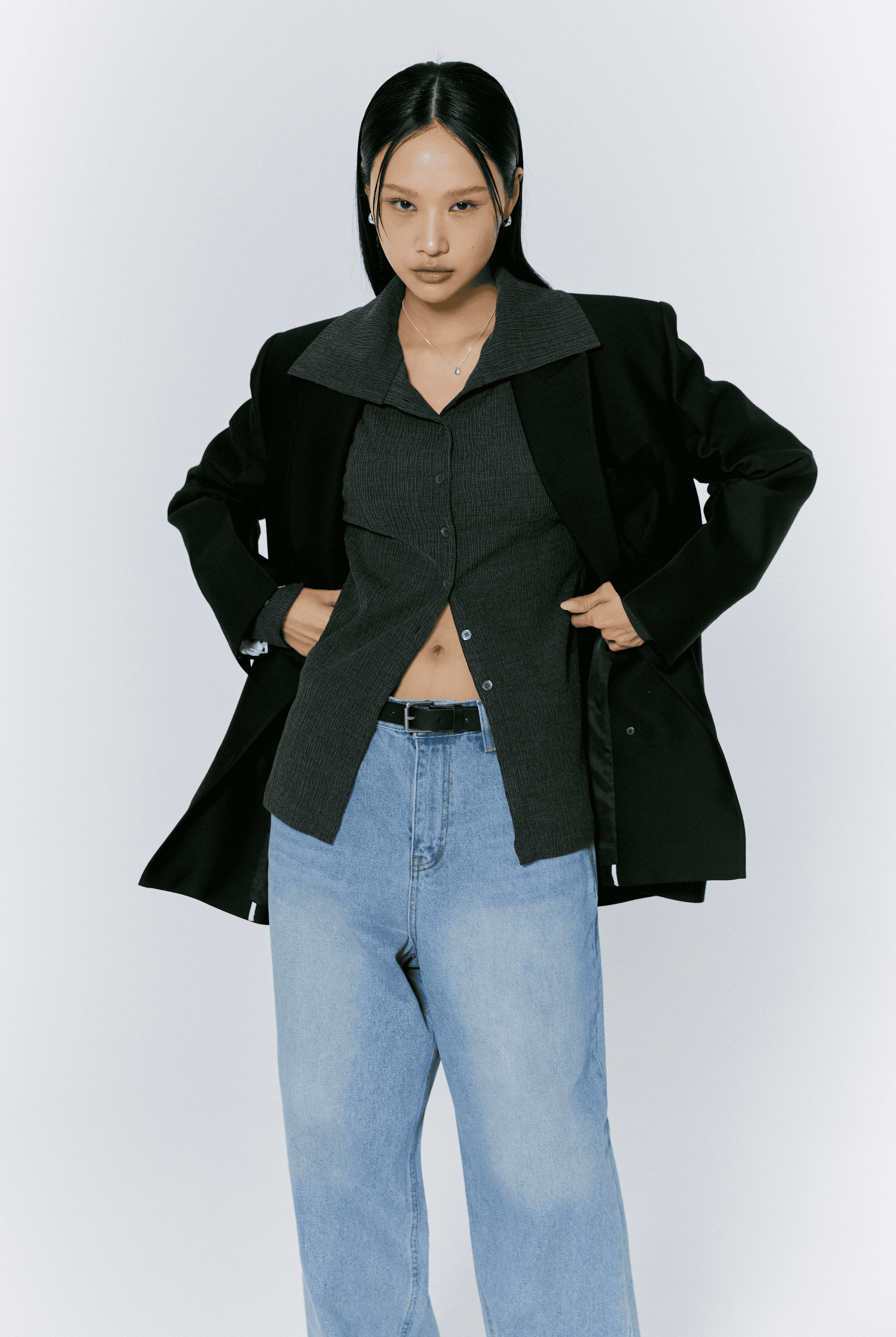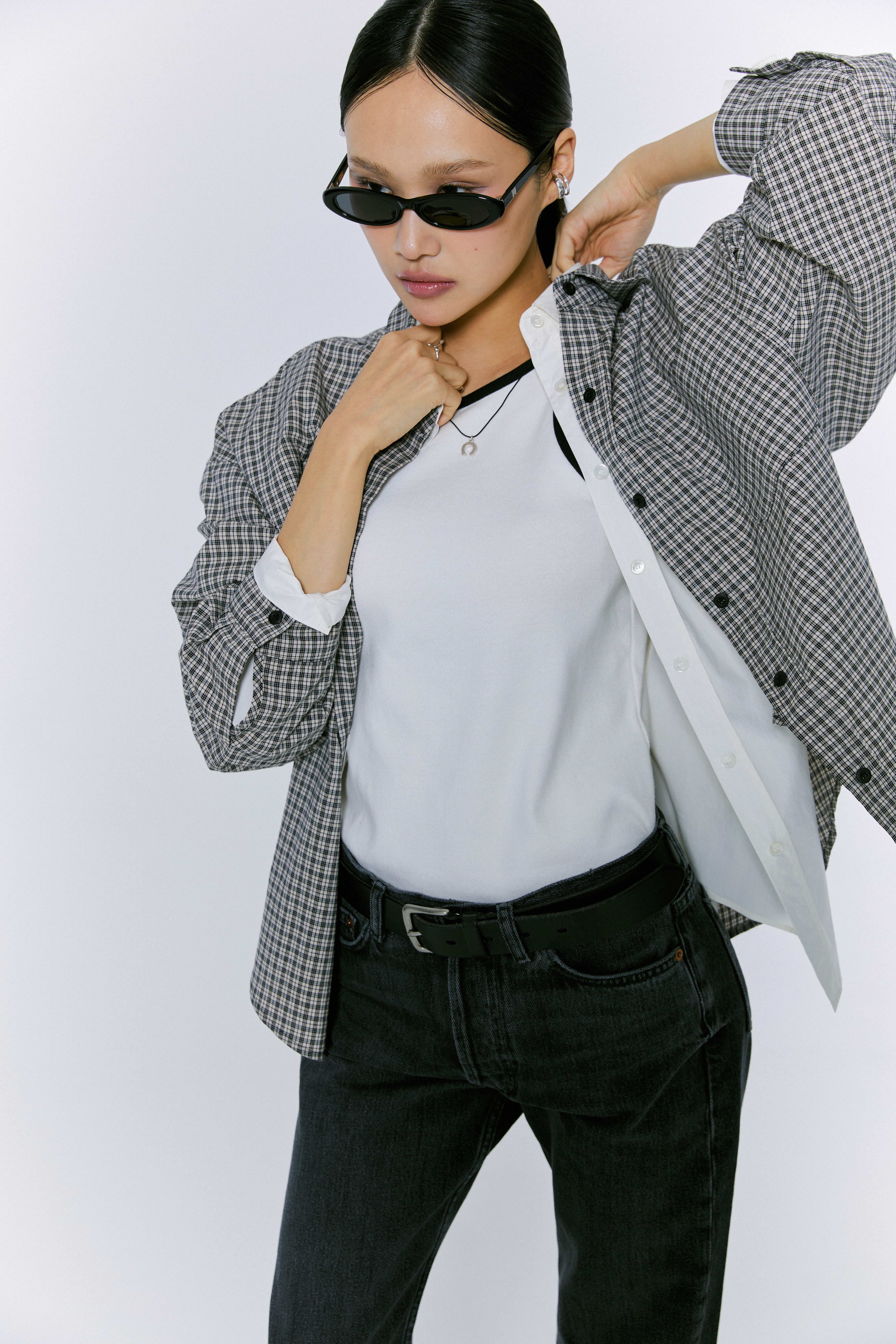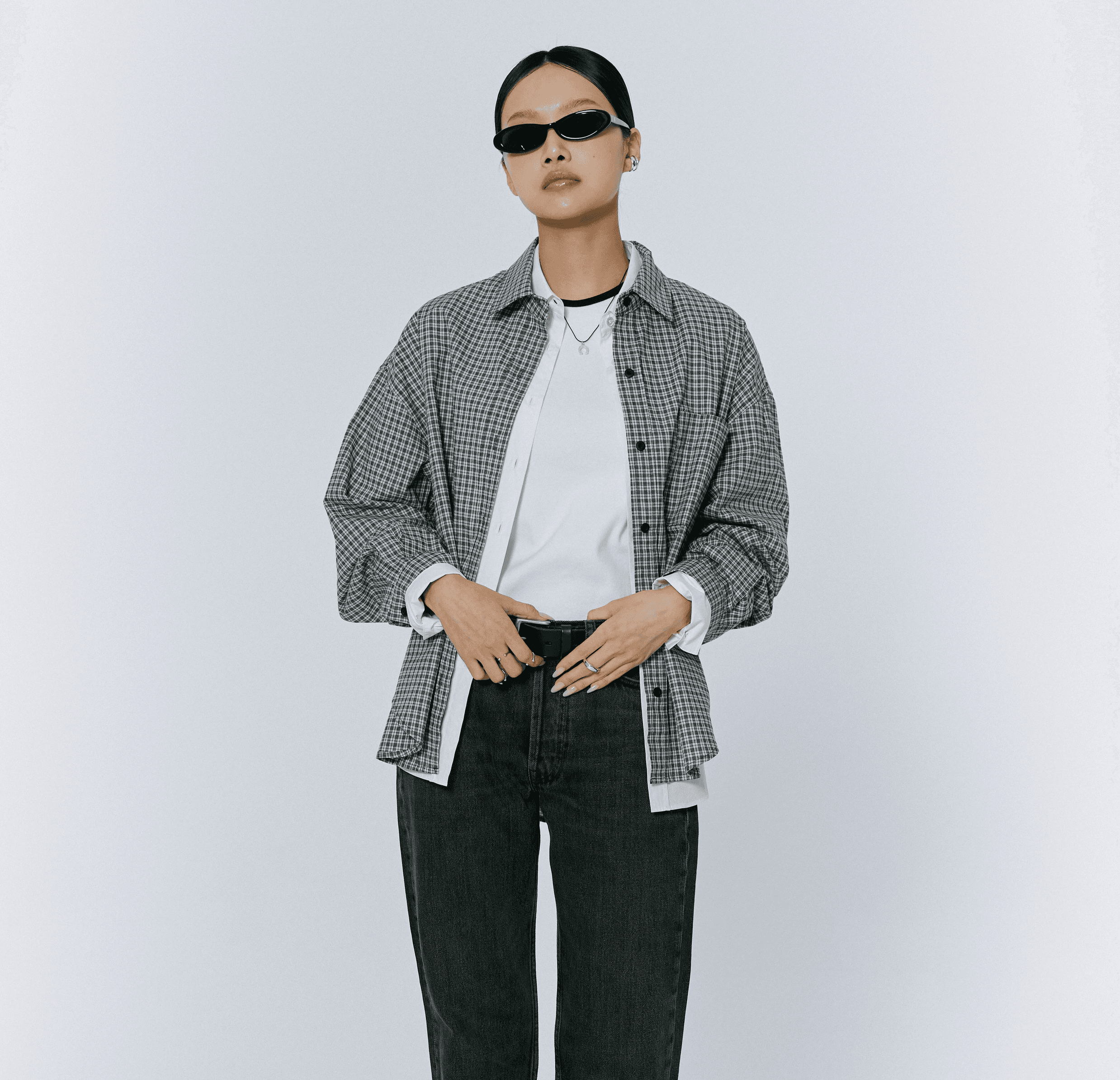 모두의 옷장에 있는 기본적인 아이템으로 조합해 내는 스타일이야말로 데님을 가장 근사하게 활용하는 방법일 겁니다. 빈티지한 워싱이 가미된 블랙 데님에 여러 장의 셔츠를 레이어링해 보세요. 단추는 모두 풀어 상의의 레이어가 겹겹이 보이도록 하고, 소매도 마구 주름이 지도록 걷어올려요. 이 룩이 추구하는 자유분방한 분위기는 1990년대 패션의 향수를 불러일으키는 동시에 꾸민 듯 안 꾸민 듯 힘을 뺀 데님의 미학을 만족시키기에 충분해요.