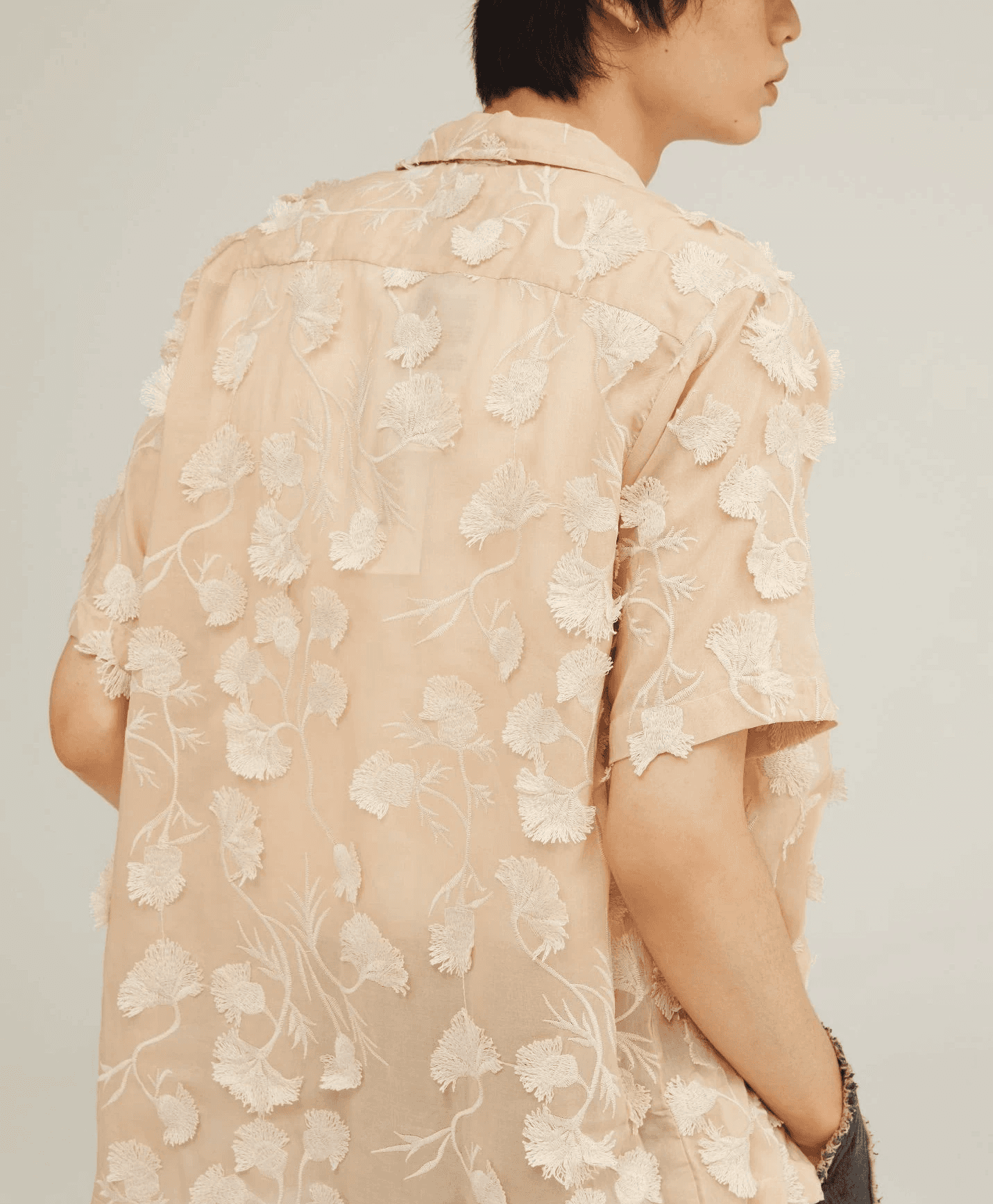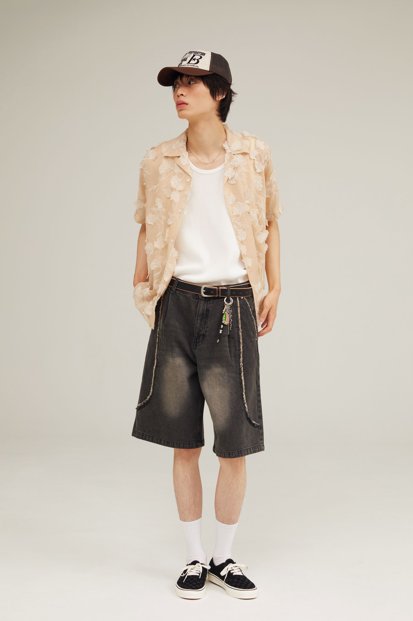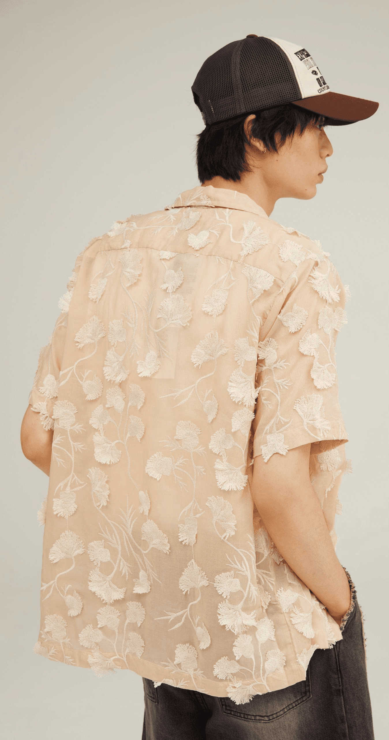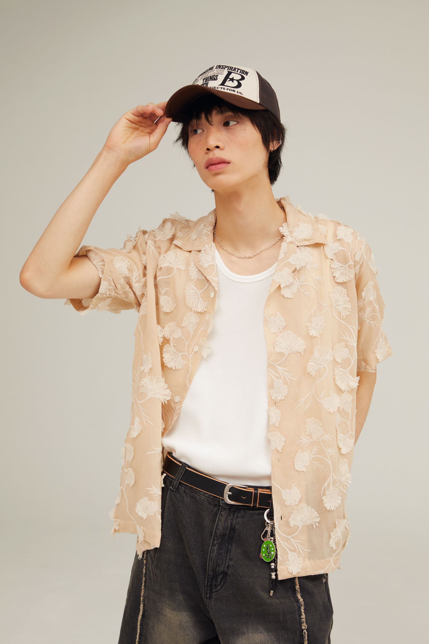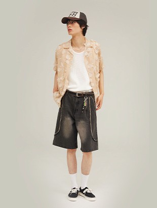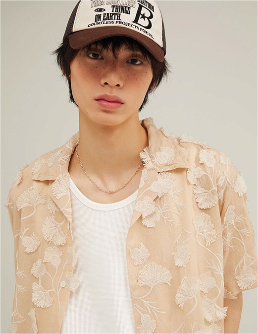 반소매 셔츠는 누구의 옷장에나 있지만 생각보다 스타일링하기 까다로운 아이템입니다. 밋밋하고 뻔한 활용법을 피하고 싶다면 입체적이고 우아한 엠브로이더리 장식이 더해진 셔츠를 선택해 보세요. 단추는 모두 풀어버리고, 그런지한 데님 버뮤다 쇼츠에 여러 소지품이 달린 카라비너를 장식하고 트러커 캡은 눈이 가려지도록 푹 눌러써 재미까지 더해주면 더할 나위 없죠.