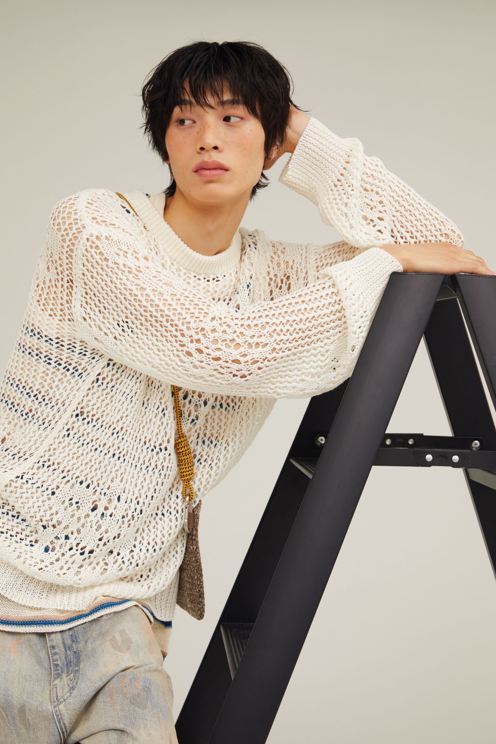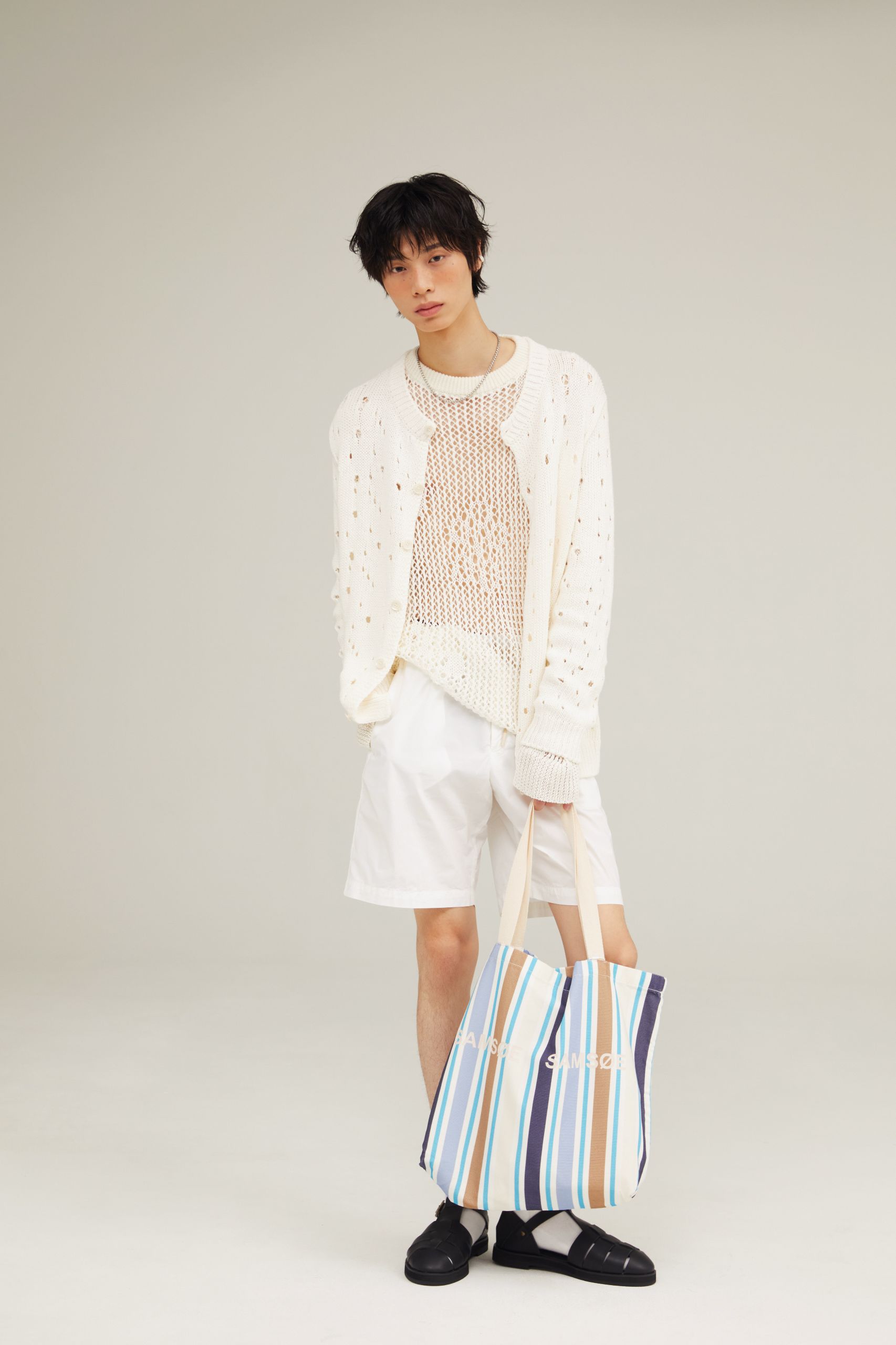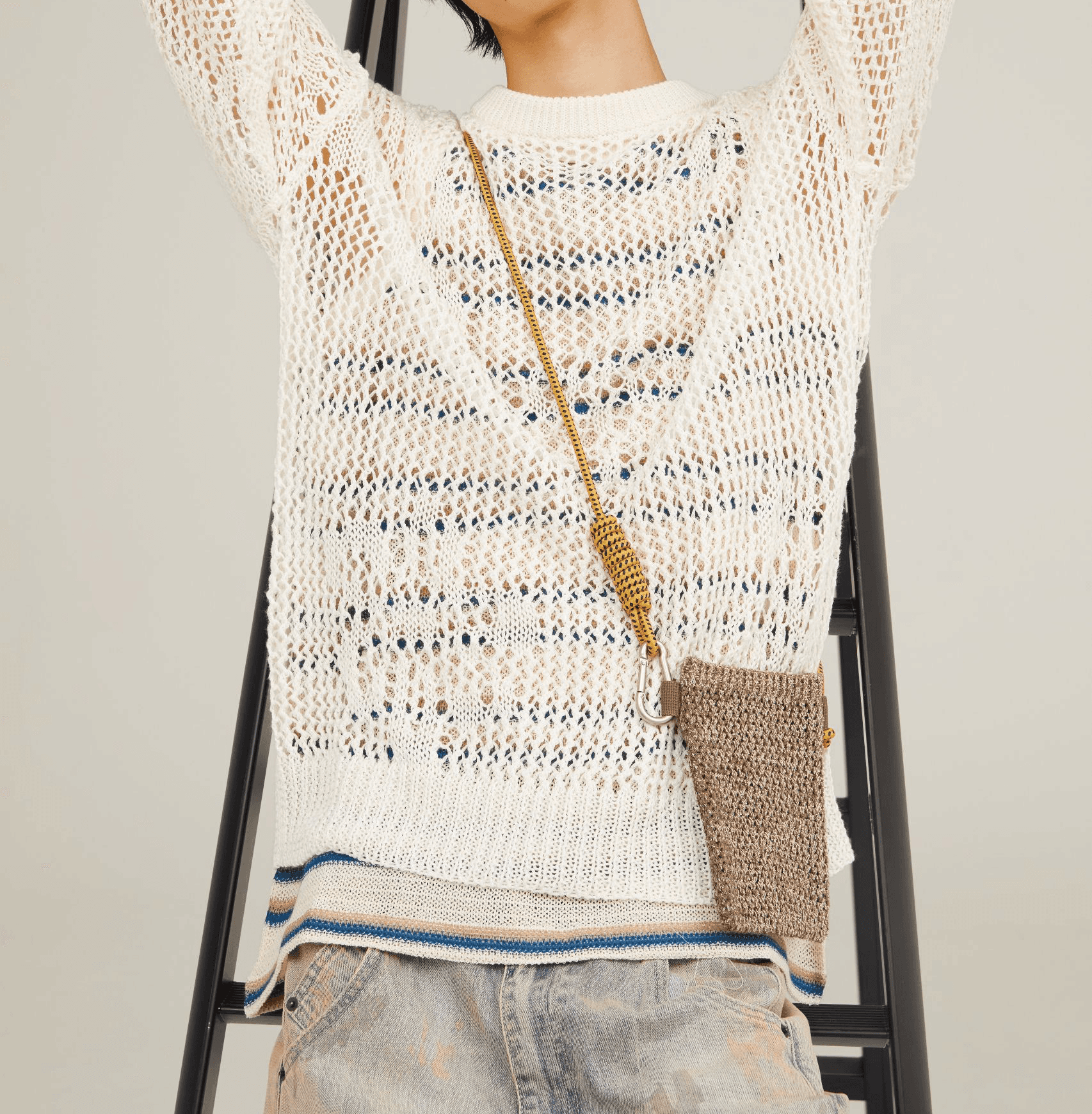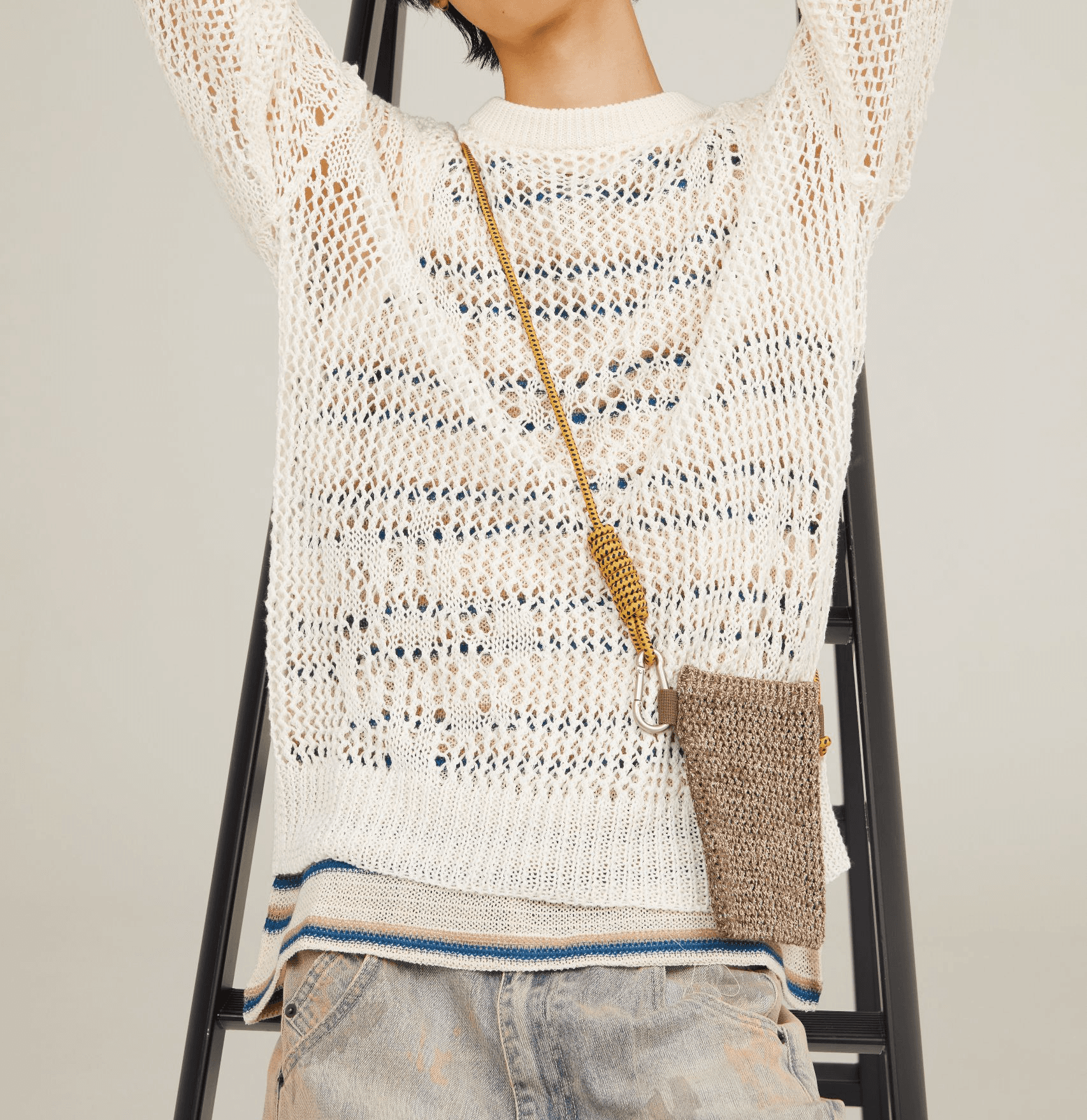 성긴 짜임의 니트웨어의 인기는 여름에도 유효합니다. 휴양지에서의 호젓한 리조트웨어로 적합하고 일상에선 차가운 에어컨 바람을 막아주기에도 용이하죠. 그물처럼 느슨하게 짜인 니트 안에 컬러풀한 슬리브리스 톱을 매치하고 바지 또한 아주 여유롭게 흐르는 핏을 선택하세요. 어깨에 들어간 힘을 풀고 느긋한 태도까지 장착하면 느슨한 니트웨어 스타일 완성.