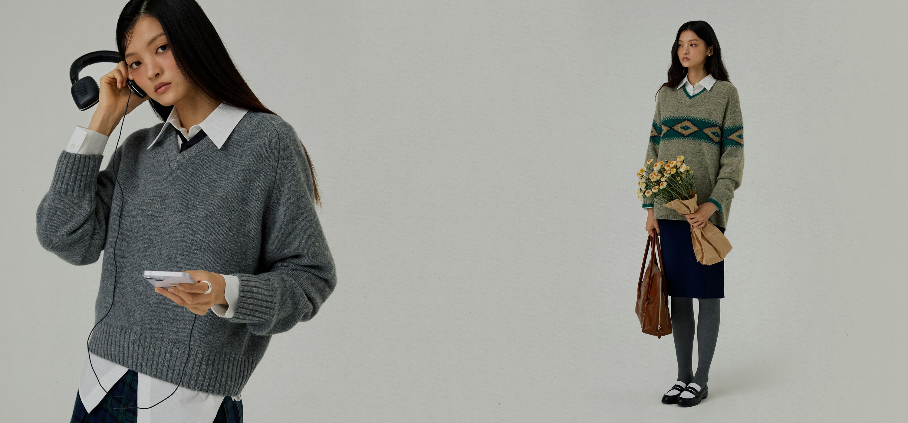 아기 고양이 같은 귀여운 외모에 뾰로통한 표정으로 2000년대 초반 새로운 아름다움을 정의한 데본 아오키. 영화 <D.E.B.S.>에서의 헝클어진 머리카락, 시니컬한 교복 스타일은 영화를 안 본 사람에게도 강렬한 인상을 남겼죠. 브이넥 니트와 플리츠 스커트로 데본 아오키의 시그니처 스타일에 도전해 보세요. 반항아적 태도를 장착하는 것은 선택이 아닌 필수.