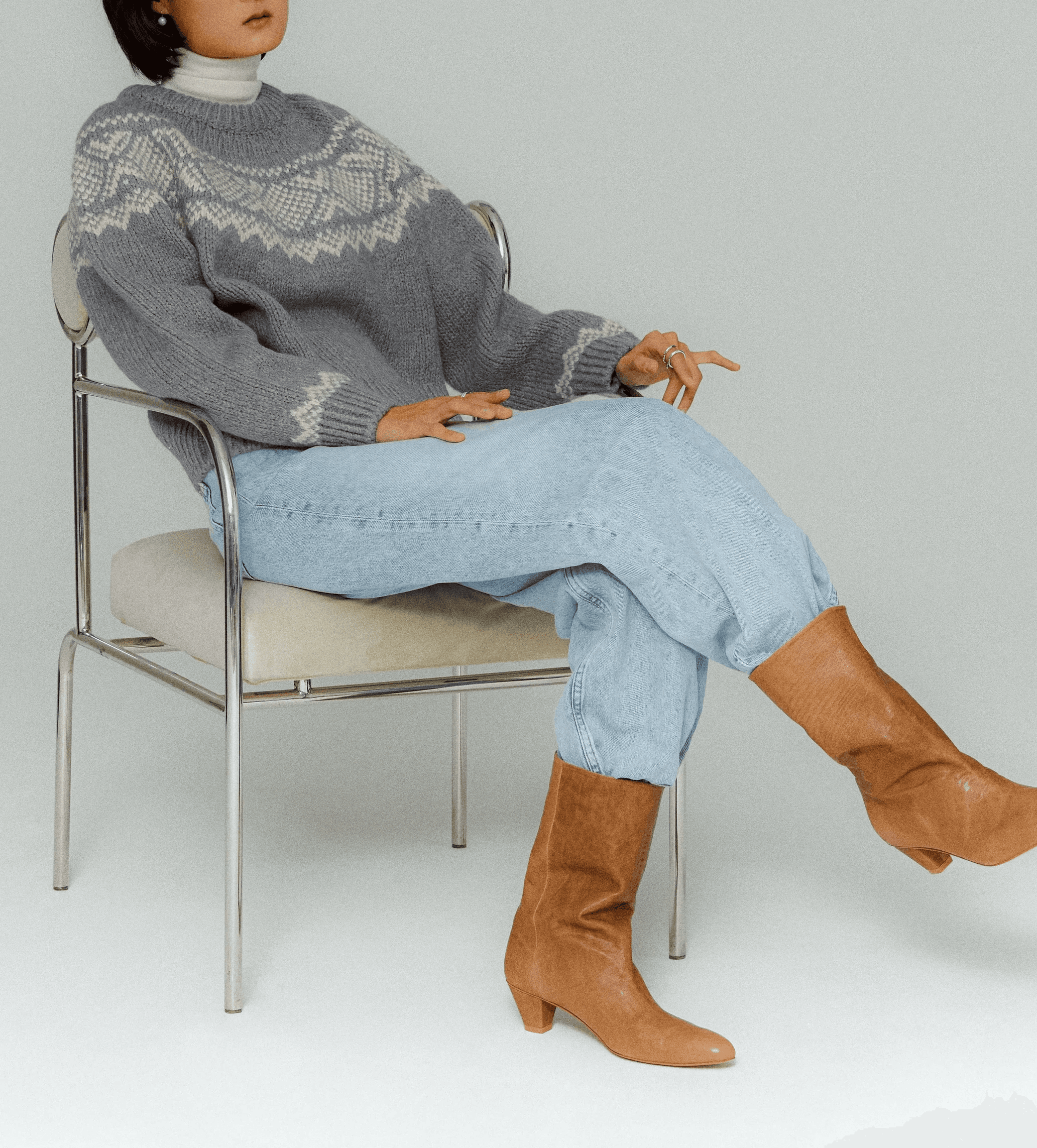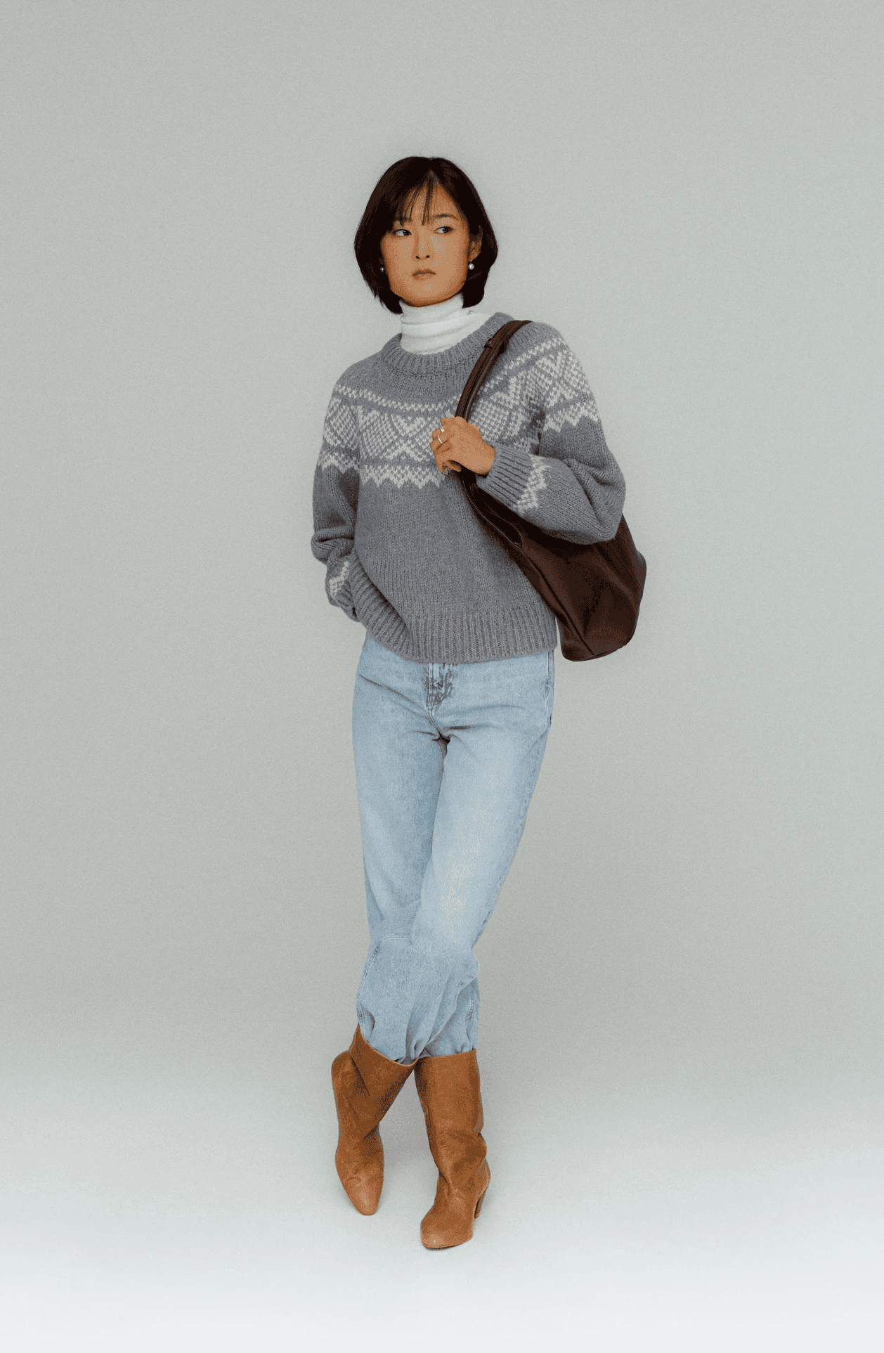 다이애나가 가장 즐겨 입었던 아이템 중 하나는 바로 데님입니다. 폴로 경기 참석, 아들과 놀이공원을 갈 때뿐만 아니라 연설할 때에도 다이애나는 블루 진을 선택했죠. 드레스를 입었을 때의 우아함과는 또 다른 매력을 자아낼 수 있어요. 클래식한 데님 팬츠에 노르딕 패턴의 스웨터를 매치하고 다이애나의 시그니처 아이템인 빅백과 부츠를 더해보세요.
