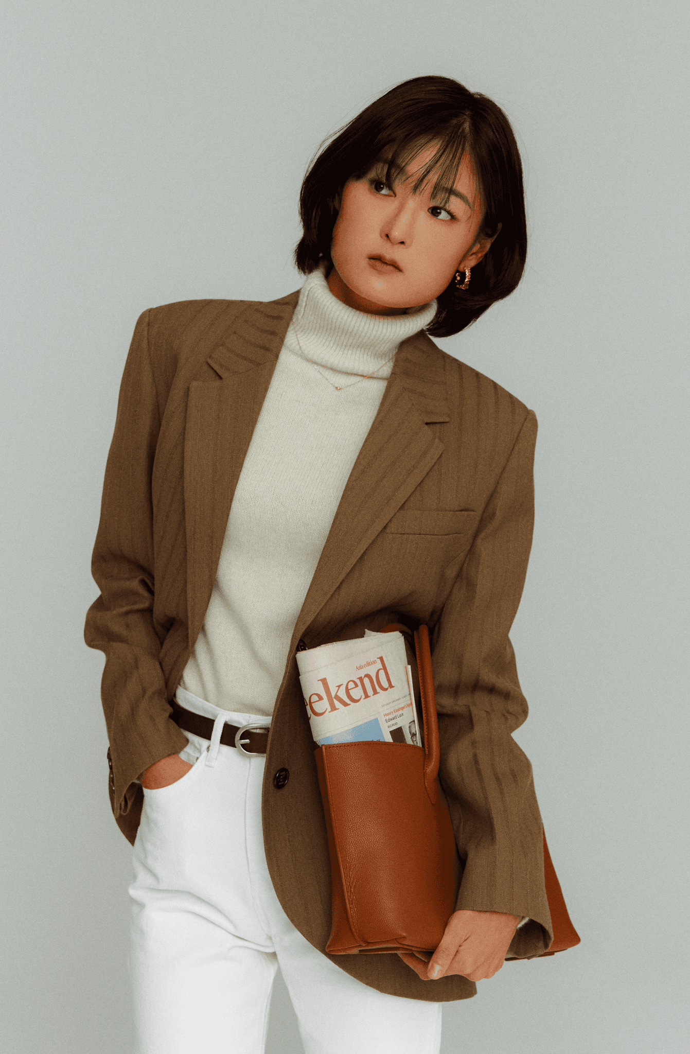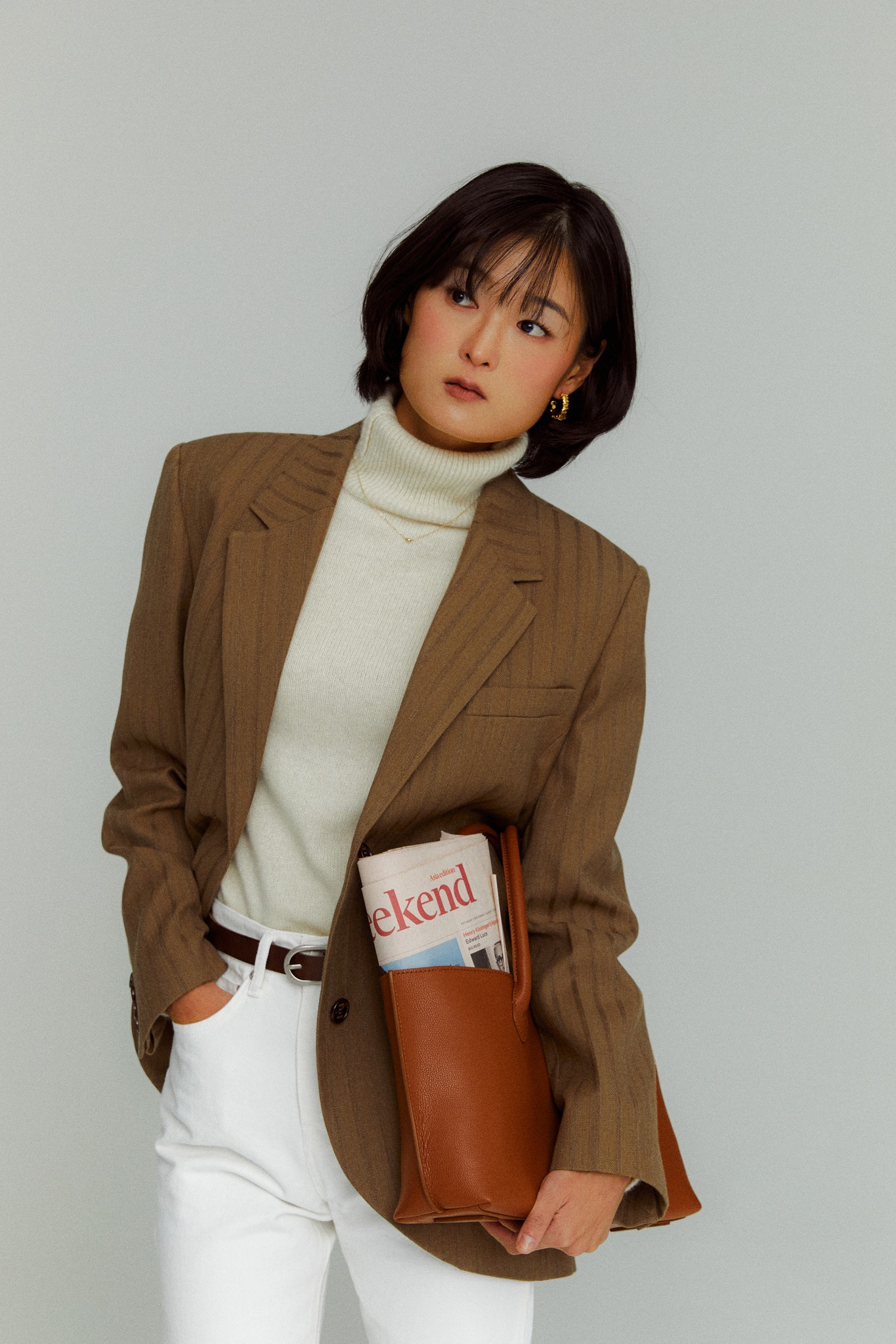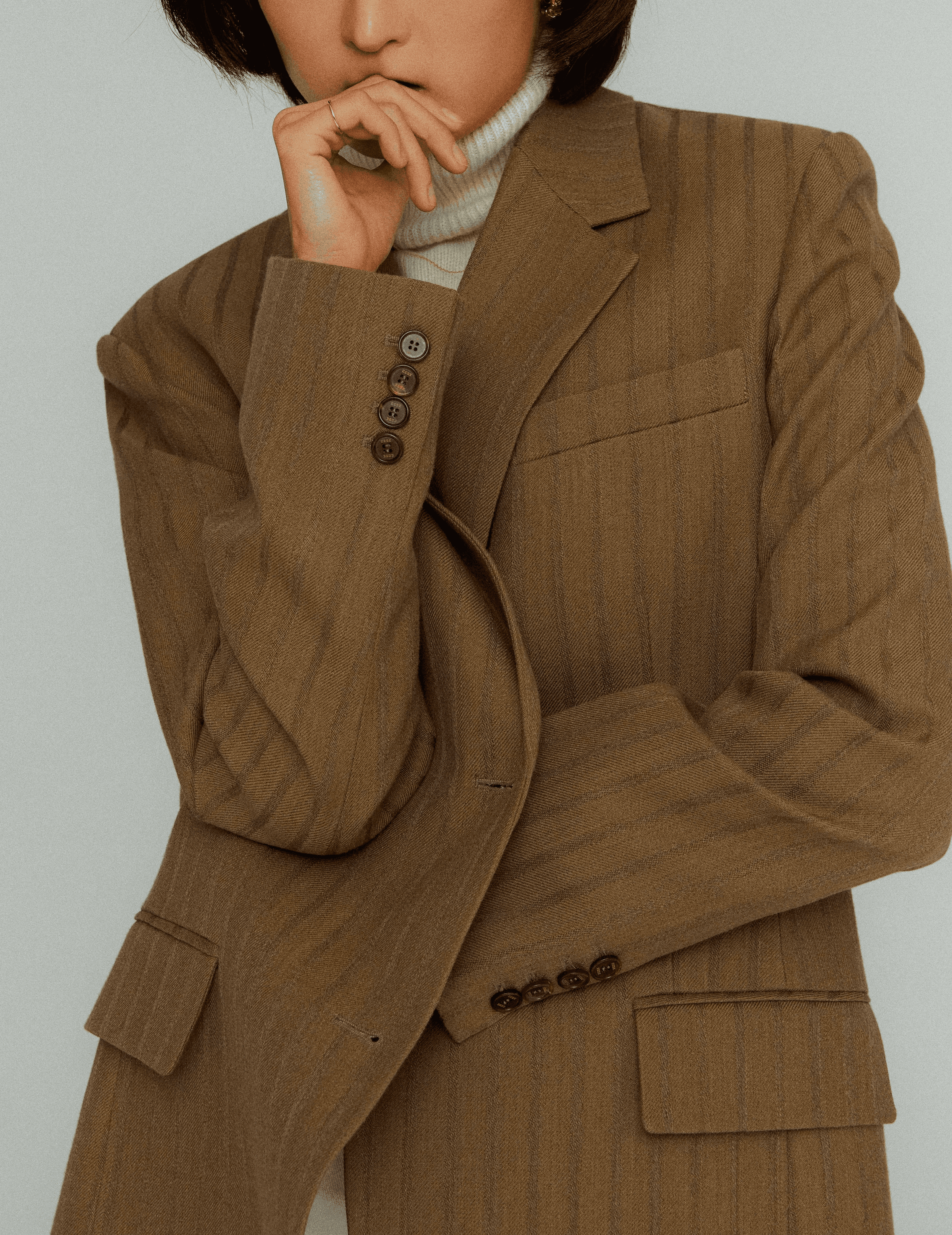 클래식한 올드머니 룩이 트렌드로 자리 잡으며 다이애나의 스타일도 다시 주목받고 있습니다. 다이애나는 우아하면서도 고상한 스타일을 연출할 때 매니시한 재킷을 활용했죠. 은은한 스트라이프 패턴이 돋보이는 재킷에 같은 톤의 카멜 코트를 매치하고 이너와 팬츠는 화이트 계열로 통일해 왕실의 기품을 잃지 않는 패션을 완성했습니다. 여기에 가죽 소재의 가방과 벨트, 스웨이드 소재의 부츠로 클래식한 분위기를 더해보세요.