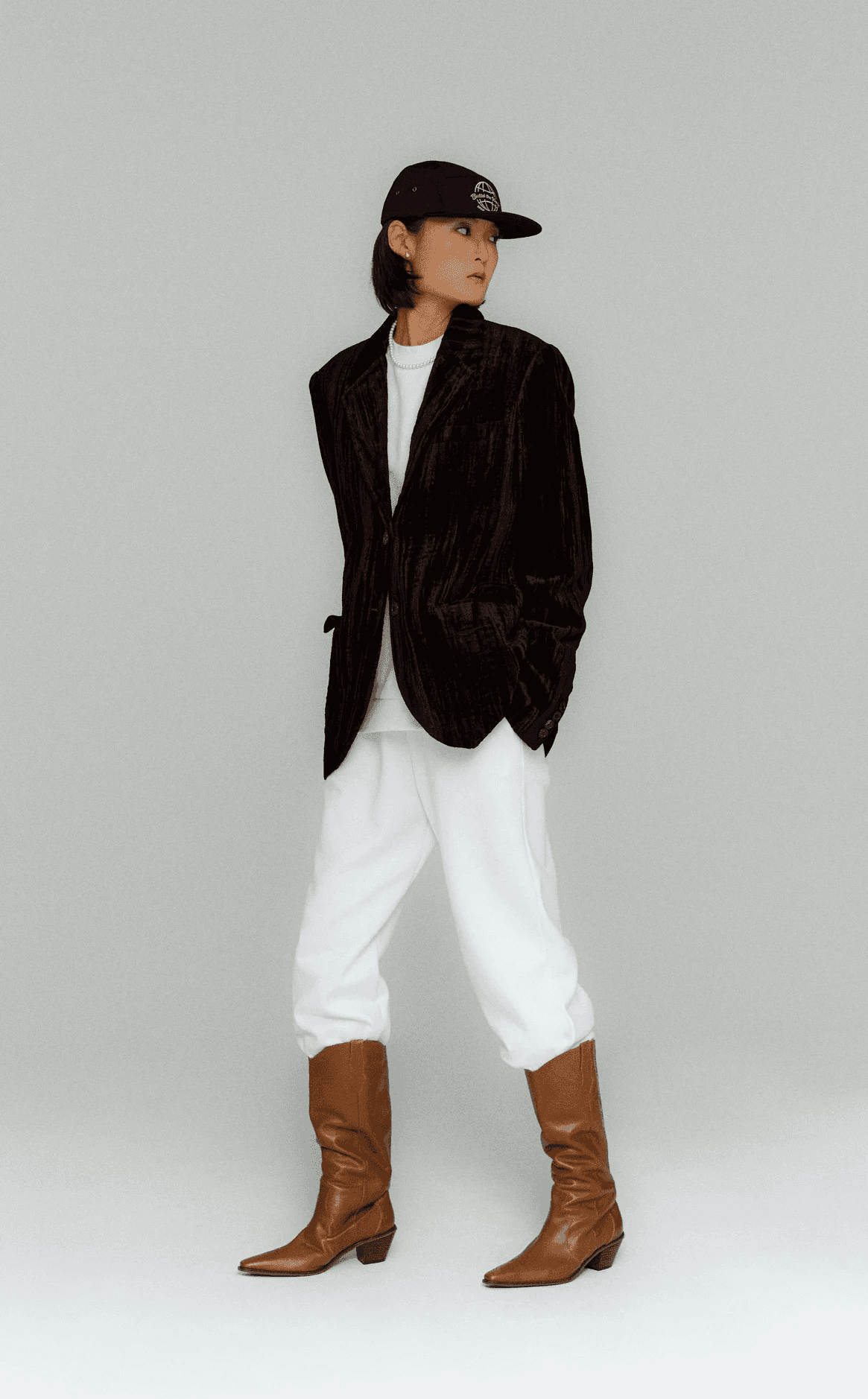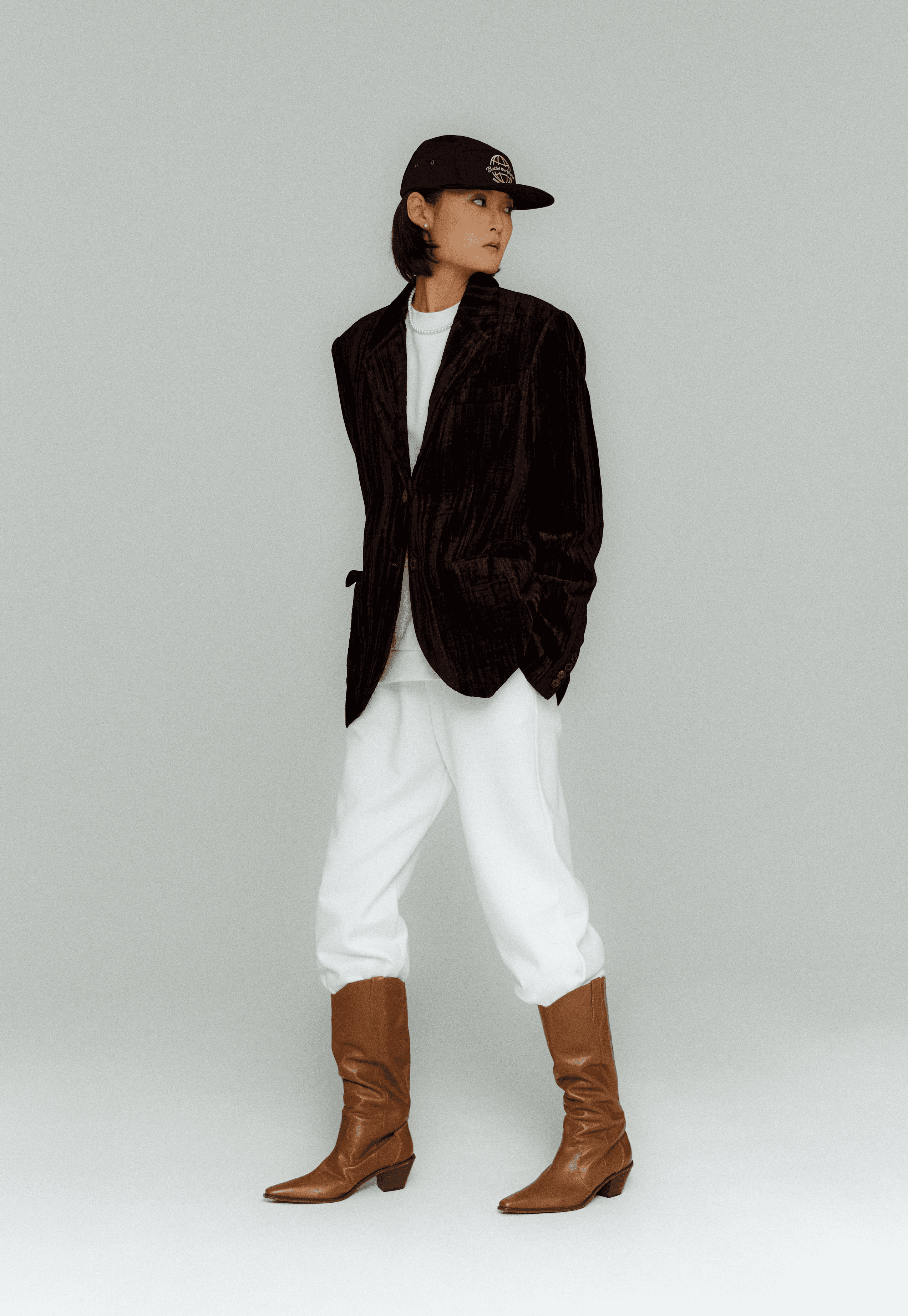 다이애나는 일상에서 좀 더 과감하고 자유를 갈망하는 듯한 패션을 즐겼습니다. 로고 장식의 베이스볼 캡과 카우보이 부츠를 신은 다이애나의 모습은 시대를 앞서가는 듯 지금 봐도 스타일리시할 뿐입니다. 편안한 스웨트셔츠와 스웨트팬츠에 매니시한 벨벳 소재의 재킷을 매치하면 소재가 주는 대비감에 스타일 지수가 단번에 업그레이드되죠.