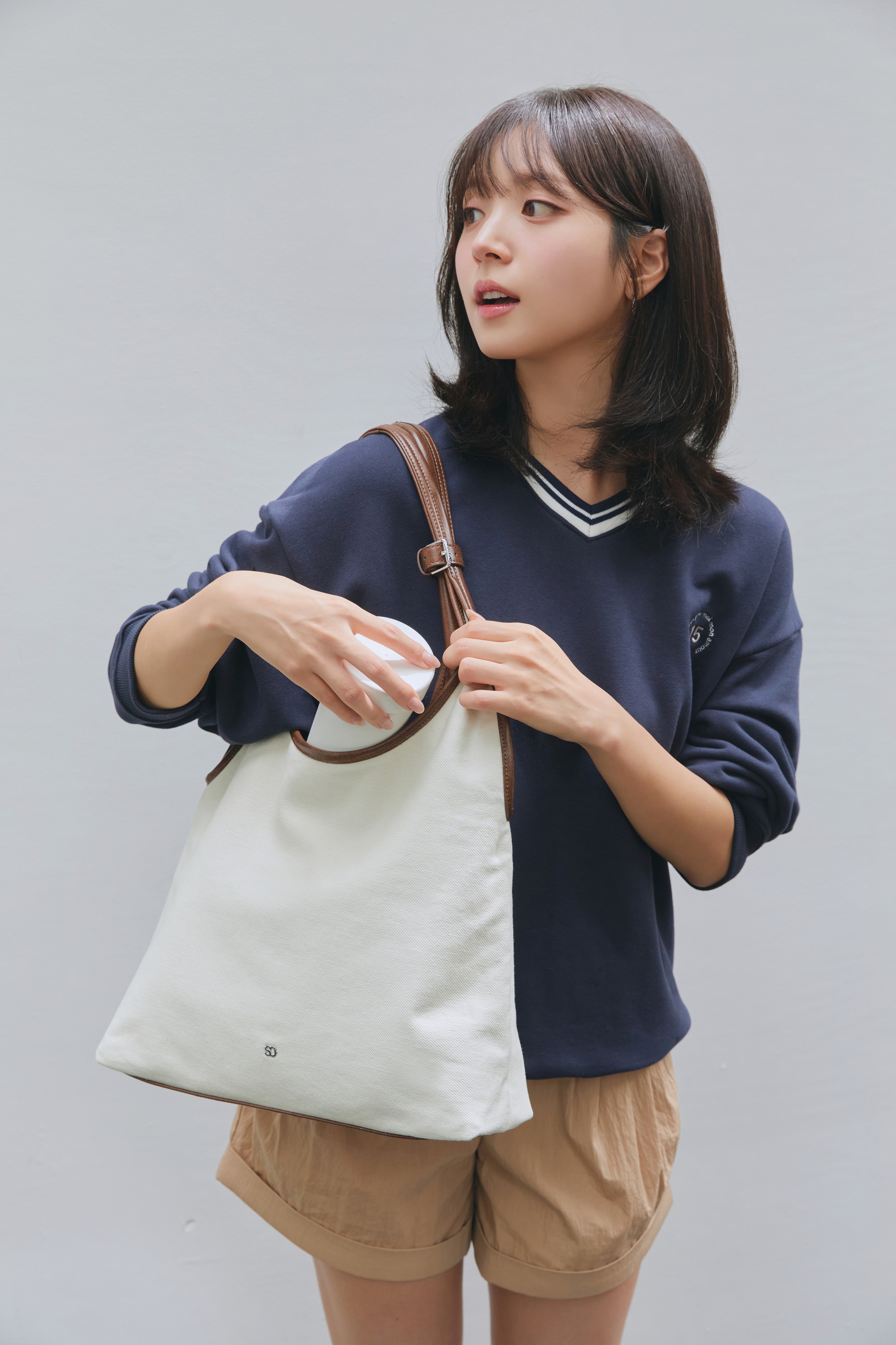 가벼운 맨투맨과 편안한 스니커즈와 스타일링하여 캐주얼함을 더했어요.