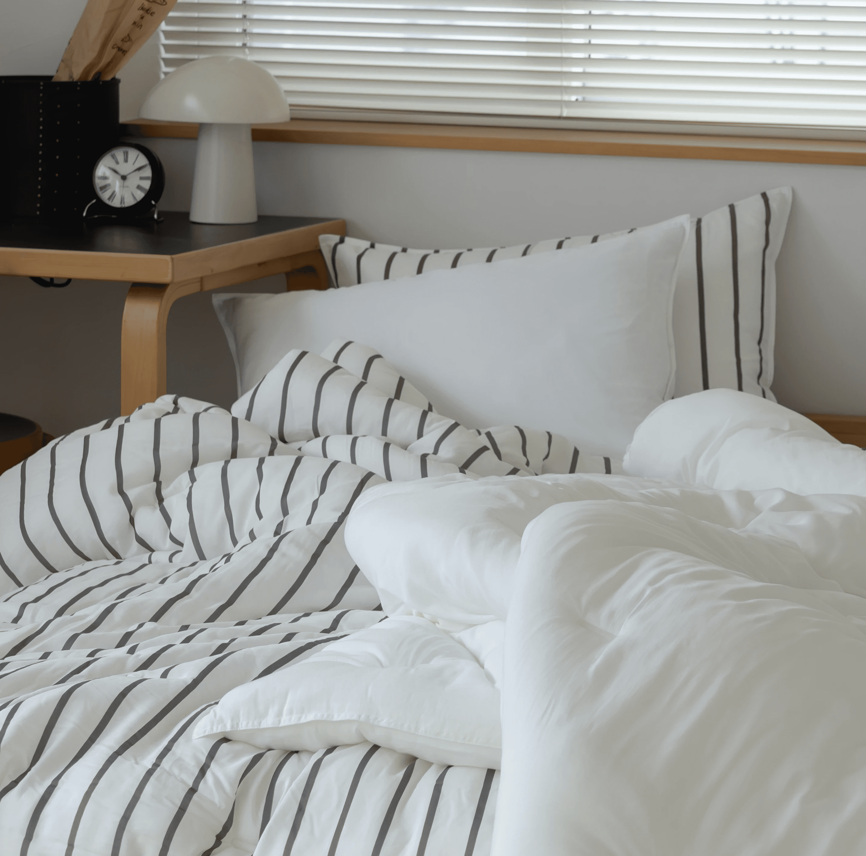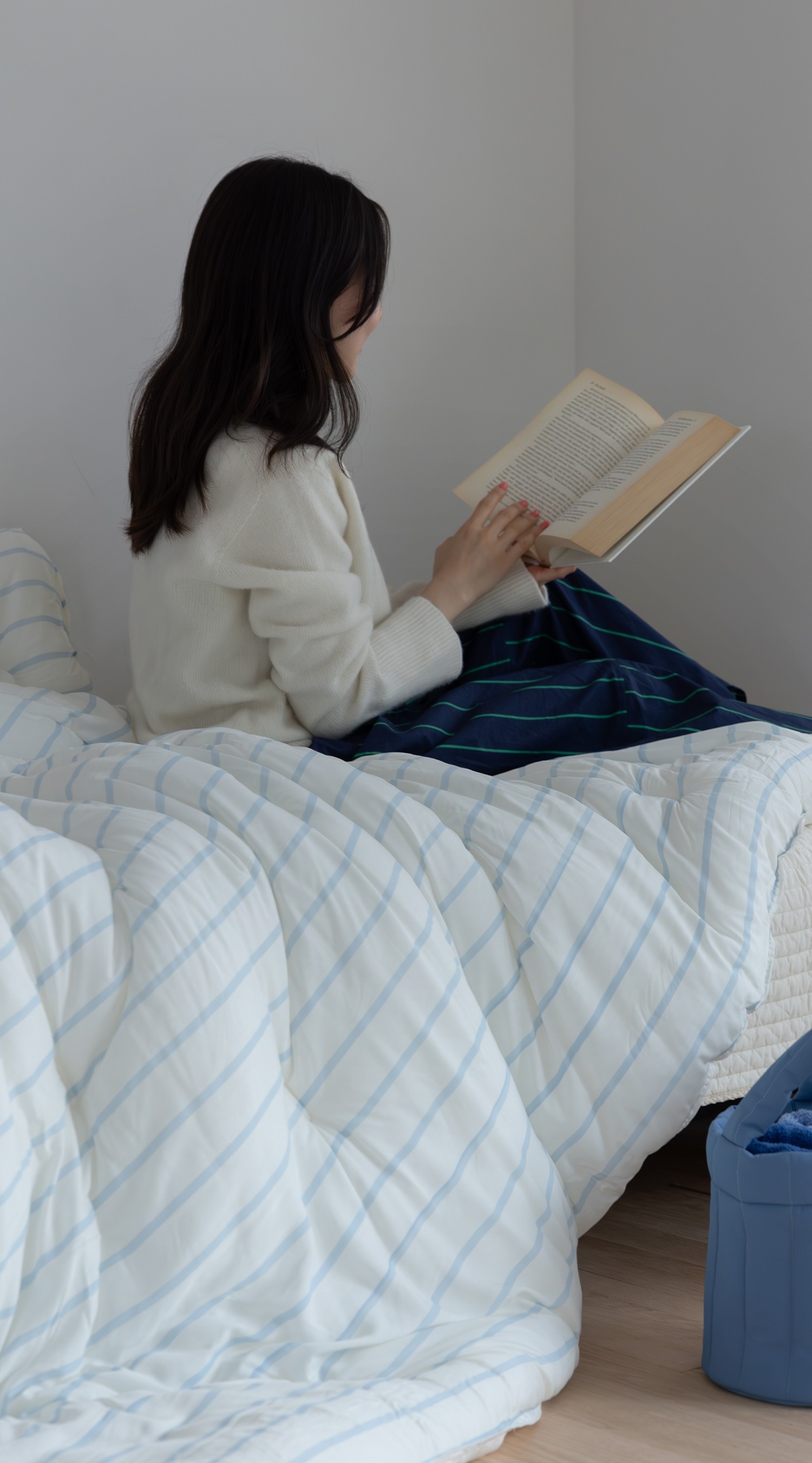 부드럽게 몸에 닿는 촉감이 특징인 멜로프 모달 반응성 양면 이불. 어릴 적 따스한 이불 속에서 느꼈던 포근함을 떠올리게 합니다.