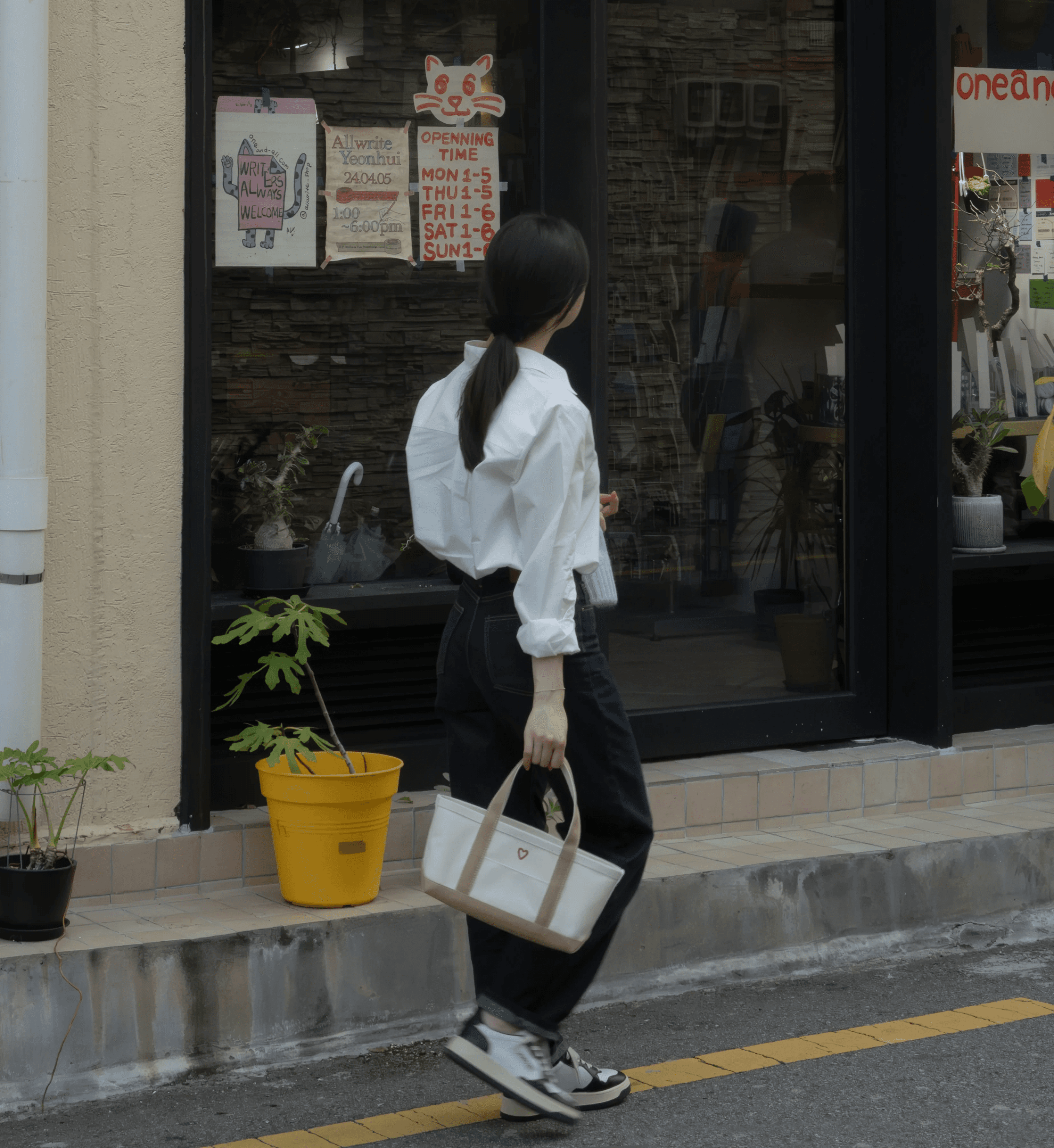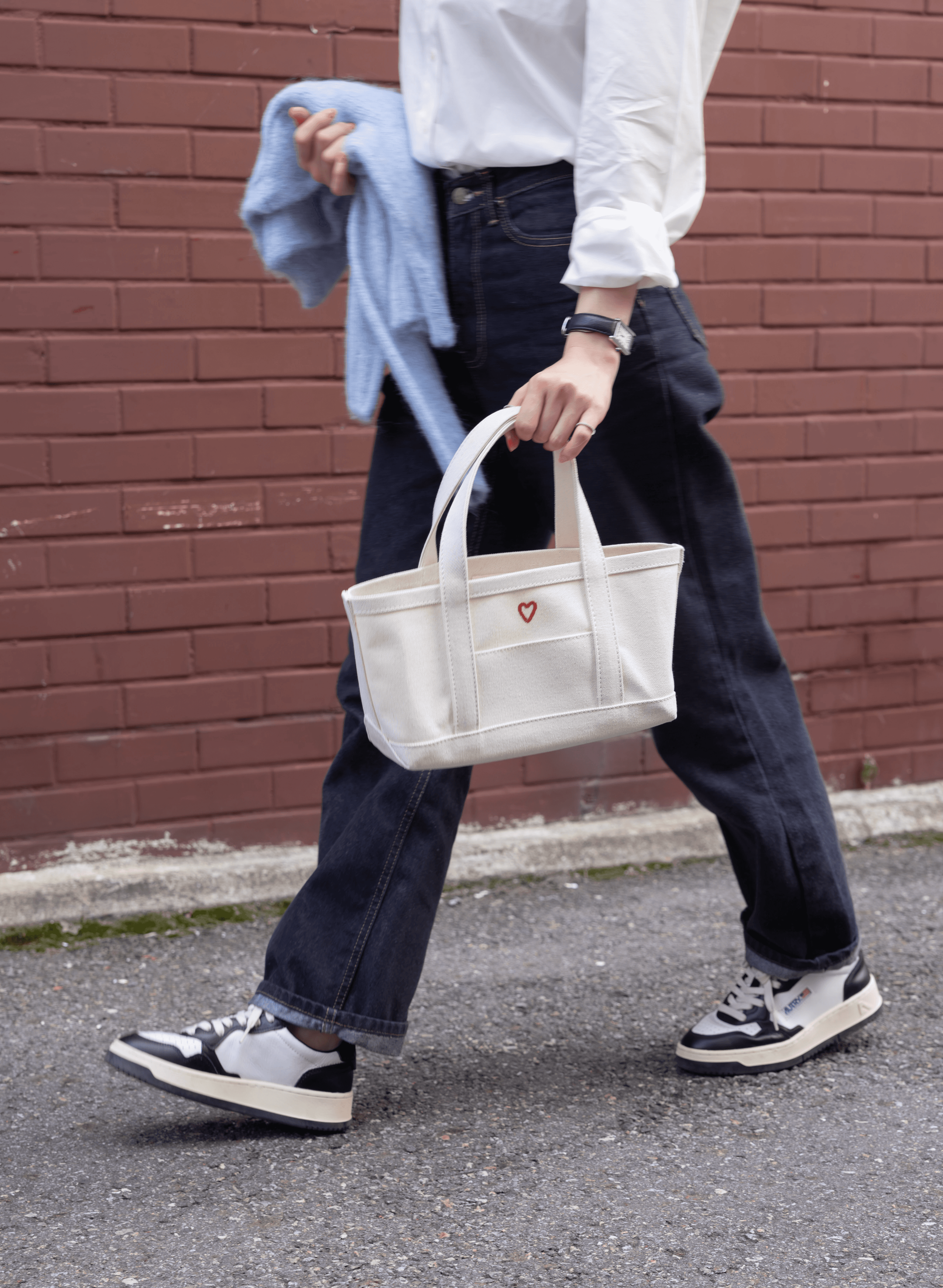 간결함과 모던함을 담은 코렛 하트 토트백. 각진 실루엣에 하트 자수로 포인트를 주었고, 불필요한 장식을 배제한 담백한 디자인으로 세련된 스타일을 연출할 수 있습니다.