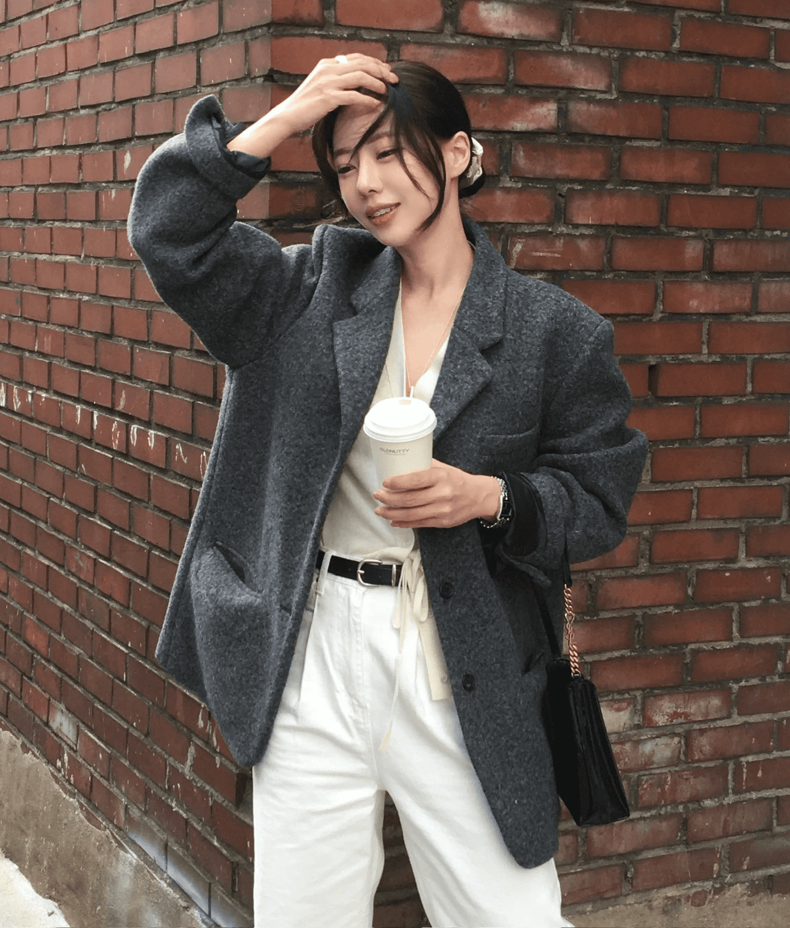 엉덩이를 덮는 길이와 여유로운 핏의 울 재킷. 한겨울까지 착용이 가능하며, 탄탄하고 힘 있는 원단으로 제작되어 더욱 멋스러운 착용이 가능합니다.