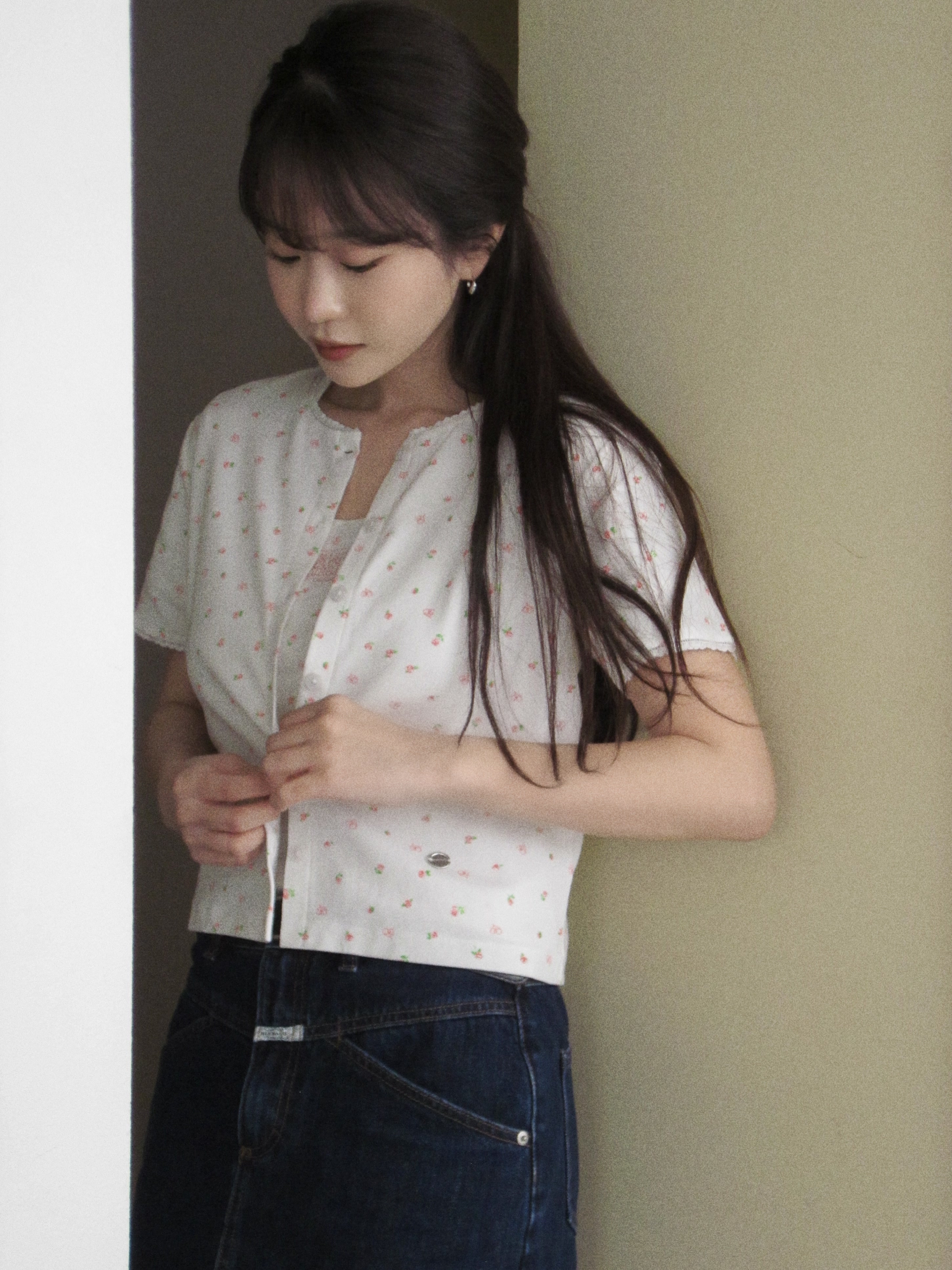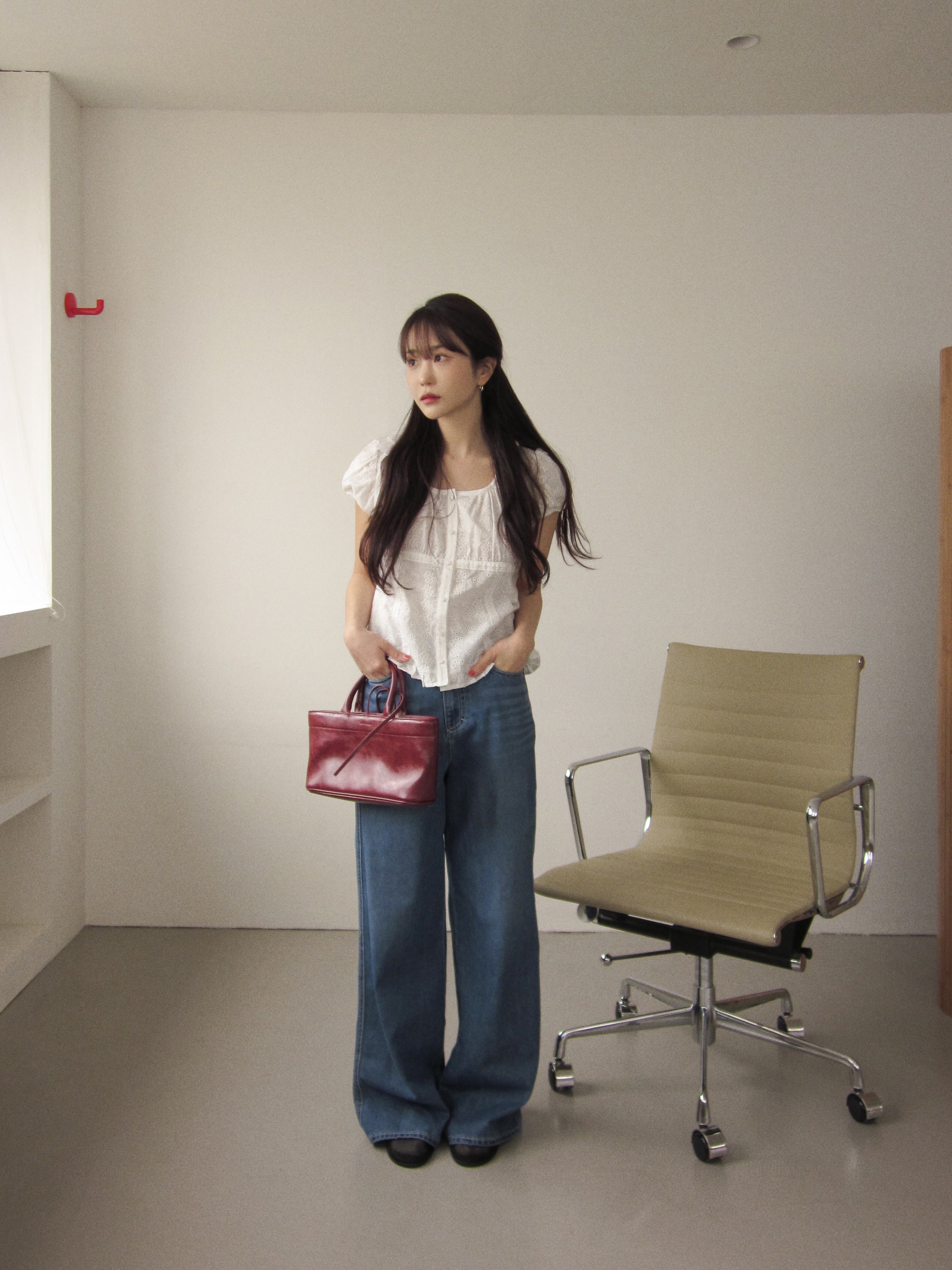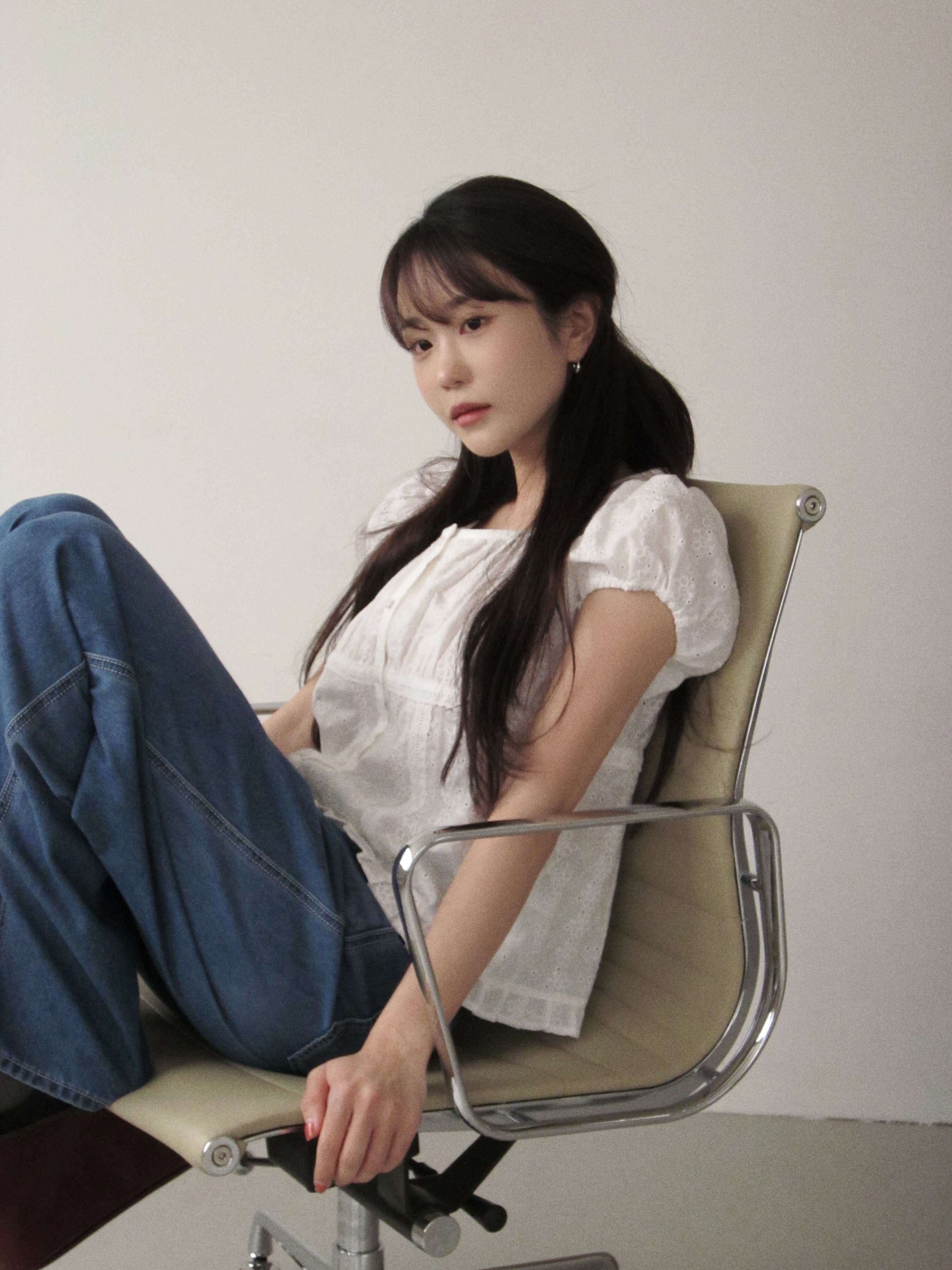 사랑스러운 레이스 블라우스와 서머 데님을 매치해 감각적인 여름 룩을 완성했어요.