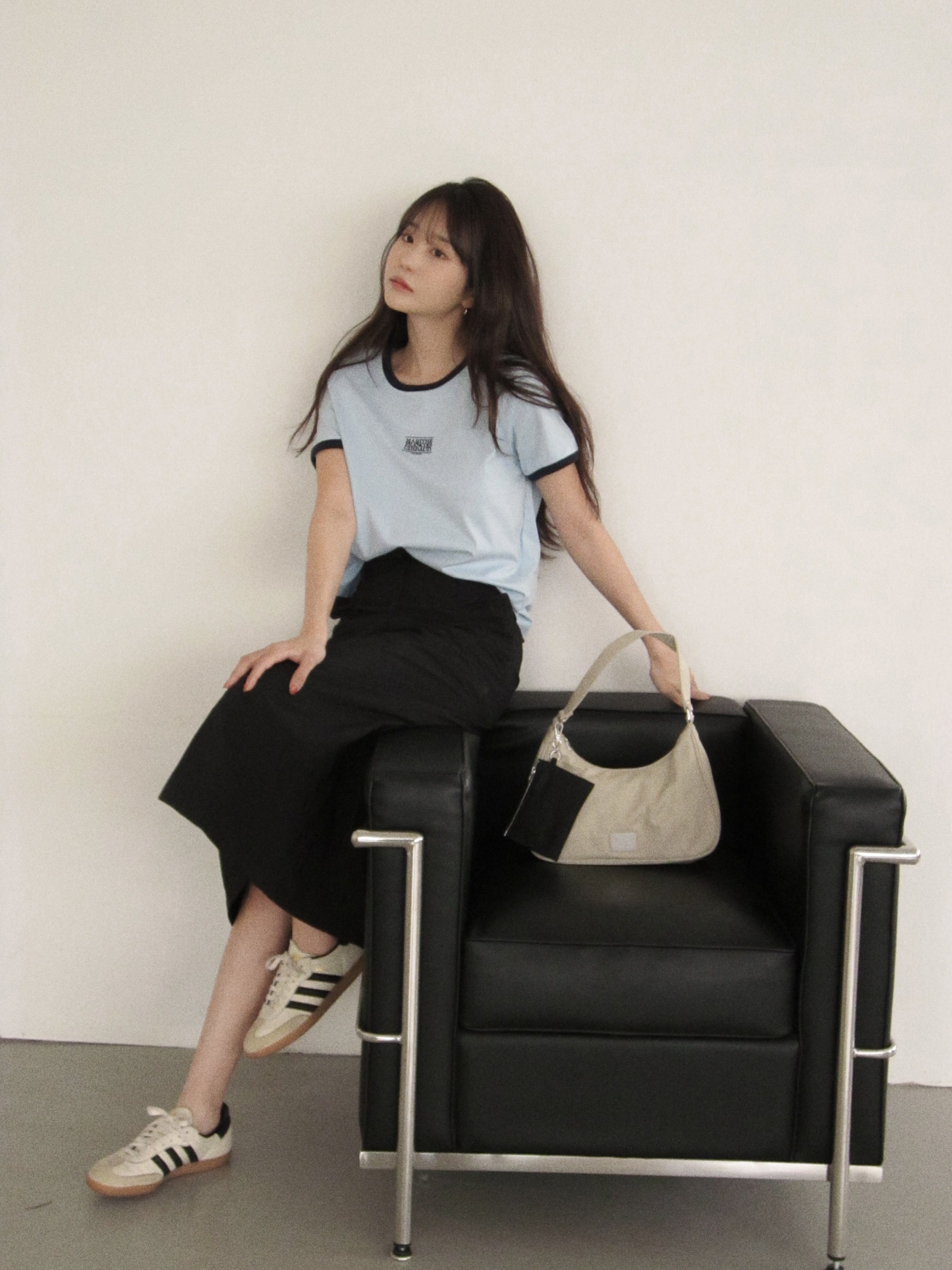 마리떼 프랑소와 저버의 시그니처 클래식 로고가 들어간 링거티와 미디 나일론 스커트로 활용도 높은 여름 데일리 룩을 연출해 보세요.