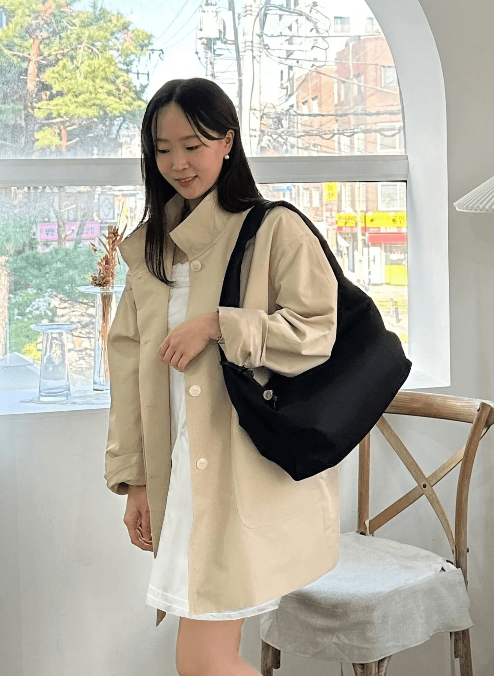 사랑스러운 레이스 포인트가 매력적인 미니 원피스와 클래식 무드의 트렌치코트를 매치했습니다. 조금 쌀쌀한 밤 날씨에는 가볍게 아우터와 함께, 뜨거운 햇빛으로 무더운 낮에는 원피스만 단품으로 입어보세요.