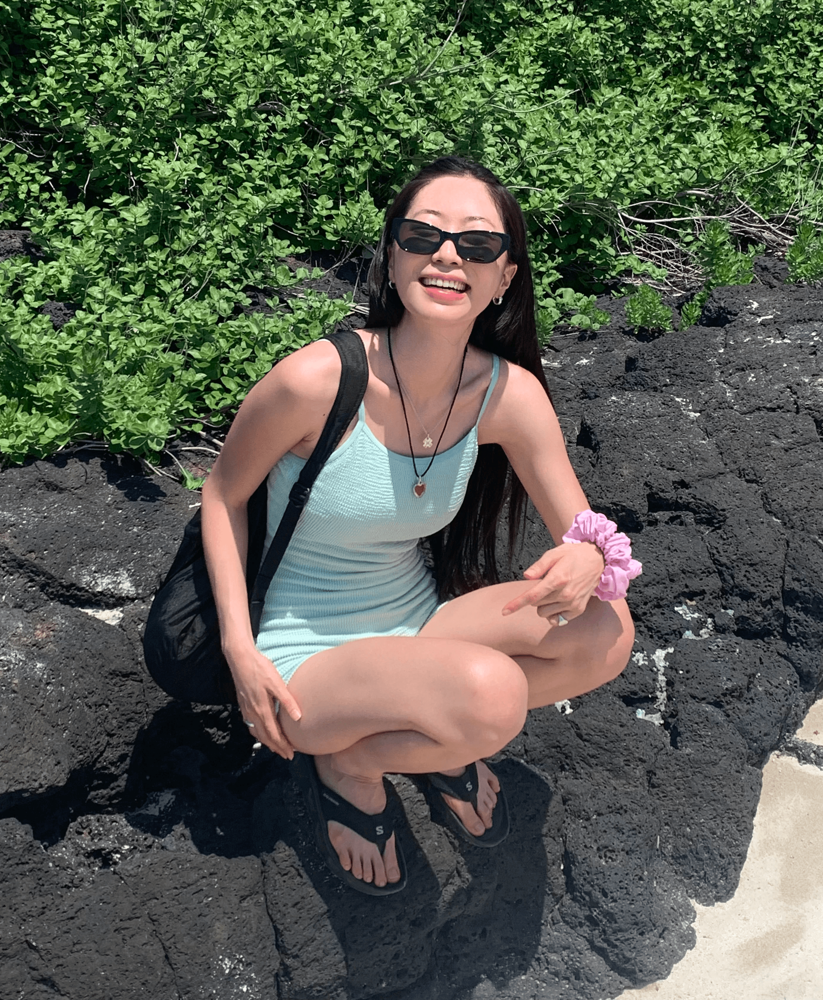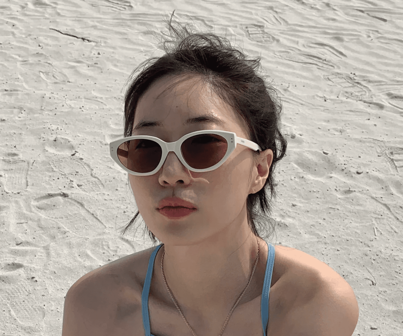 미니멀 룩을 즐긴다면, 써피의 민트 컬러 수영복이 제격이에요. 심심할 수 있는 룩에 독특한 포인트가 될 에스실 팬던트 목걸이를 착용하고, 아르마일의 캣아이 스타일 선글라스로 쿨한 룩을 완성하세요. 카인더베이비의 스크런치는 귀여운 포인트 업이 됩니다.