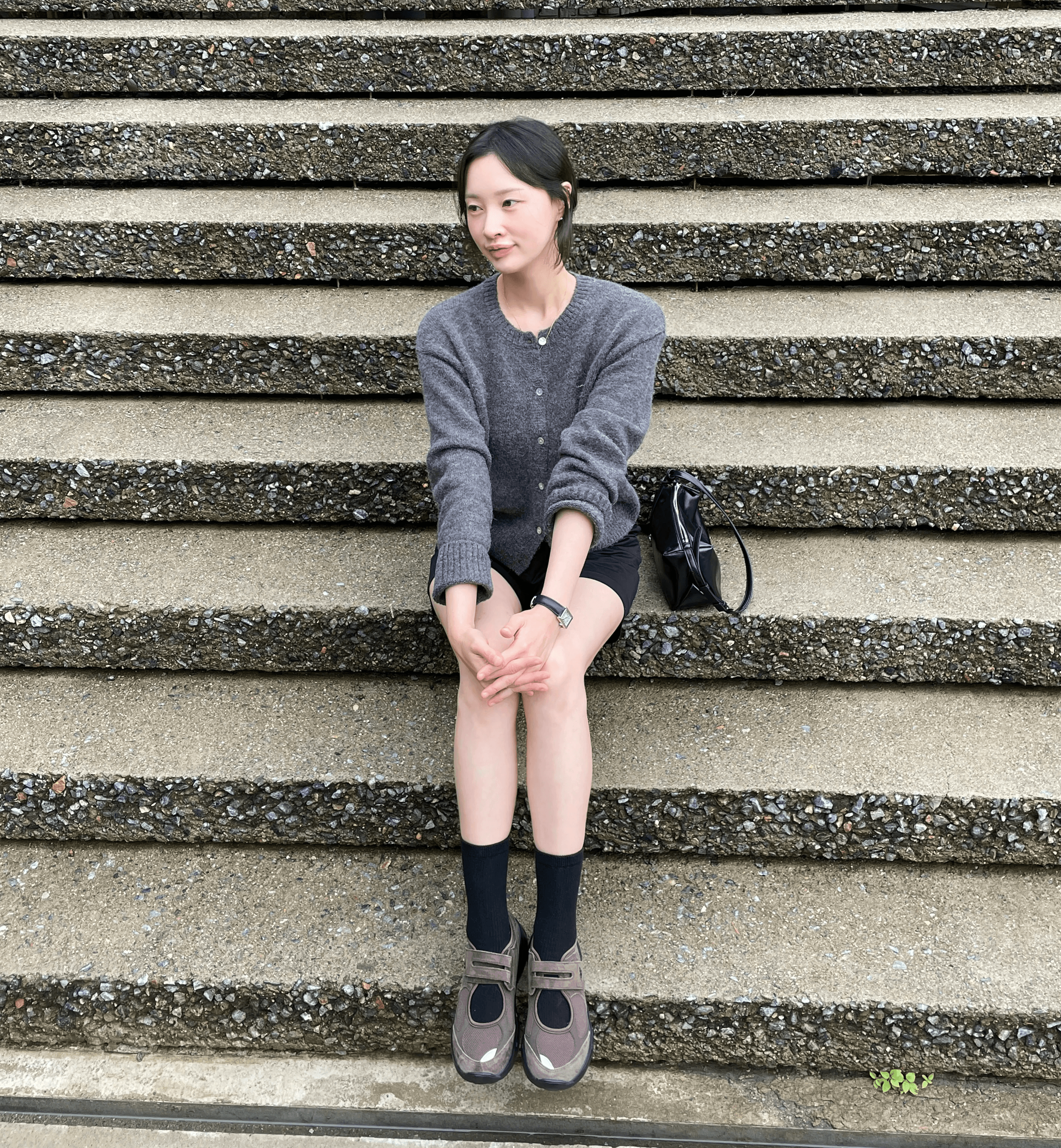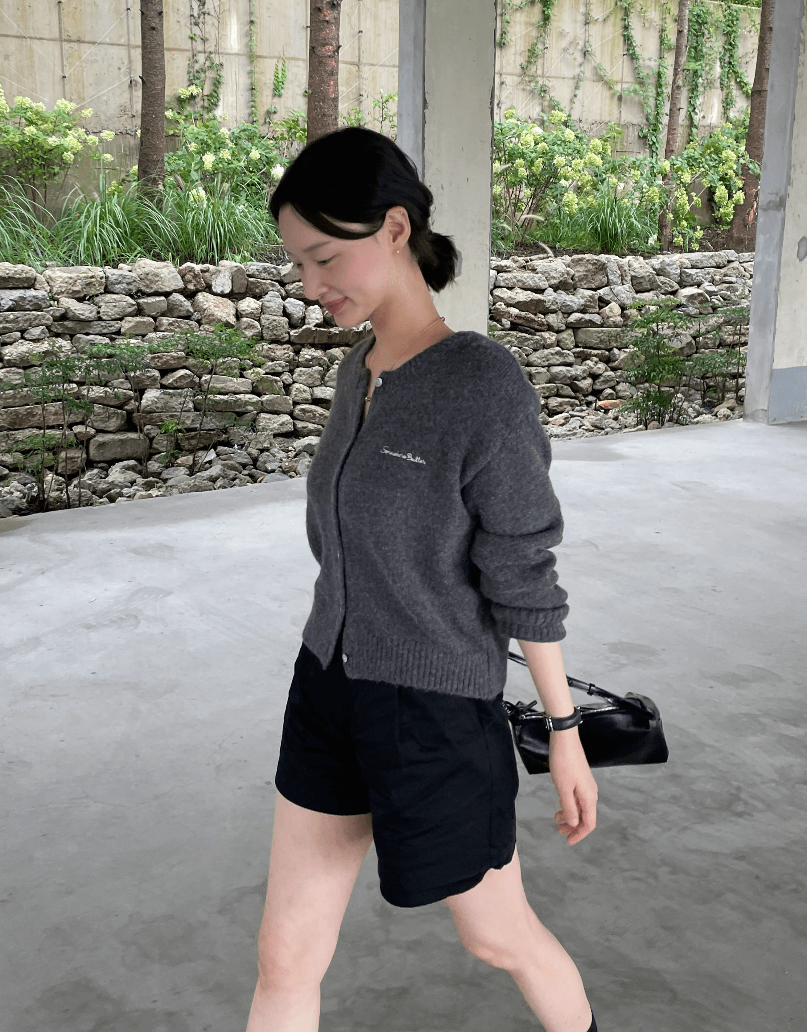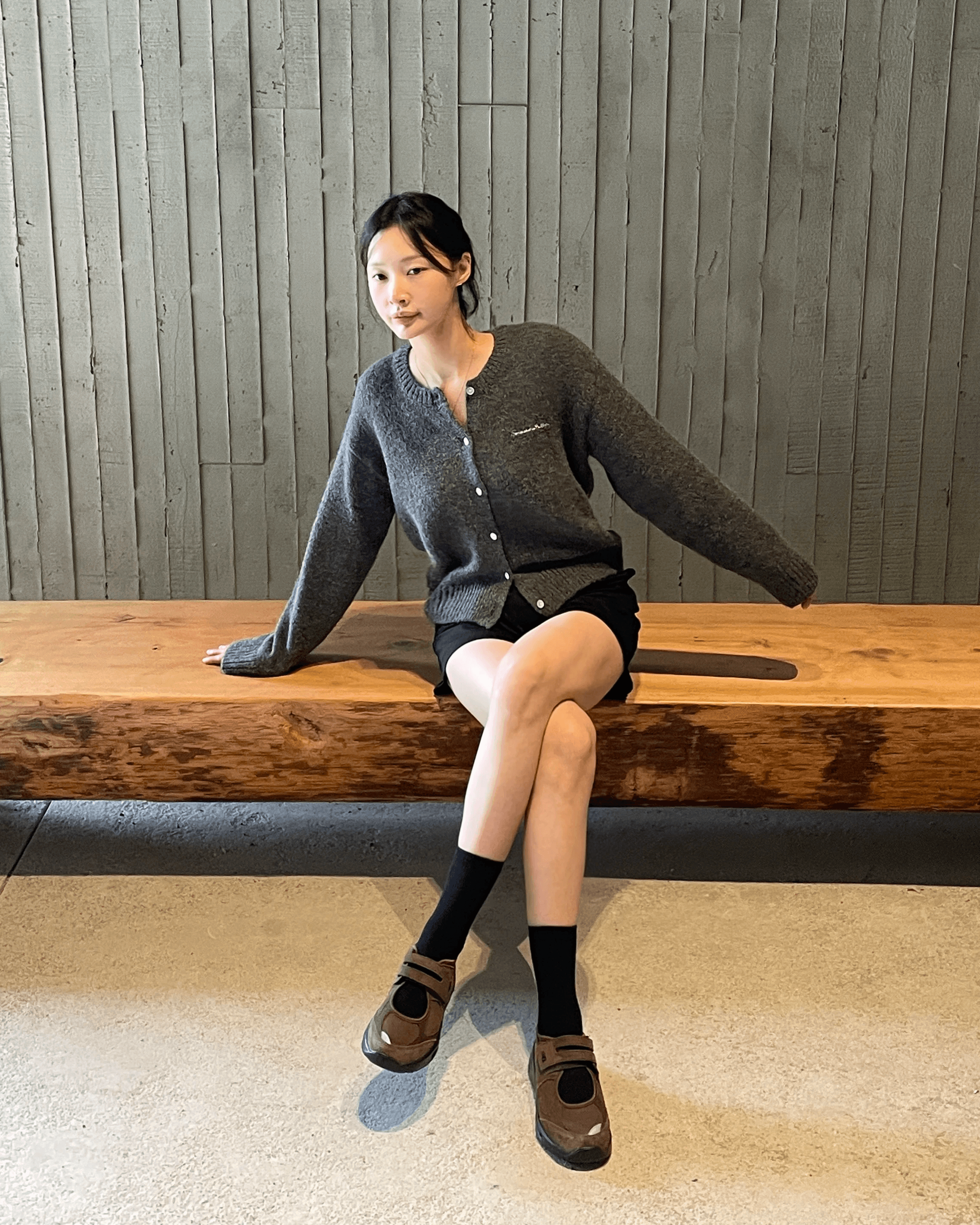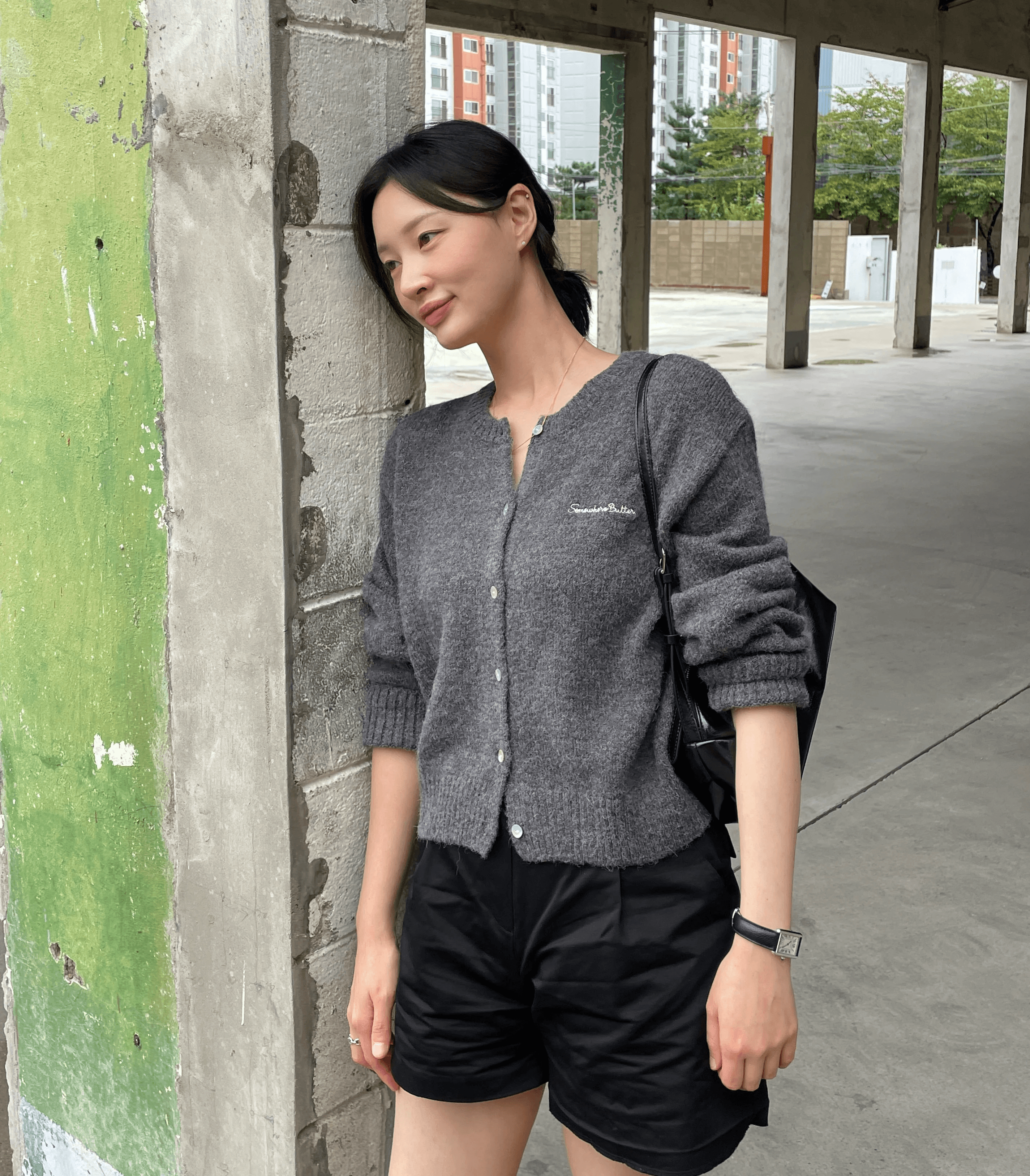 썸웨어버터의 스몰 자수 로고가 포인트인 알파카 가디건 스타일링입니다. 알파카 블렌디드 소재로, 단품만으로도 클래식하고 고급스러운 무드를 연출해 데일리 아이템으로 활용하기 좋아요.