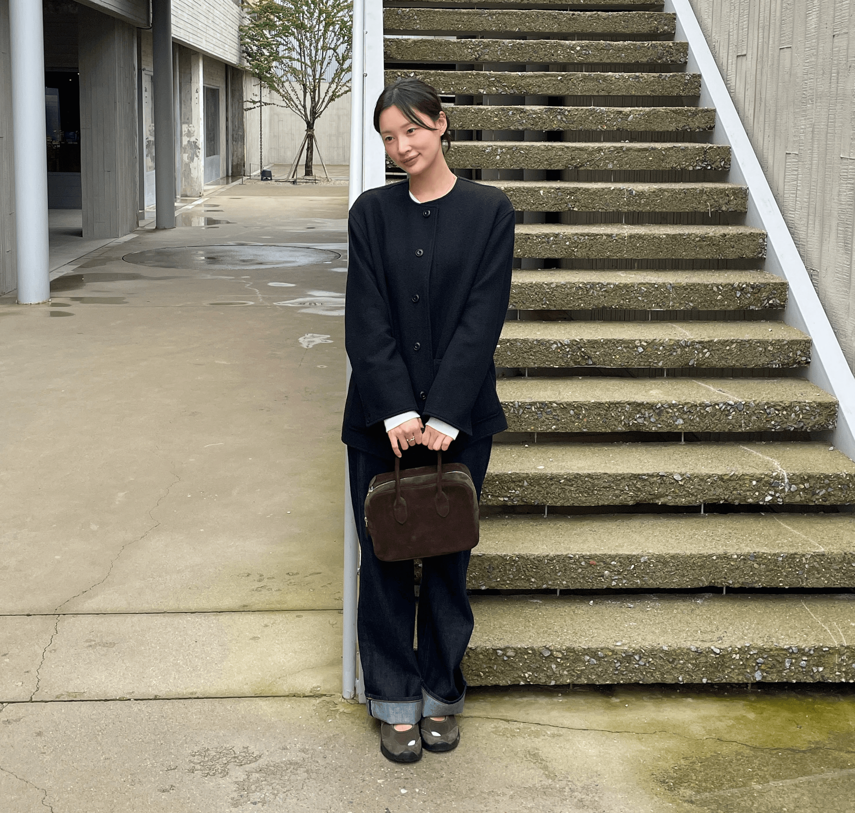 기본에 충실한 오래오래 입을 수 있는 마조네의 베스트 재킷 스타일링입니다. 미니멀하고도 모던한 디테일을 포함하고 있으며, 하의에 따라 다양한 무드를 연출할 수 있어요.