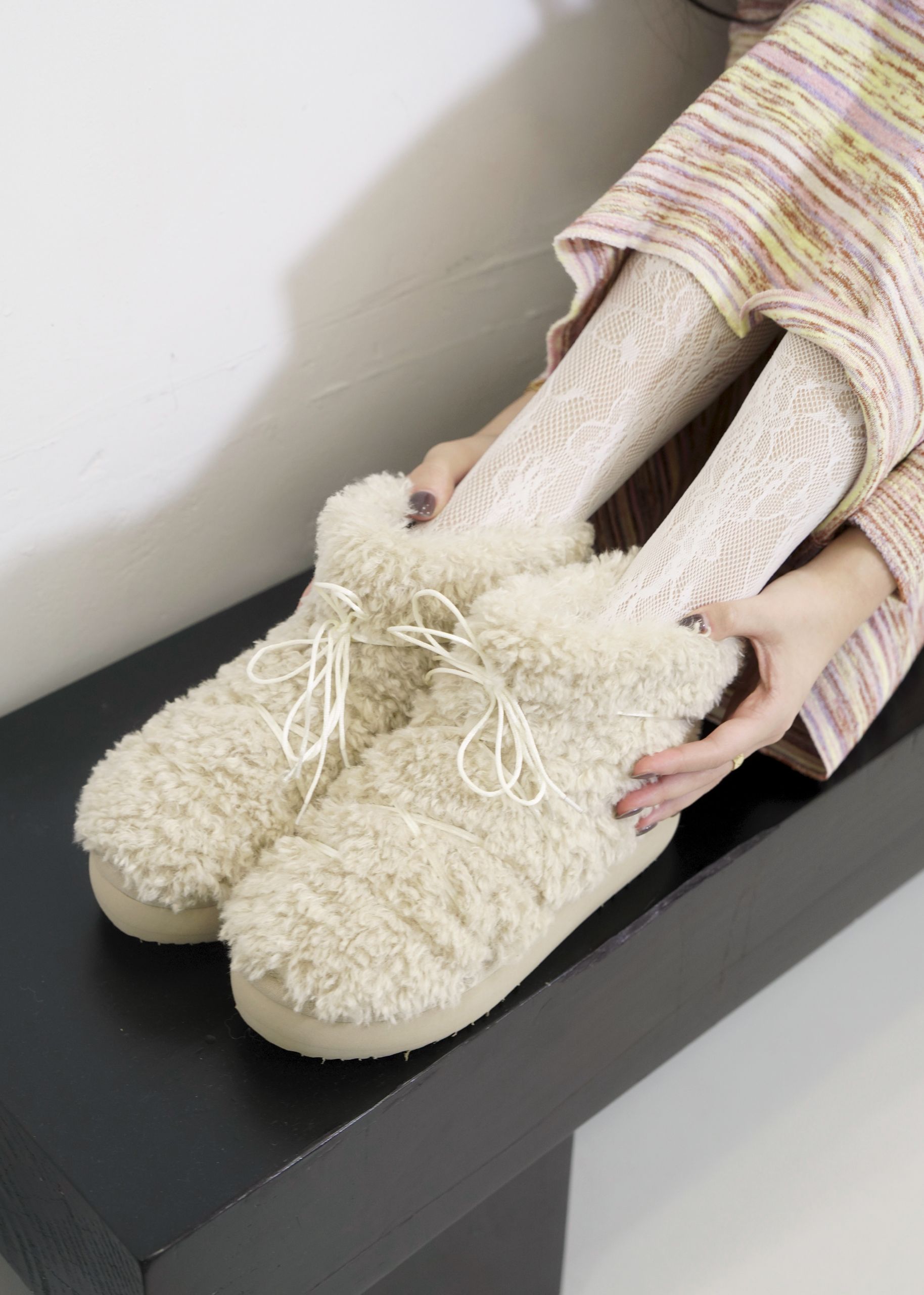 부드러운 퍼 텍스처로 따뜻하고 감각적인 윈터 무드를 담은 숏 부츠입니다. 가벼운 플랫폼 아웃솔과 발목을 덮는 기장으로 편안함과 스타일을 모두 갖추었습니다.