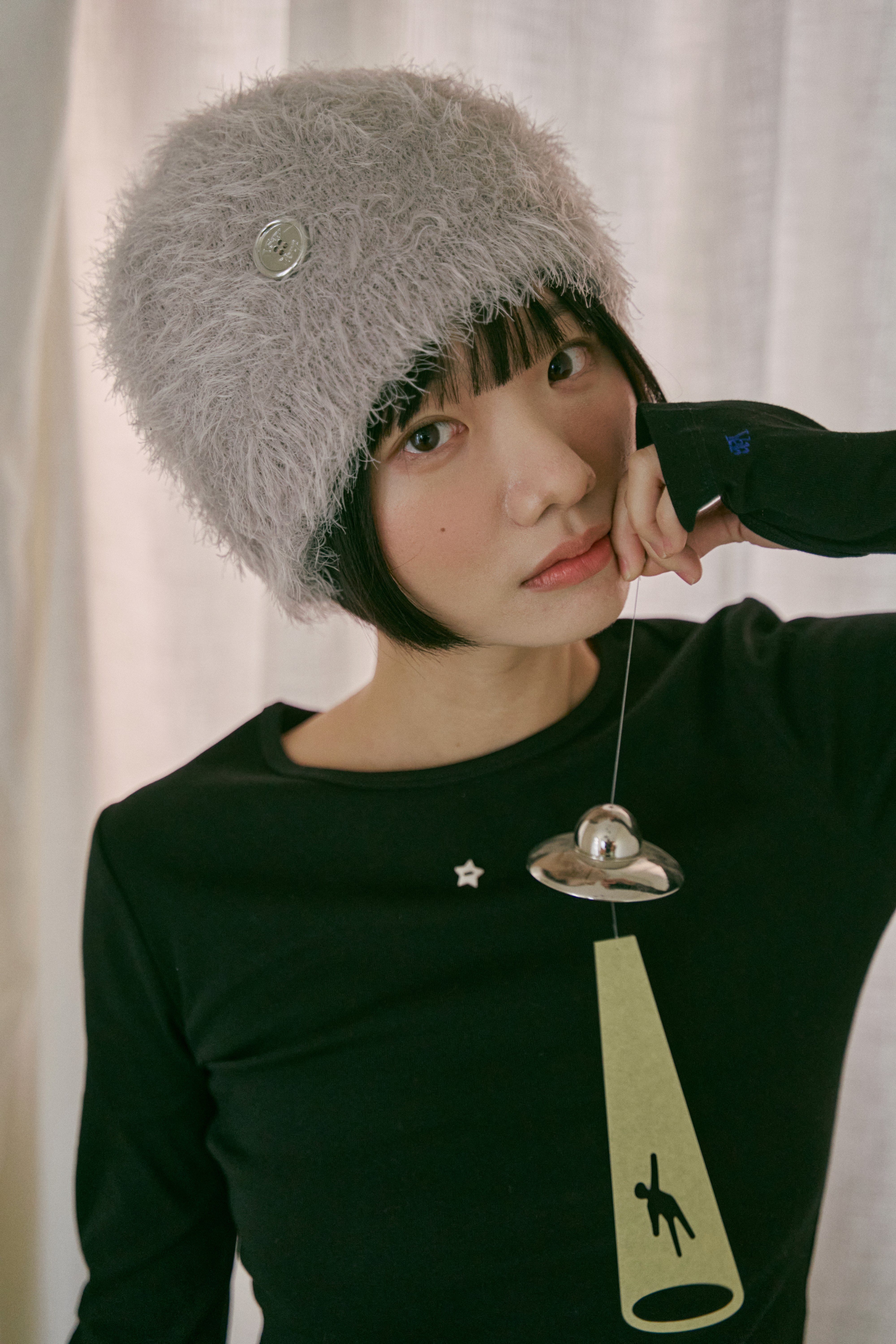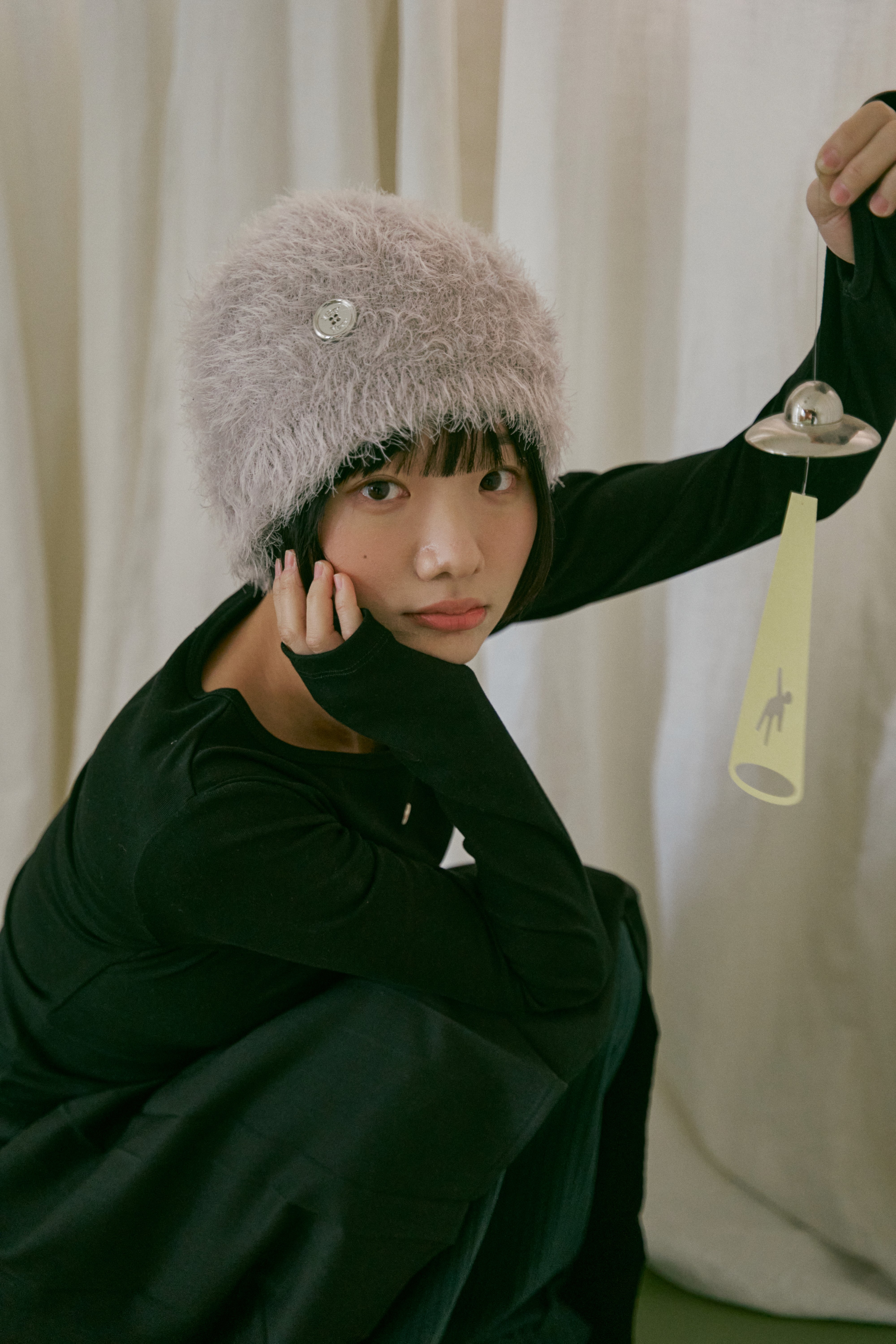 키치한 무드가 돋보이는 YERR만의 버튼 모양 심볼이 포인트인 비니입니다. 겨울에 따뜻하면서 포인트 스타일링 아이템으로 활용할 수있습니다.
