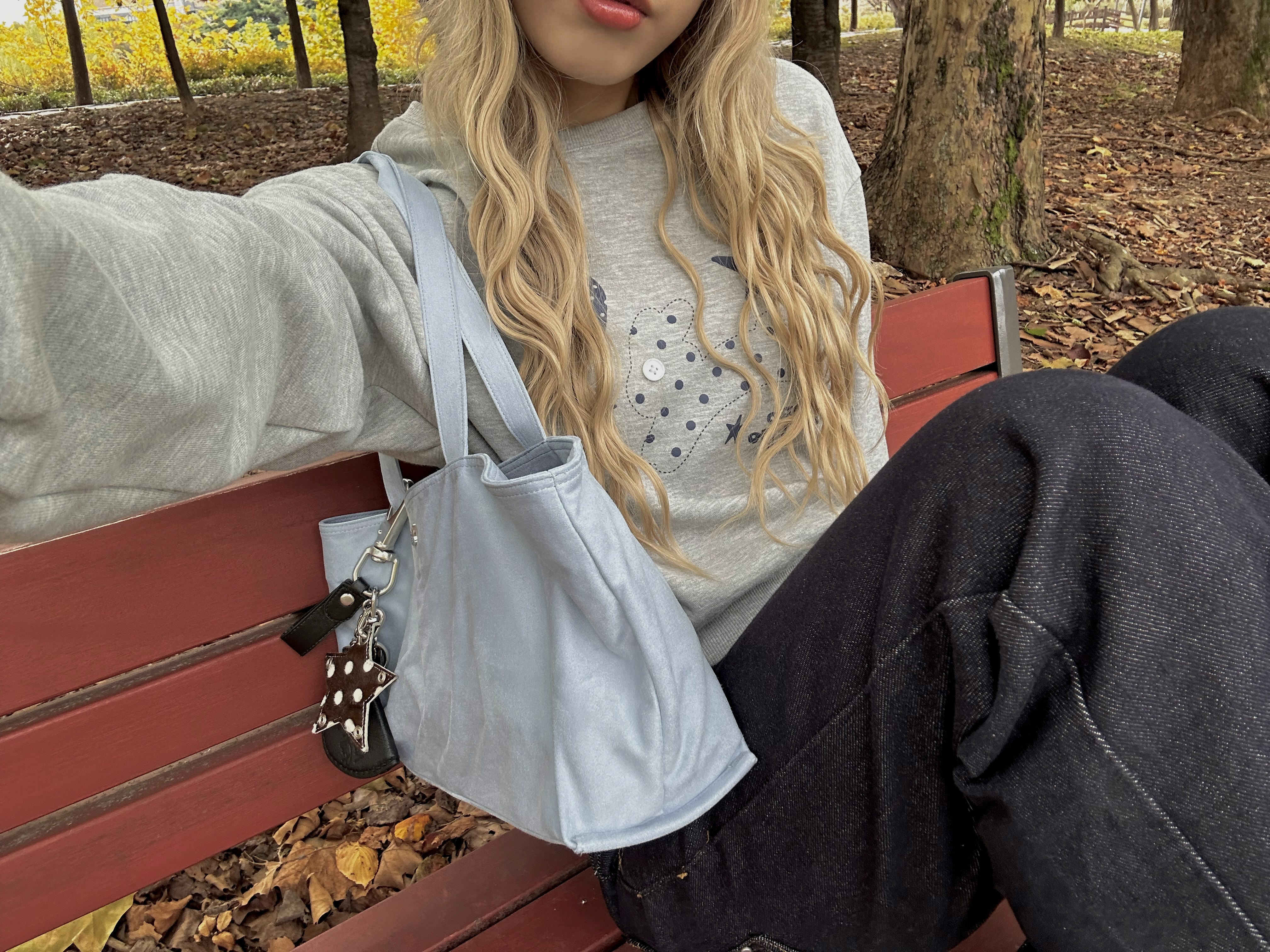 사계절 활용이 가능한 와이드백과 도트 패턴이 포인트인 파우치를 함께 매치해 사랑스러운 디테일이 돋보이는 스타일링 연출이 가능합니다.
