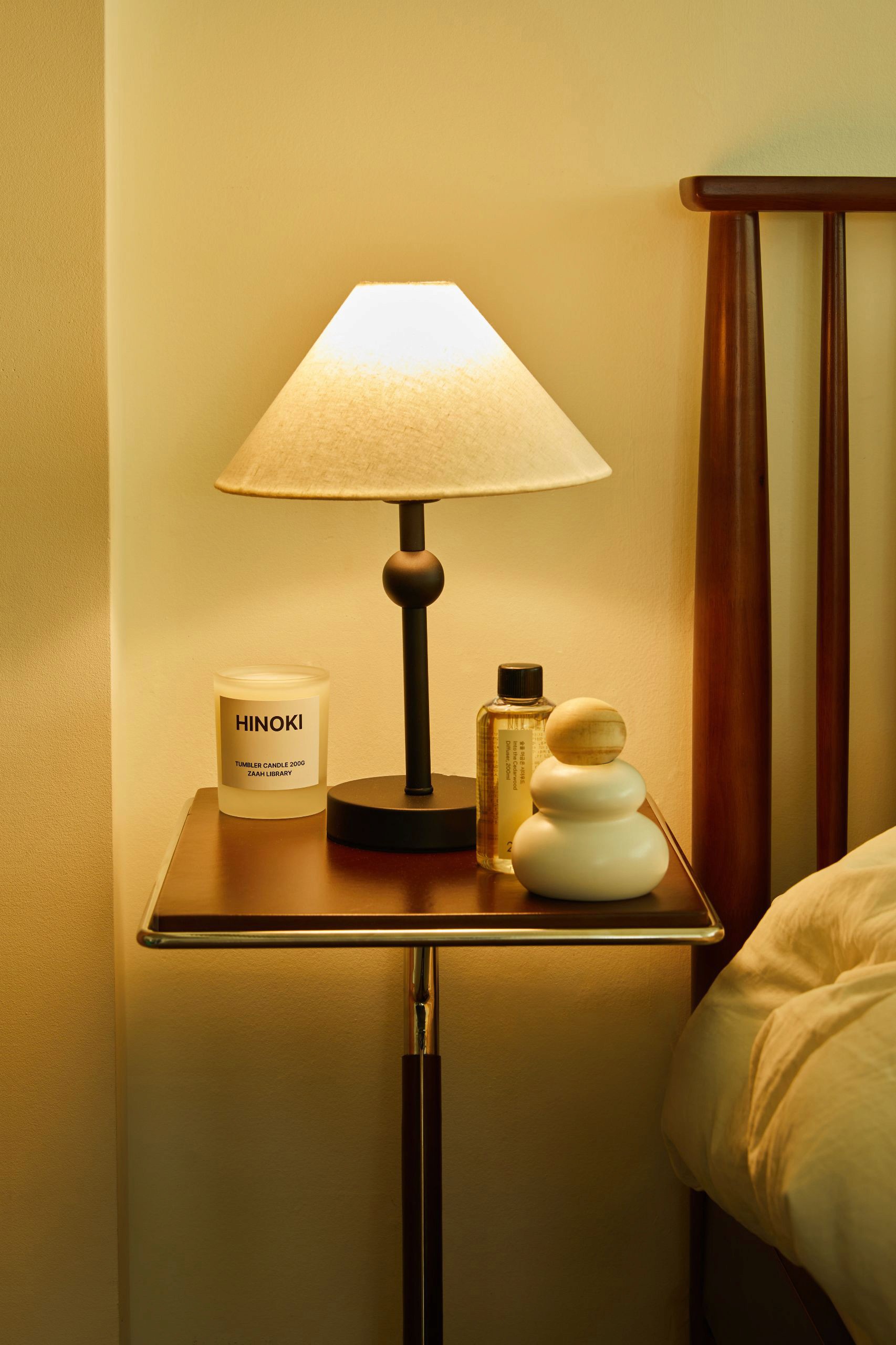 아늑한 빛, 감미로운 향, 그리고 그를 한자리에 모아 줄 테이블까지. 눈 감기 전 완전한 릴랙스를 만들어 줄 램프와 인센스, 디퓨저와 캔들을 사이드 테이블과 매치하세요.