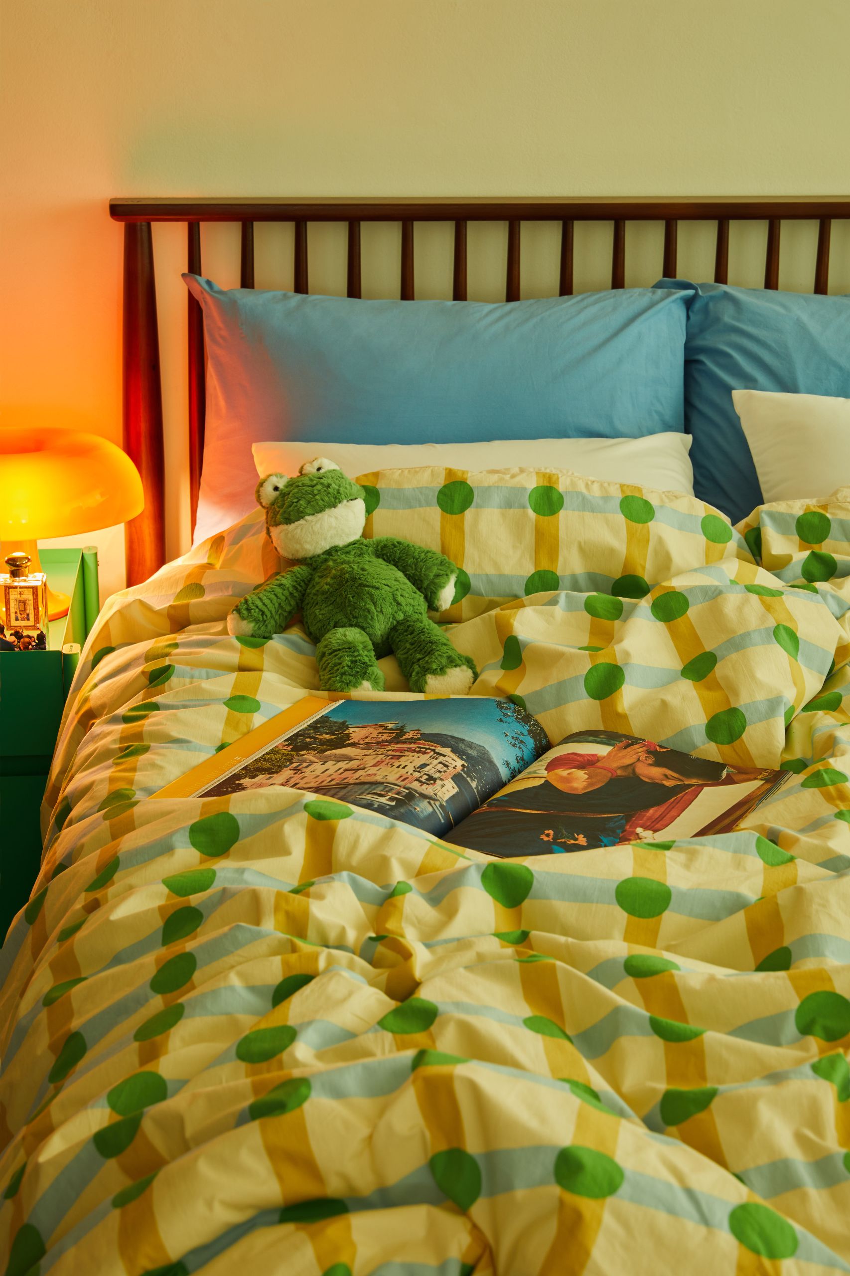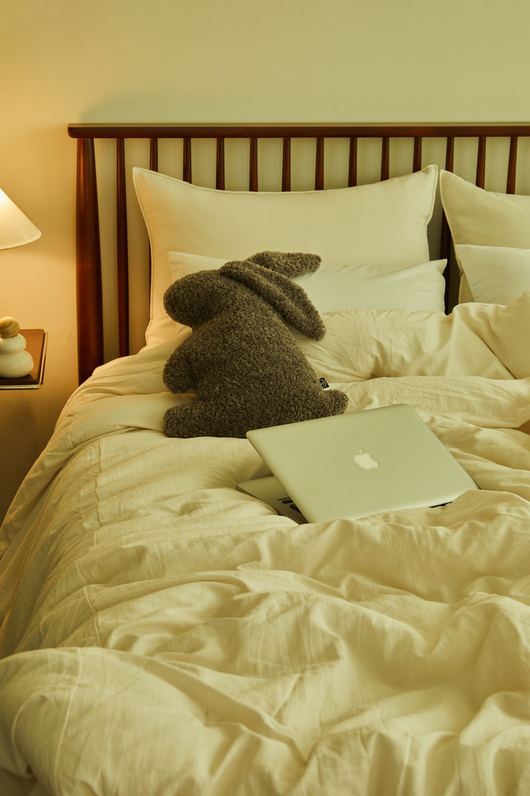 어떤 매트리스와 베개를 고르는가도 중요하지만 그만큼 어떤 이불 커버, 베개 커버를 고르는지도 중요해요. 포인트가 되어 줄 작은 플러쉬 인형을 더하는 재미도 놓치지 말고요.
