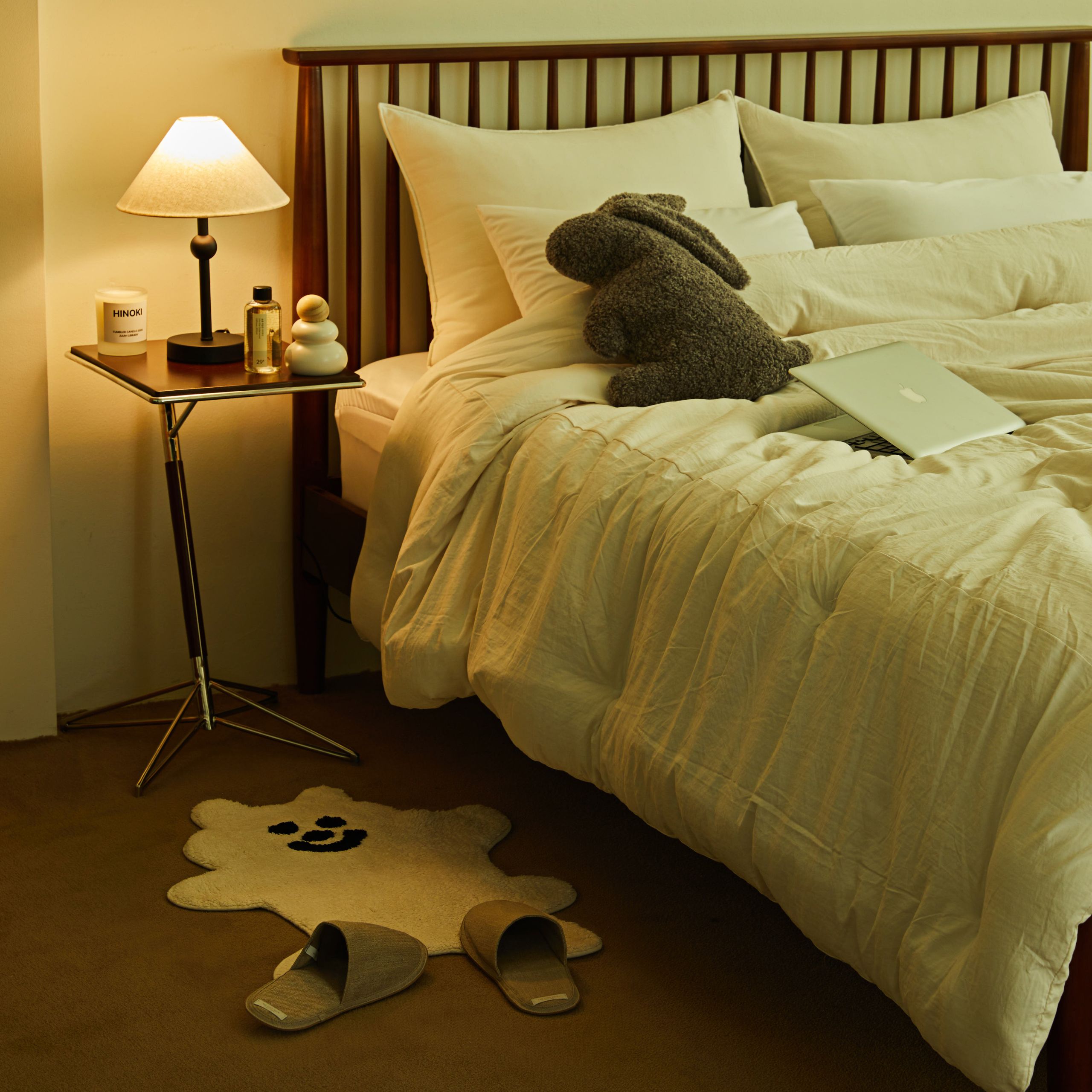 안락함이 필요한 시간. 침대에 오르고 내리는 찰나도 남다르게 만들 수 있어요. 무드에 맞춰 룸슈즈를 신고 도어 매트를 침대 옆에 배치해 보세요. 마음가짐이 새로워질 거예요.